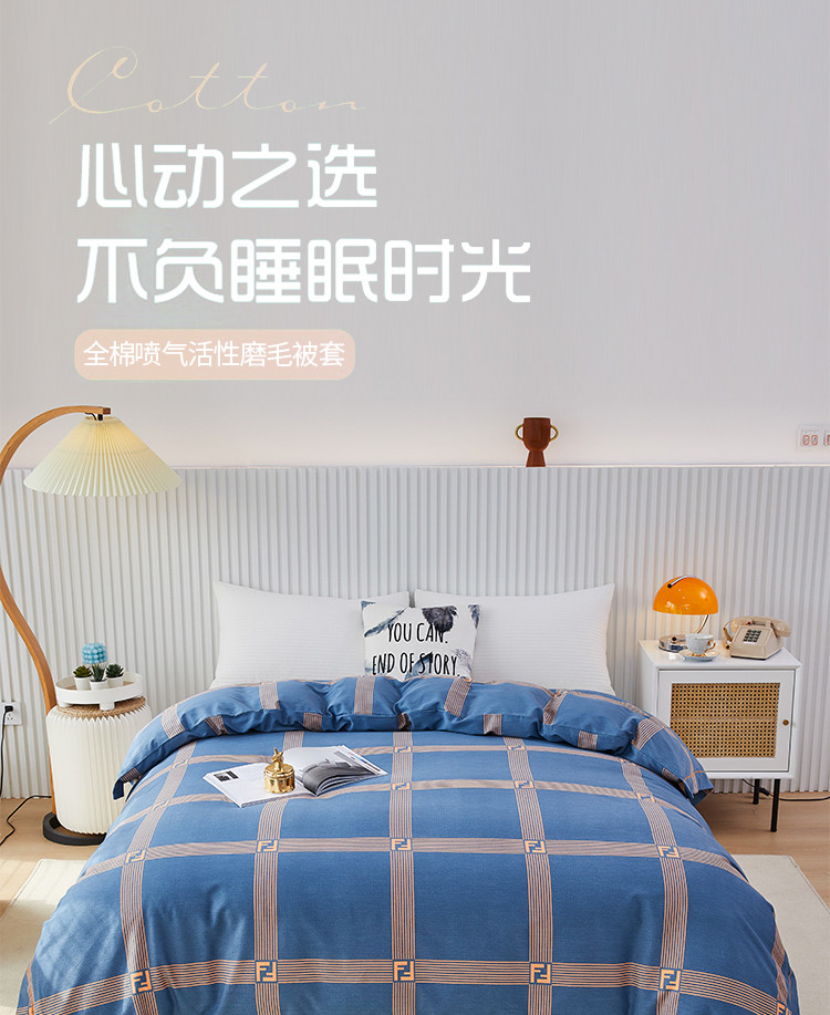 商品名称:杜先生 2023新款全棉加厚喷气活性磨毛单被套 艺术构想-灰