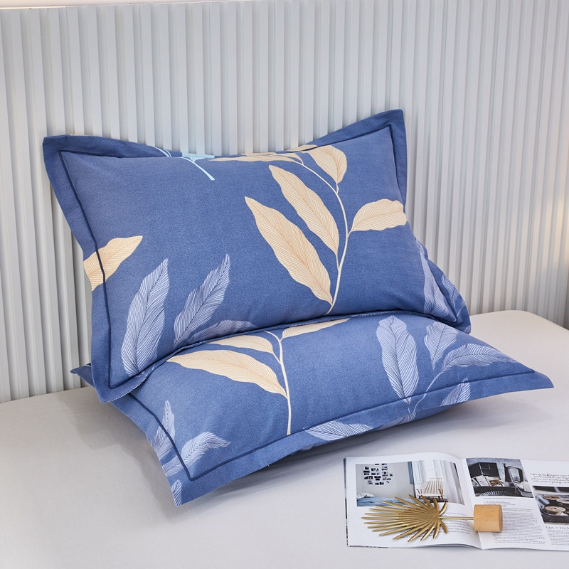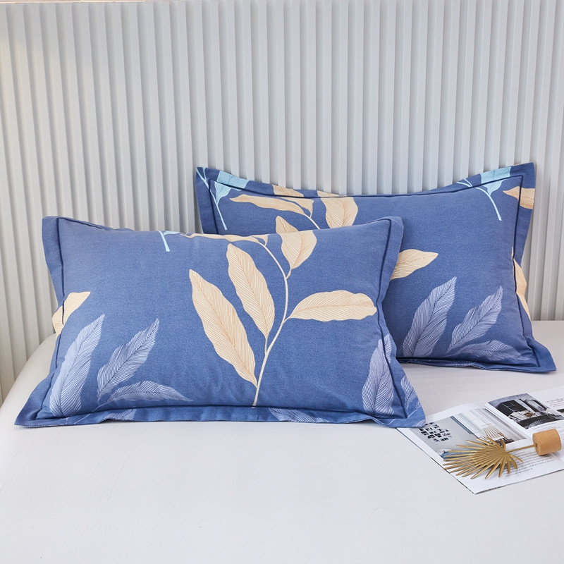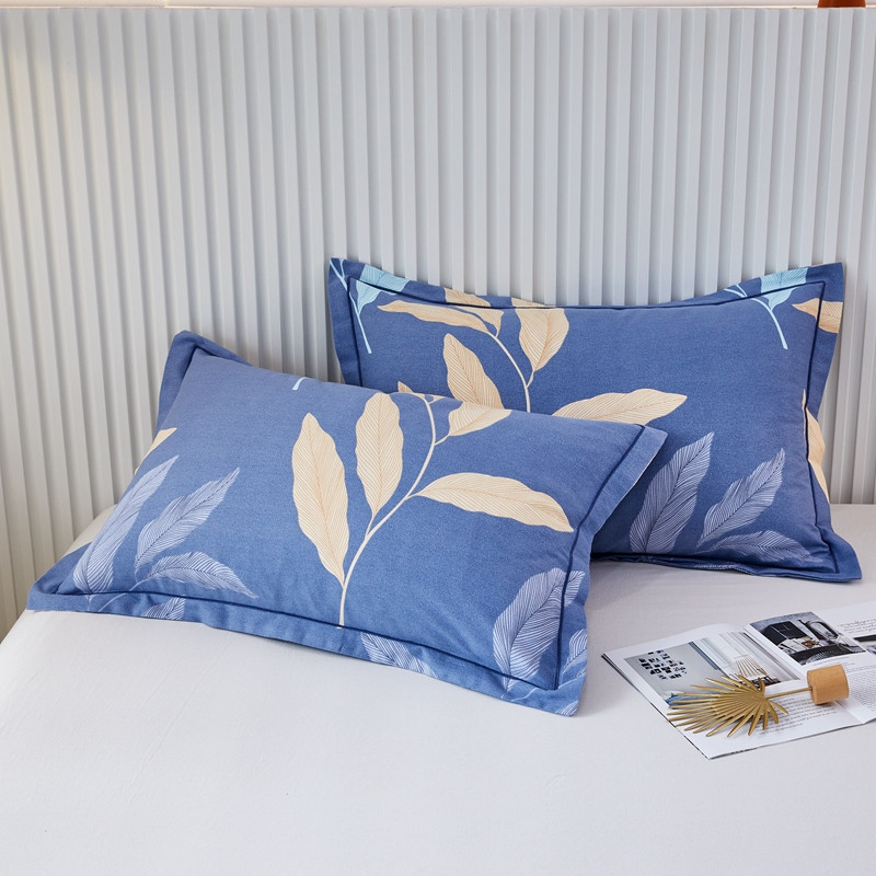 杜先生新款全棉加厚喷气活性磨毛枕套48*74/对叶叶相随-蓝