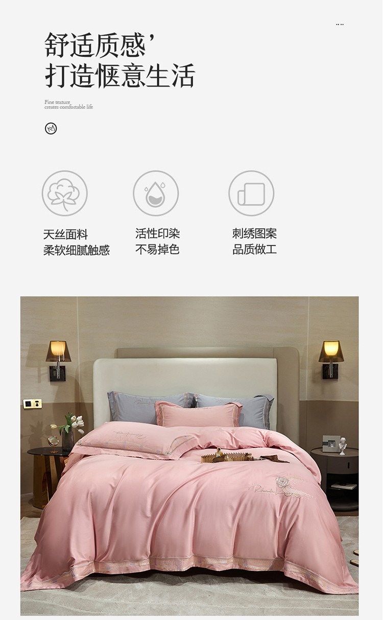 商品名称:2023名品优仓春夏直播爆款天丝棉四件套 慕尚-粉豆沙
