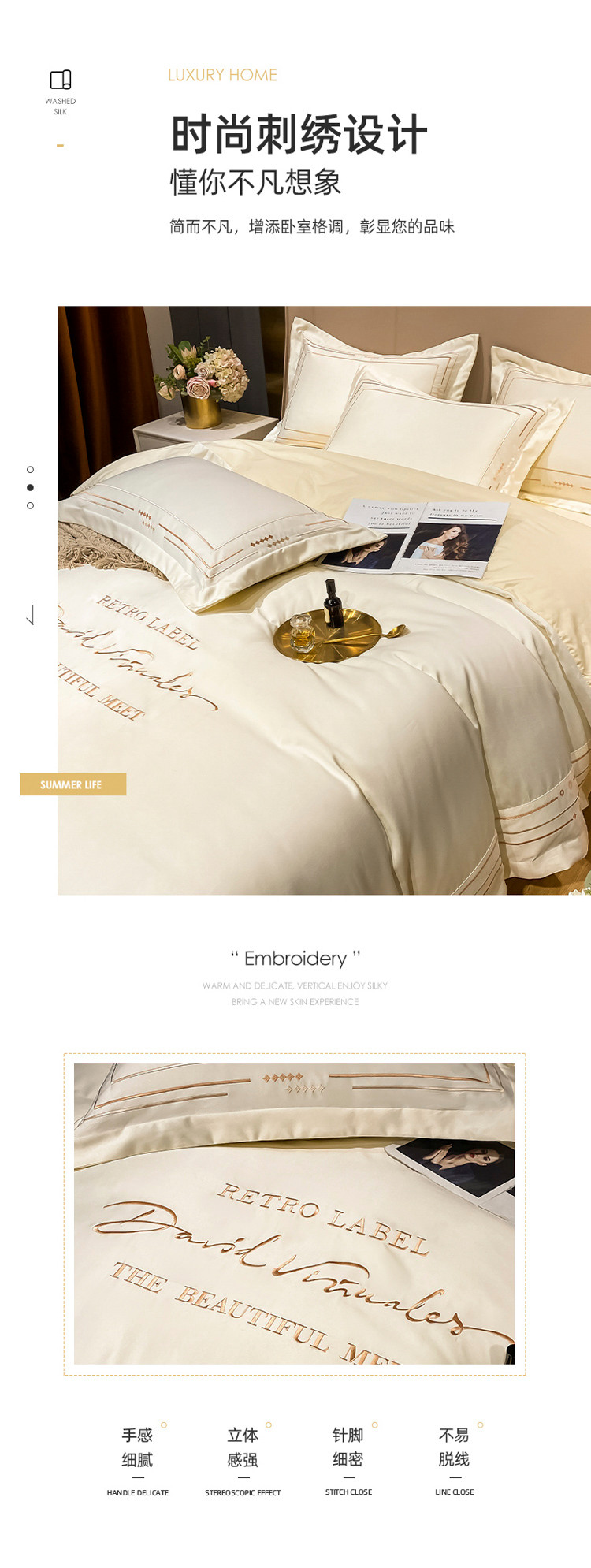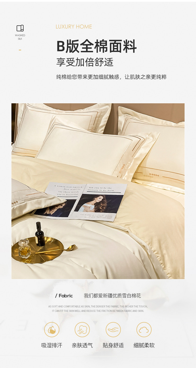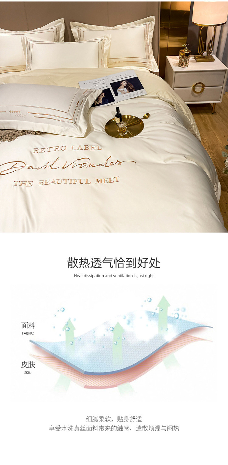 欧乐蒂 新A版60亲肤水洗真丝B版纯棉四件套 奢雅-米白