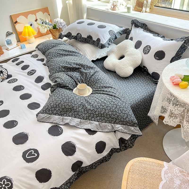 花漾2023爆款网红韩版花边13372全棉四件套 波点