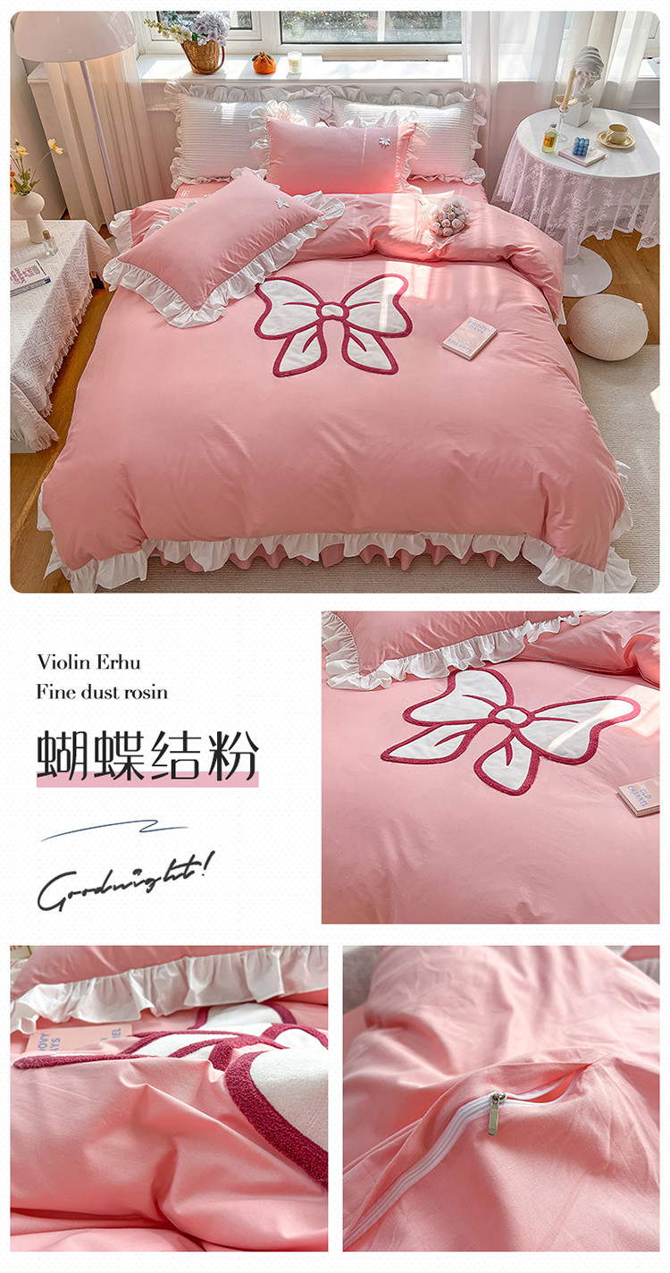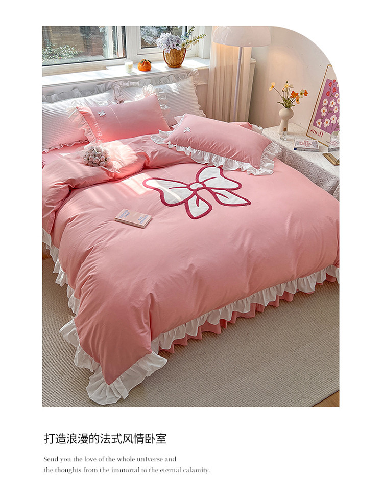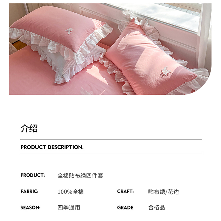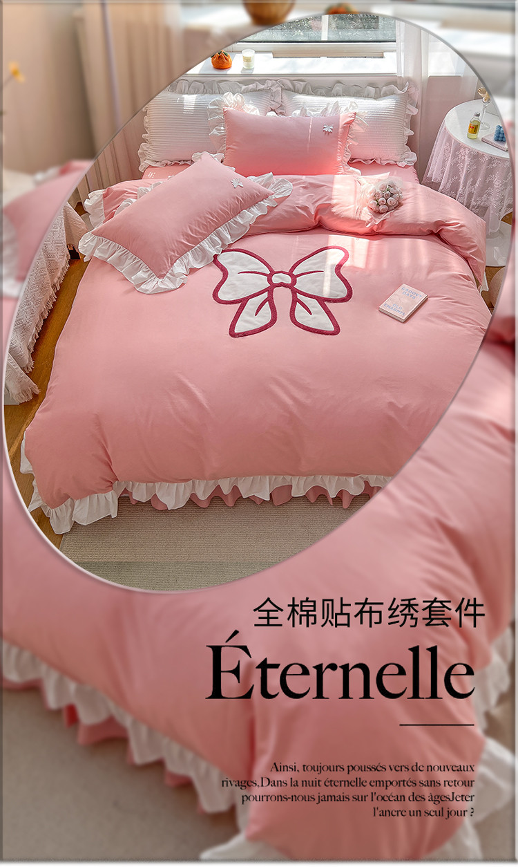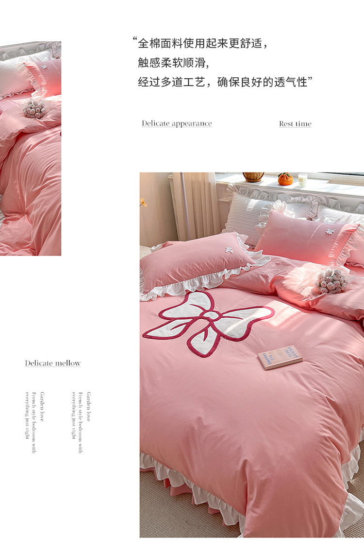 商品名称:婳庭家居 2023新款全棉13376贴布绣蝴蝶结四件套 蝴蝶结粉