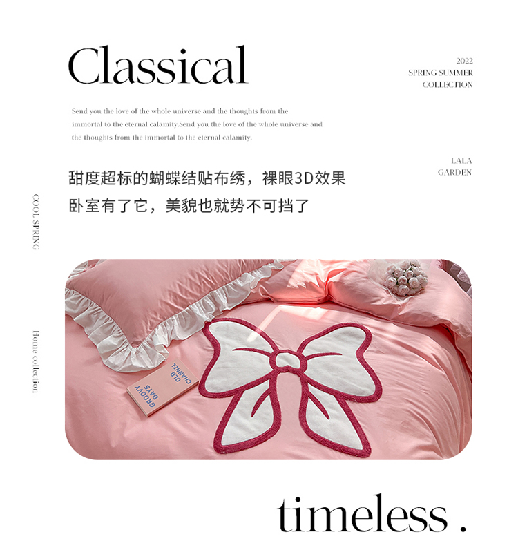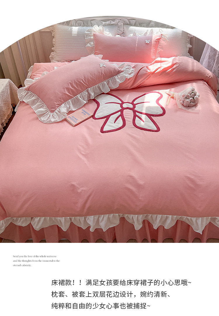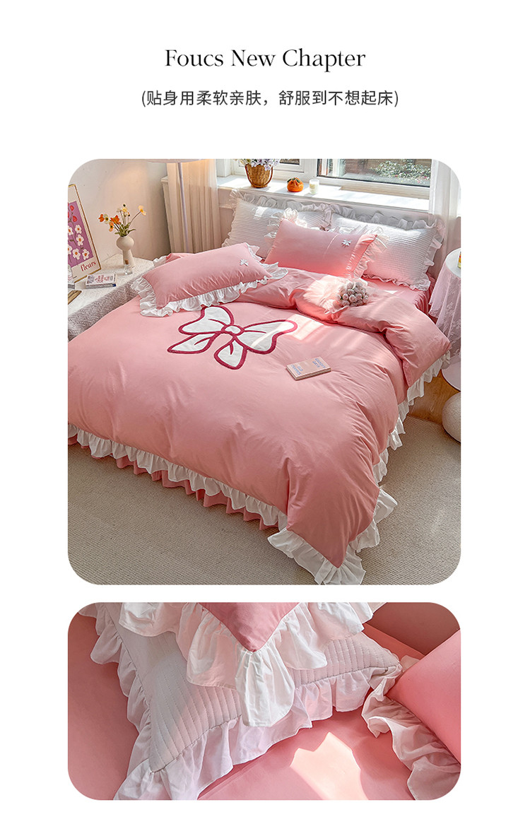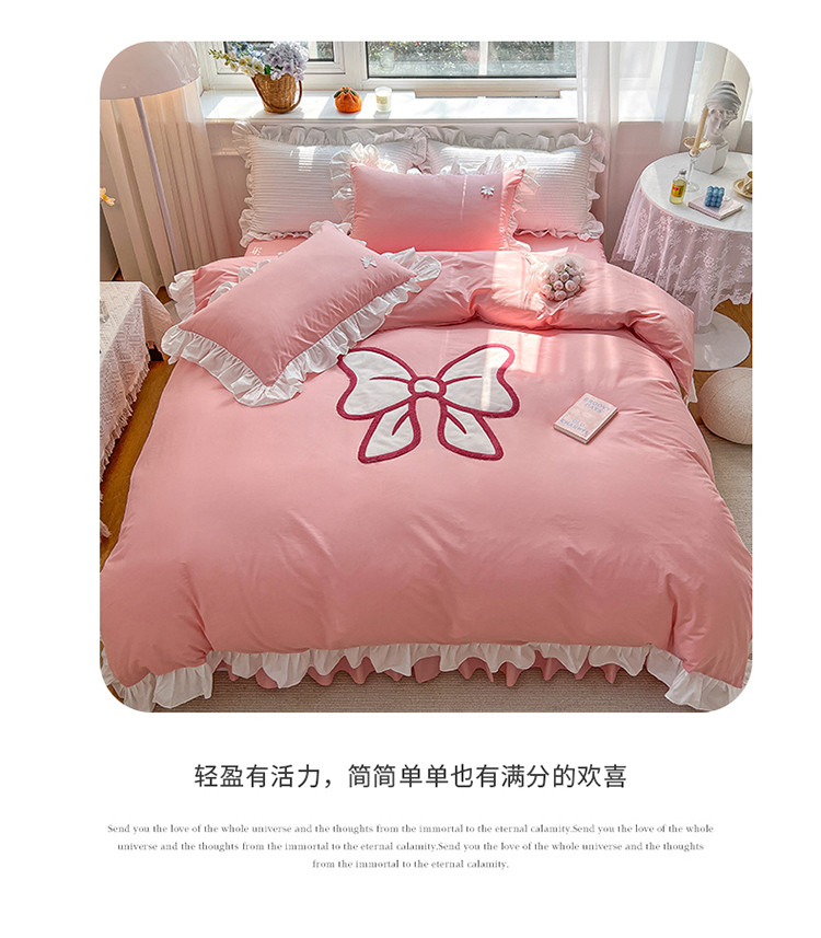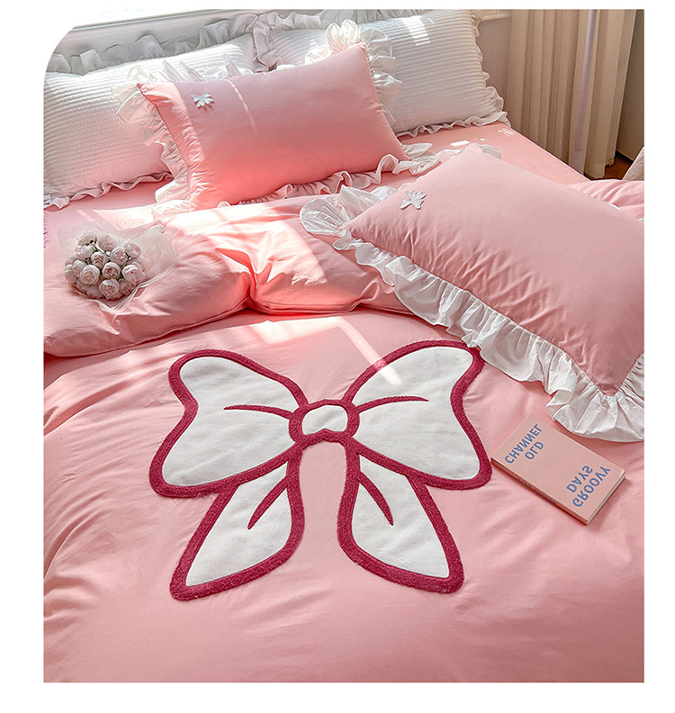 商品名称:婳庭家居 2023新款全棉13376贴布绣蝴蝶结四件套 蝴蝶结粉