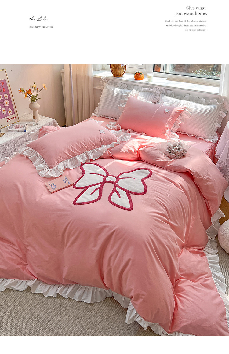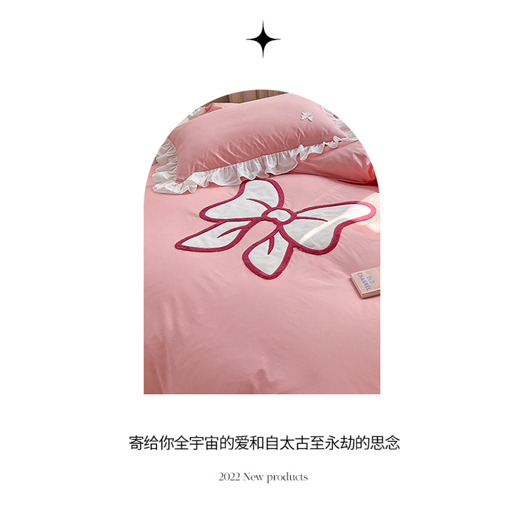 婳庭家居 2023新款全棉13376贴布绣蝴蝶结四件套 蝴蝶结粉