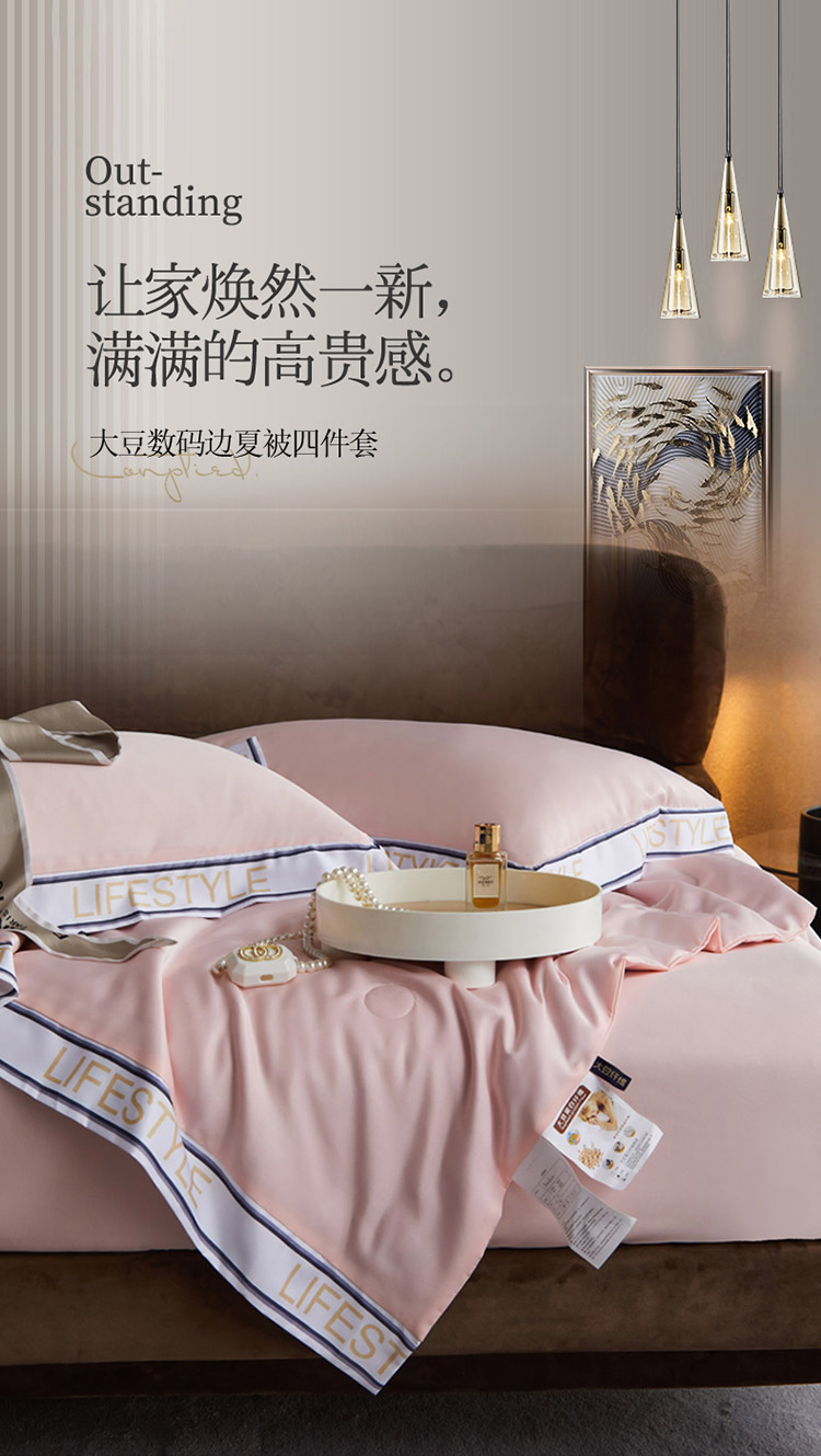 商品名称:凡客2022水洗天丝大豆纤维数码宽边莫奈夏被四件套莫奈-豆沙