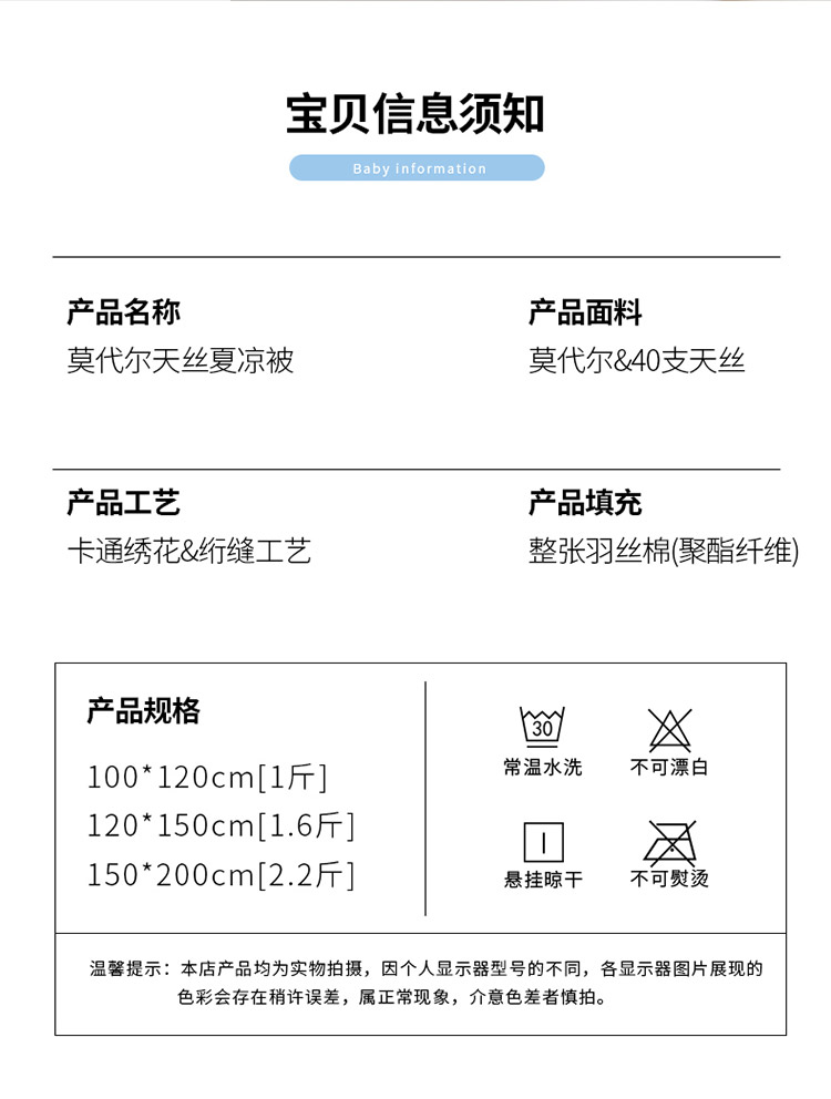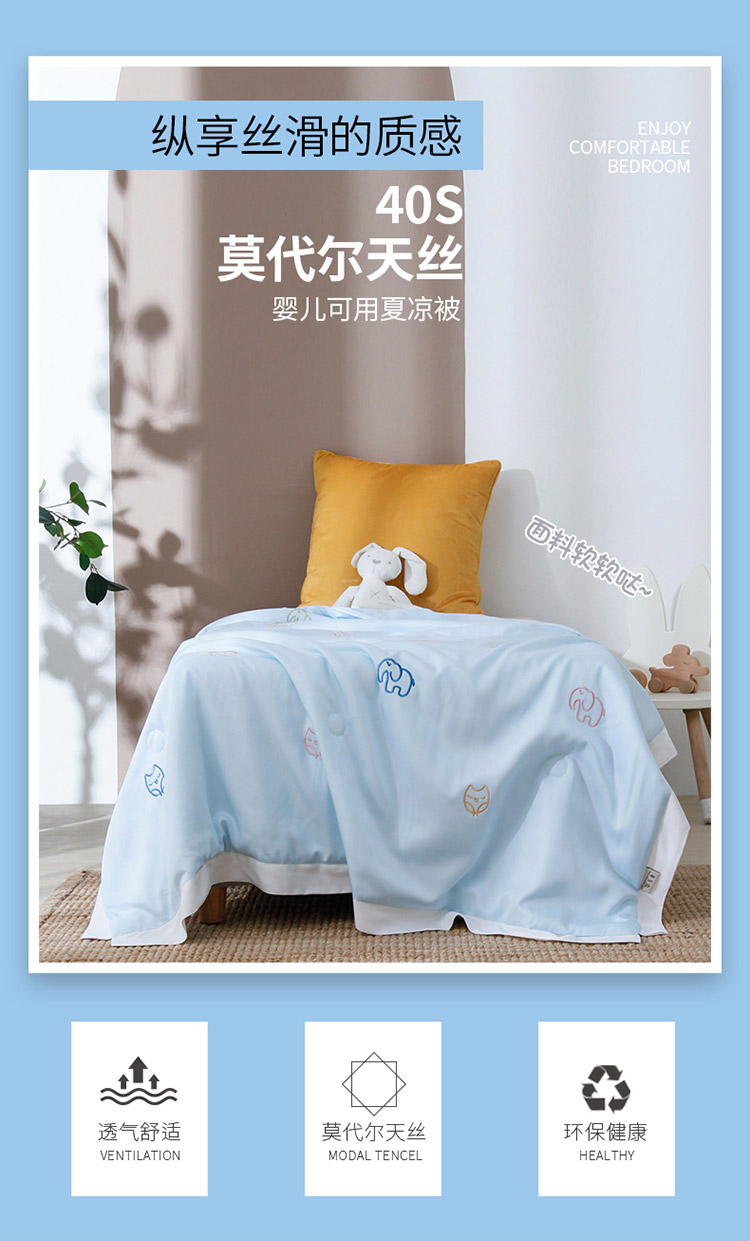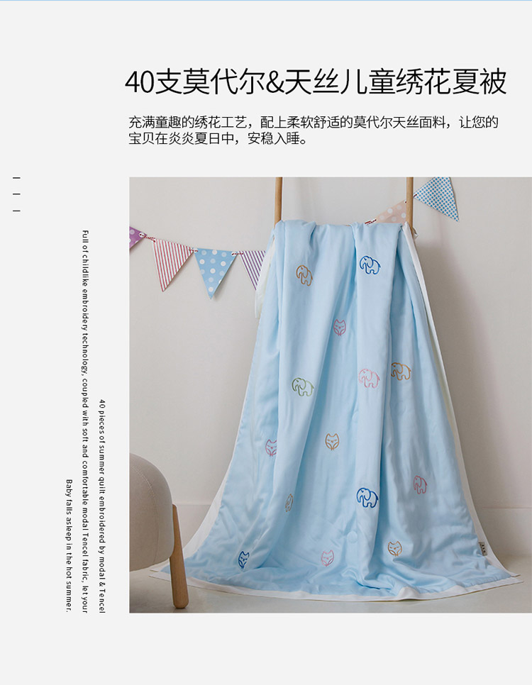 商品名称:喜多兔 2022新款莫代尔天丝儿童夏被-小甜蜜 蓝色象仔儿