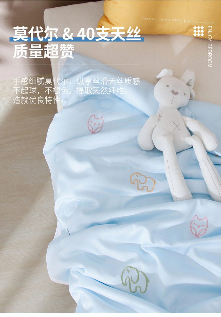 喜多兔 2022新款莫代尔天丝儿童夏被-小甜蜜 蓝色象仔儿