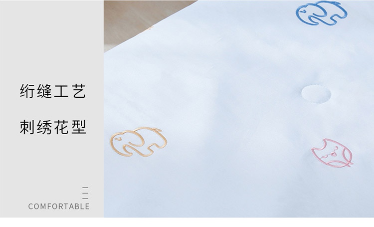 (总)喜多兔儿童家纺 2025春夏新款小软萌贴布绣纱布被,粉色软萌小兔,卡其色软萌小熊,蓝色软萌小象,绿色软萌恐龙,组合图仅供展示