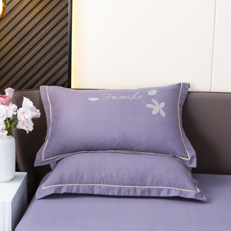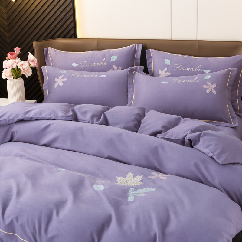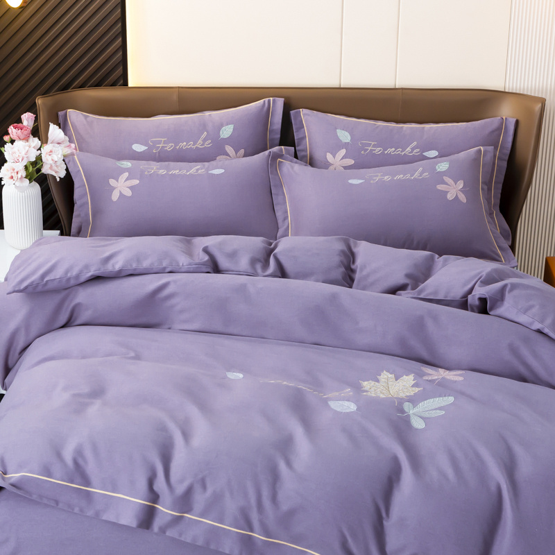 优姿家纺 2022新款全棉磨毛绣花四件套 枫叶-淡紫