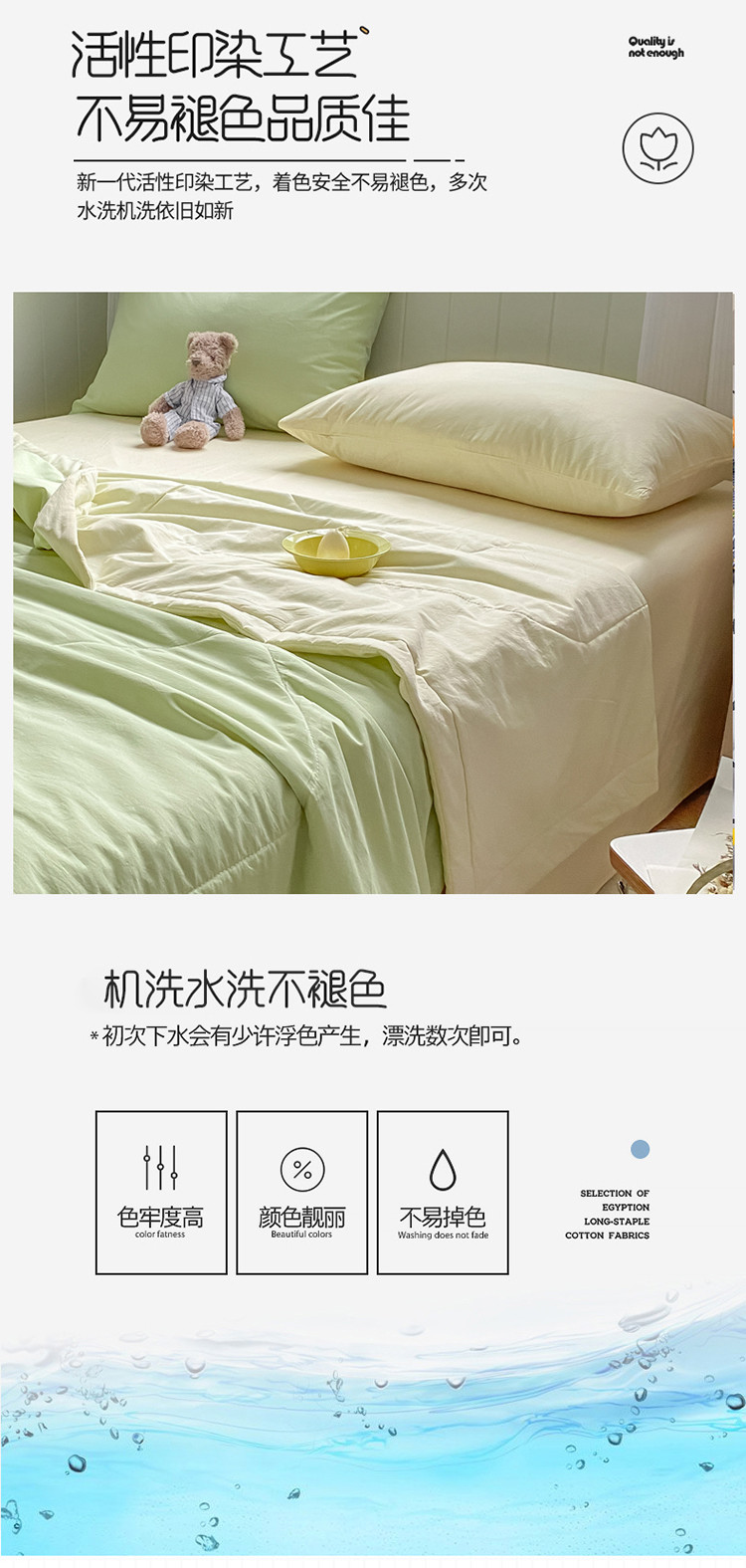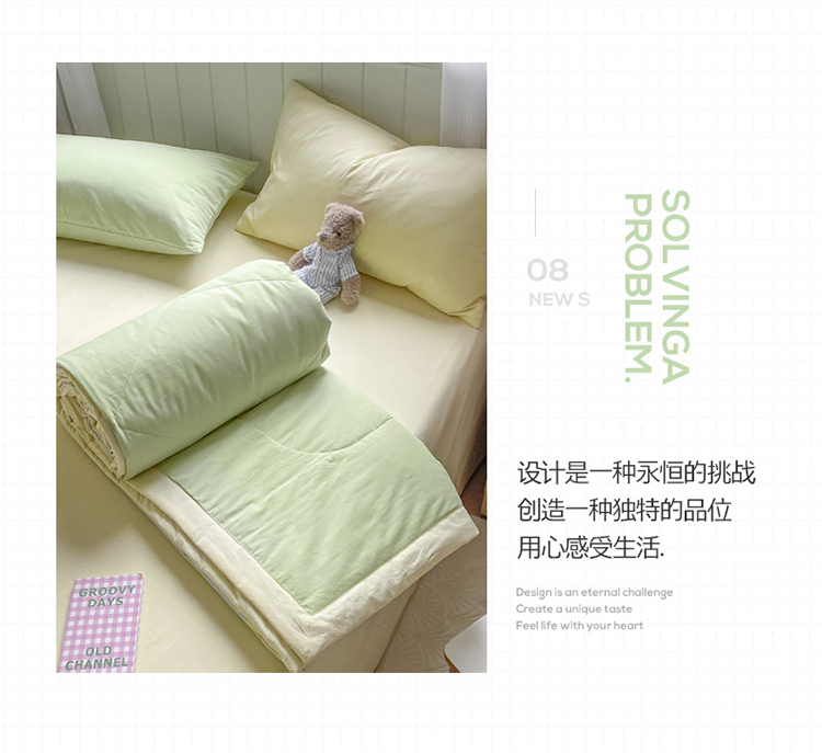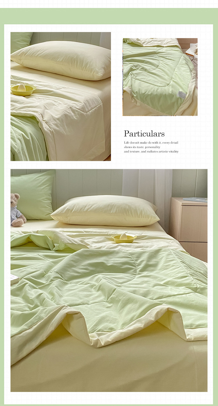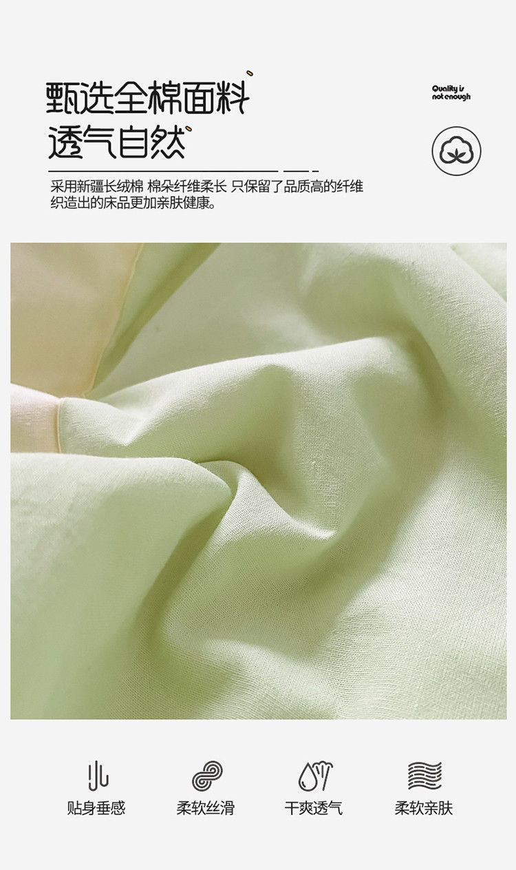 商品名称:三朵 2022新款水洗棉夏被四件套 奶白绿