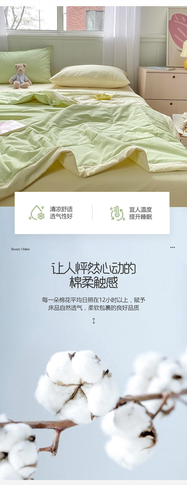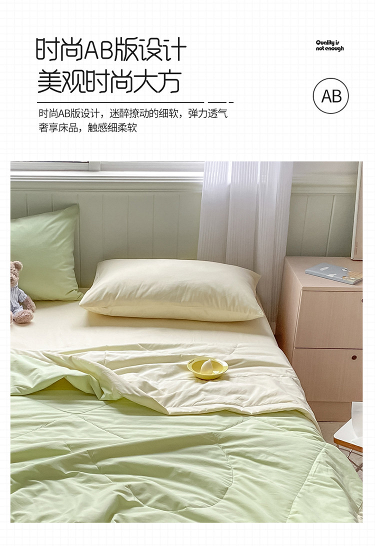 三朵 2022新款水洗棉夏被四件套 奶白绿