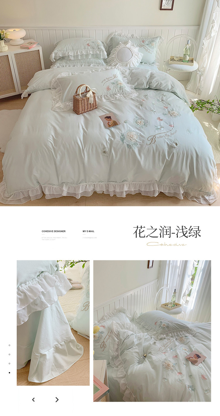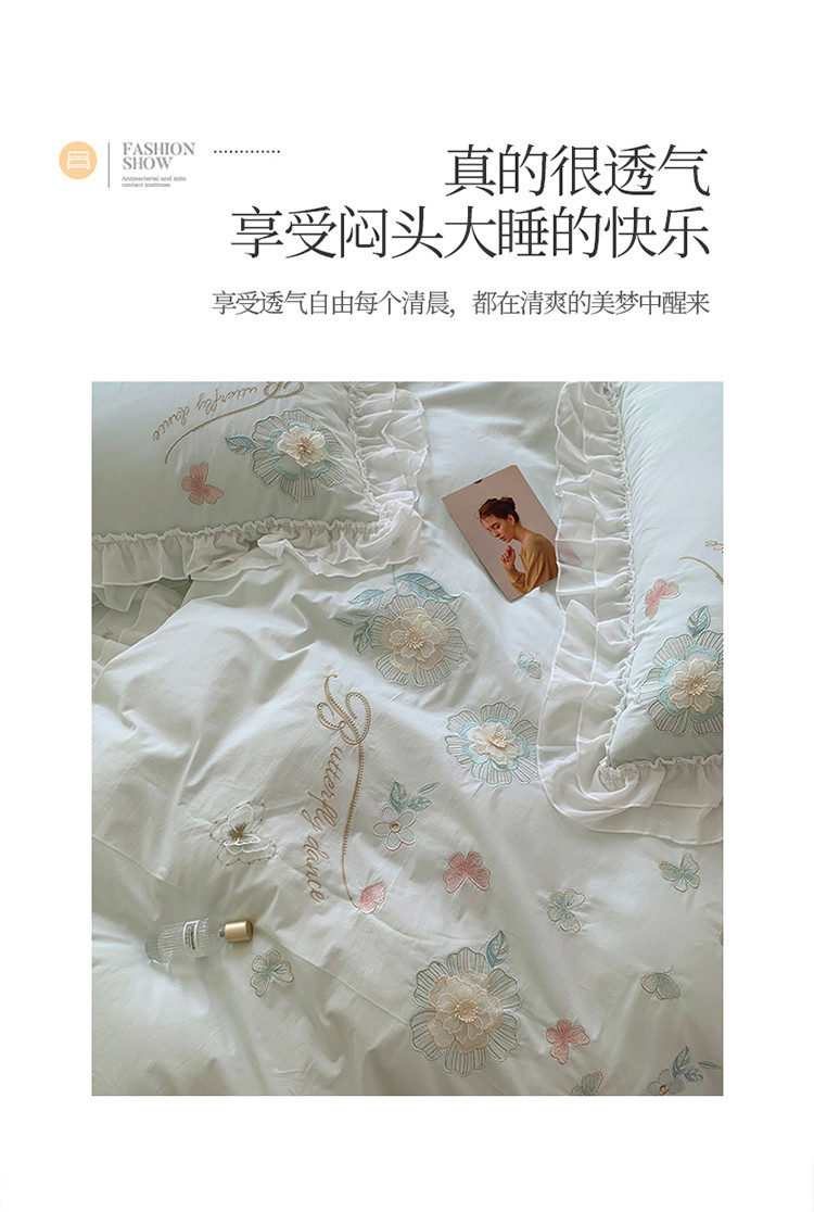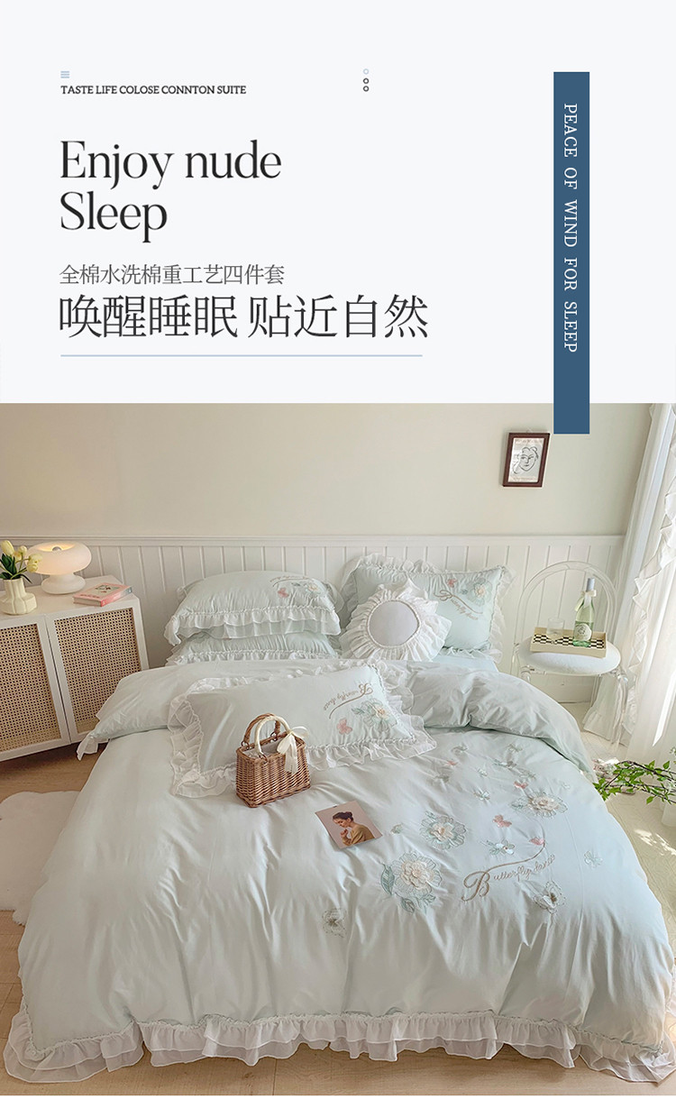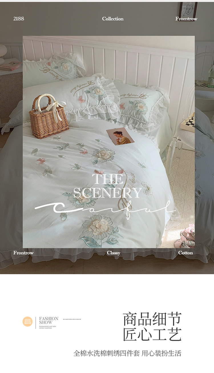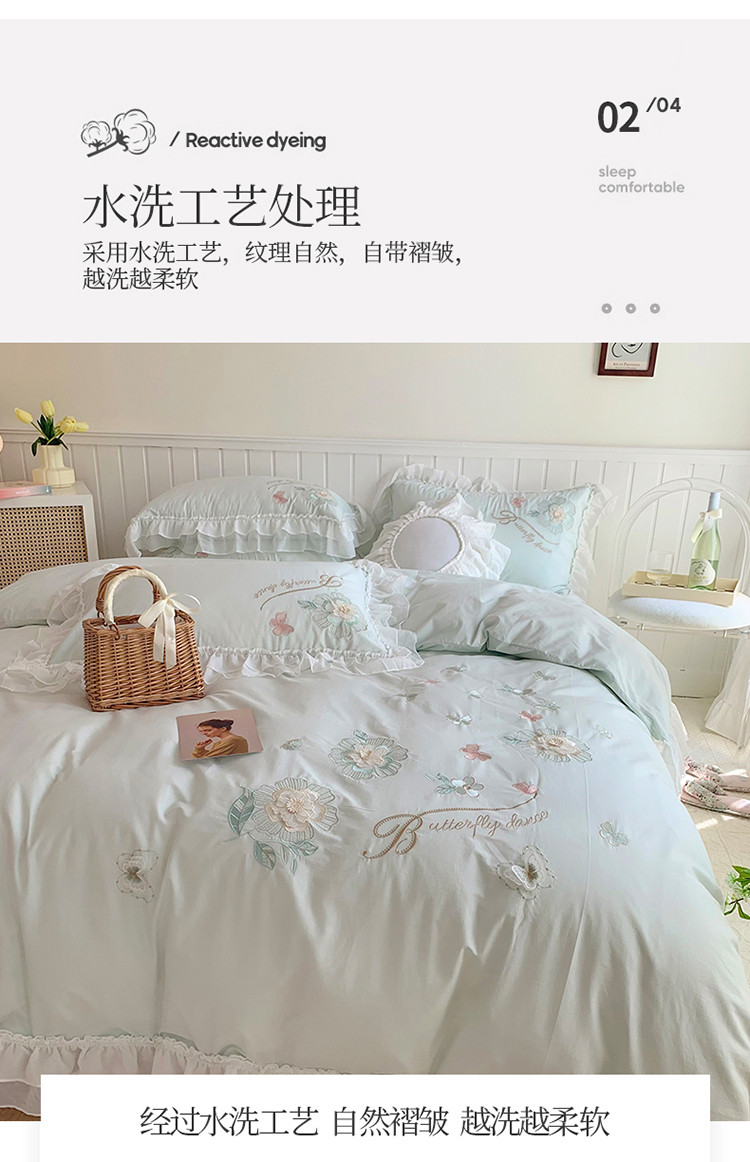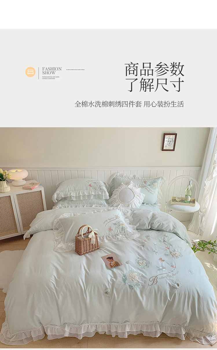 (总)眠屿 2022新款绣花水洗棉四件套花之润,花之润-浅粉,花之润-浅绿