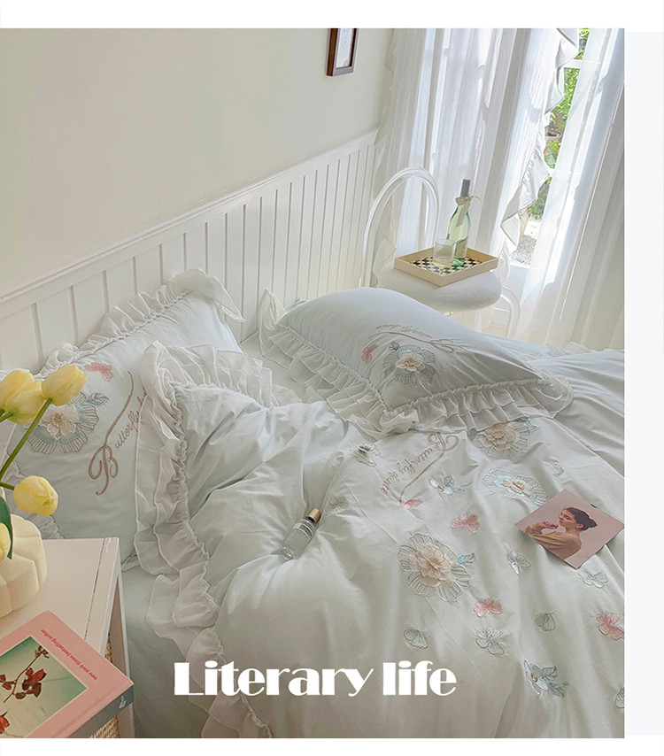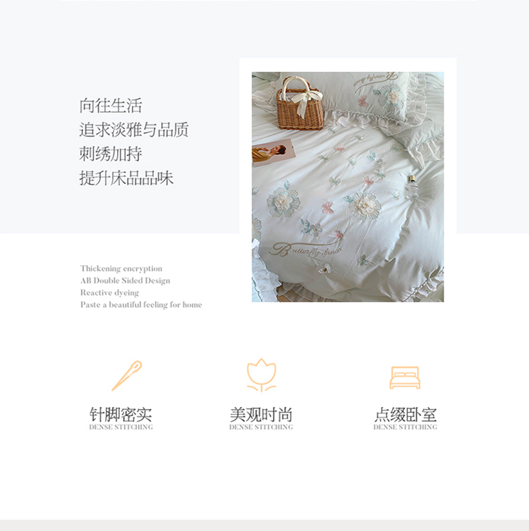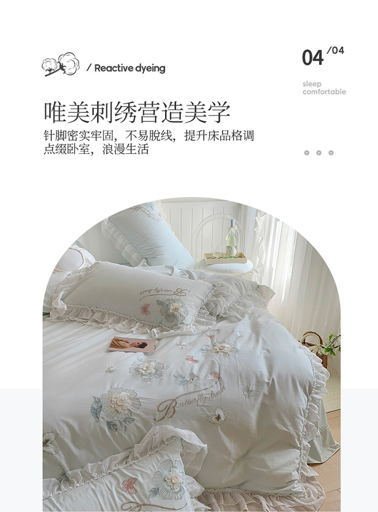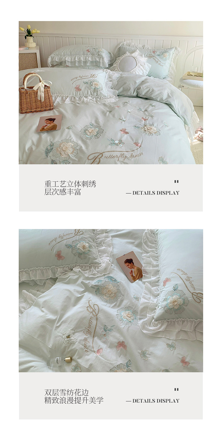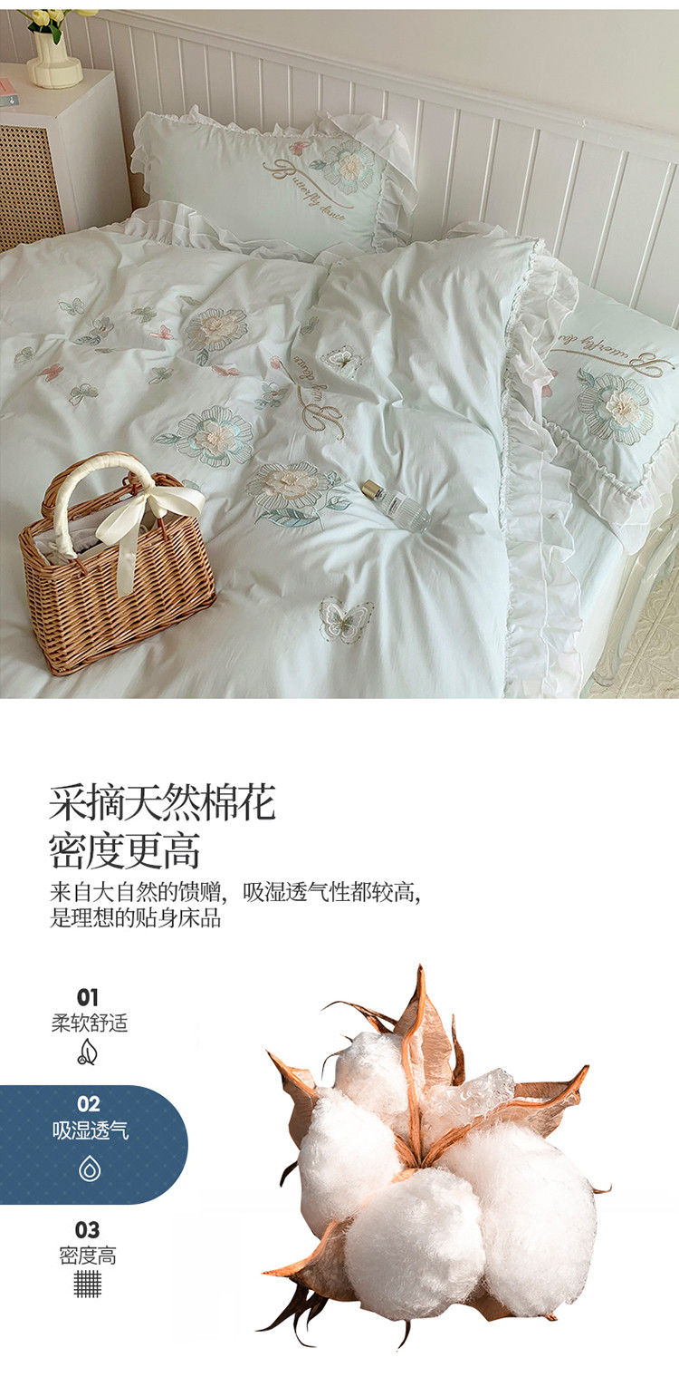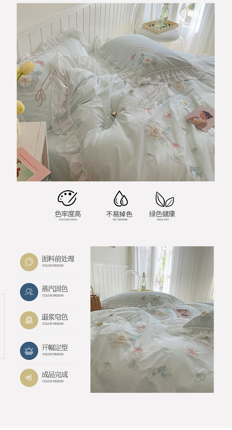 (总)眠屿 2022新款绣花水洗棉四件套花之润,花之润-浅粉,花之润-浅绿