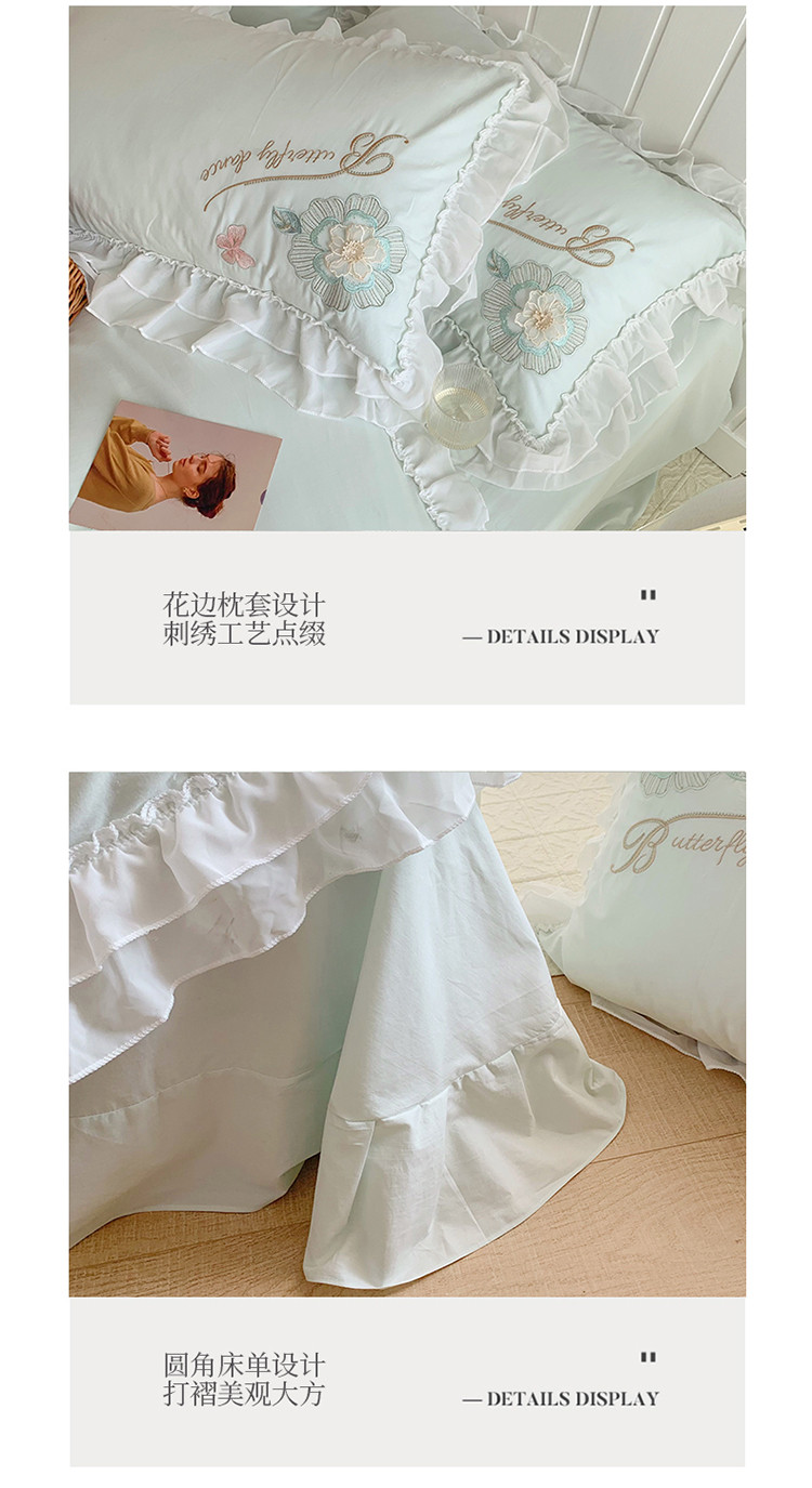 商品名称:眠屿 2022新款绣花水洗棉四件套花之润 花之润-浅绿