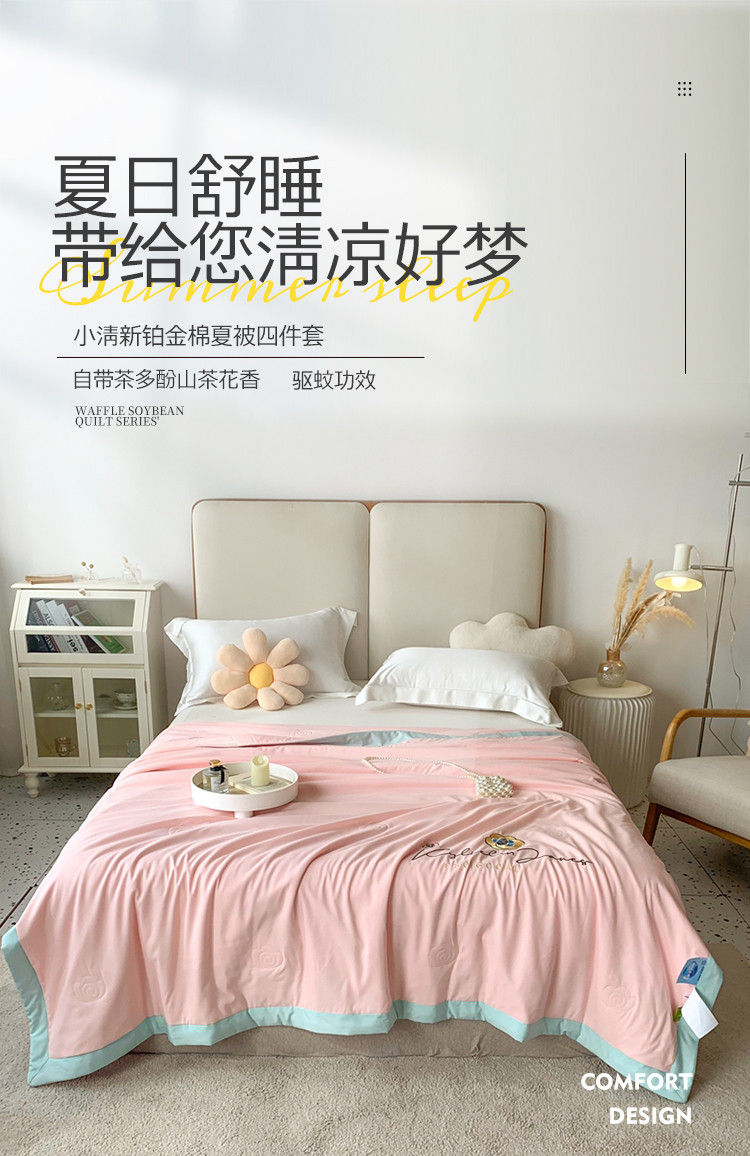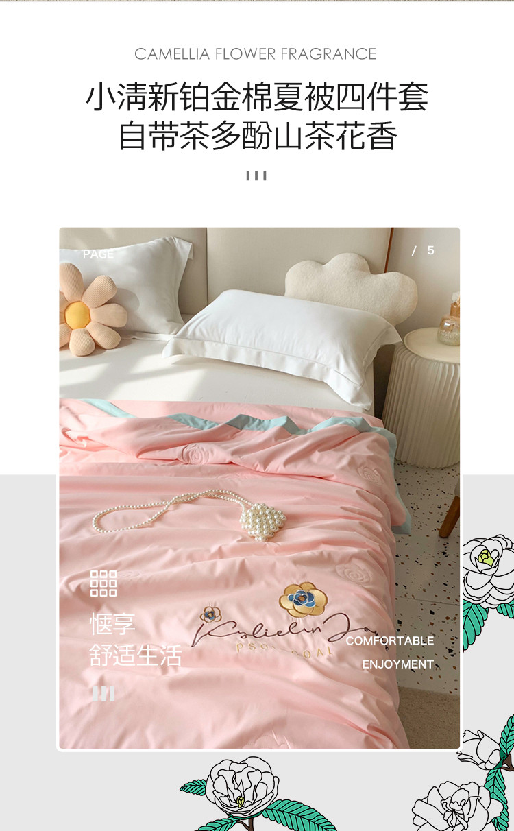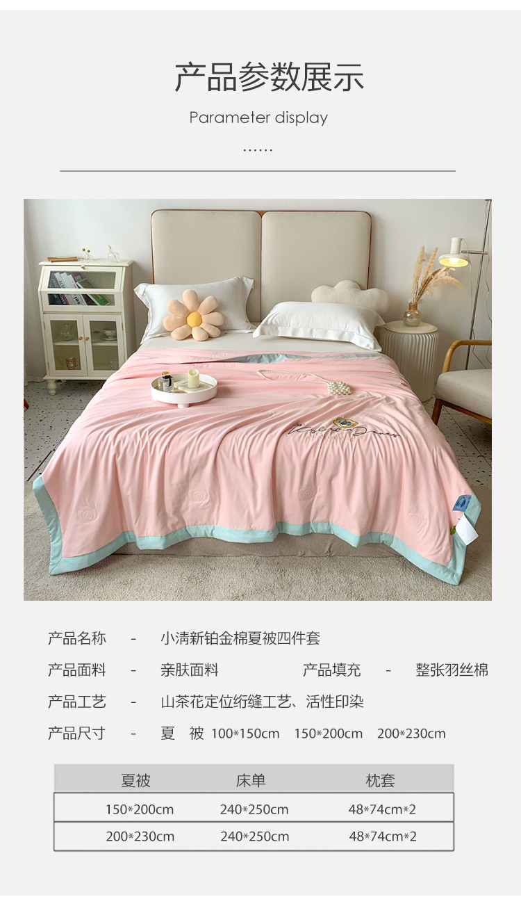 商品名称:澳洲羽 2024新款小清新铂金棉单夏被及四件套 山茶花-粉