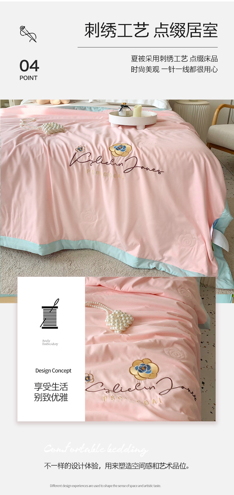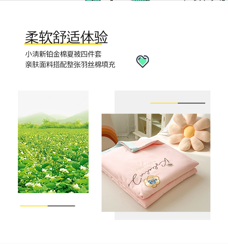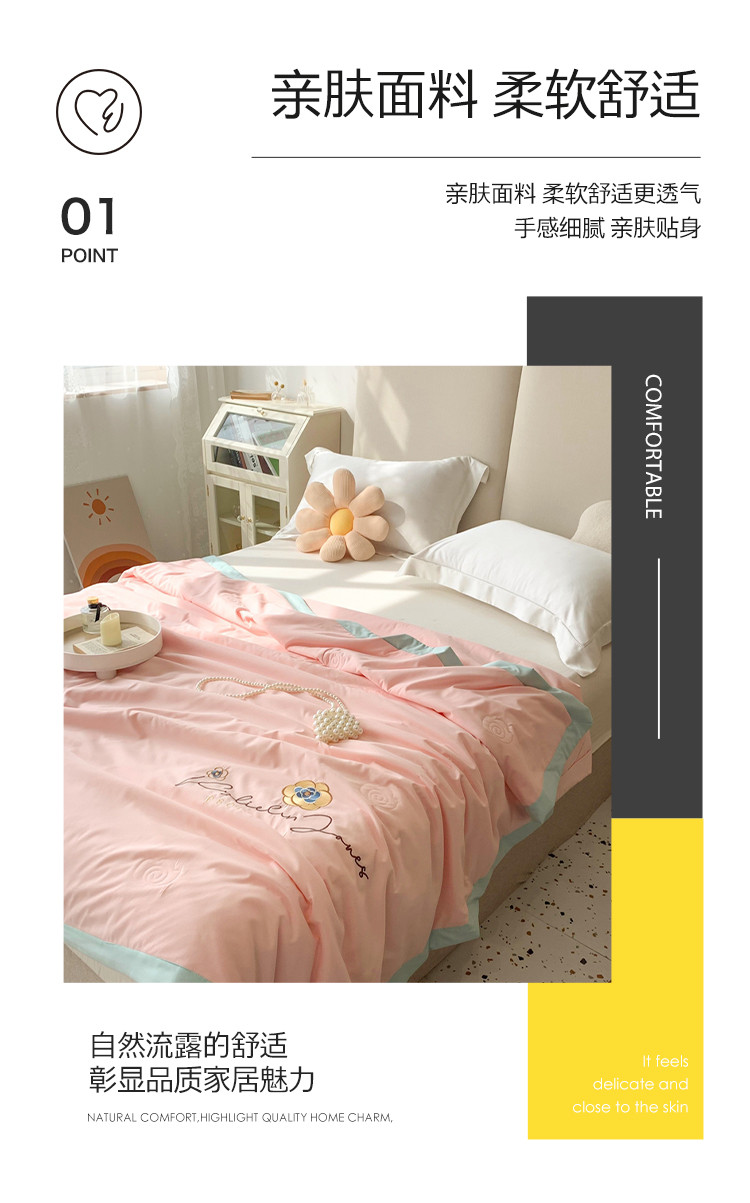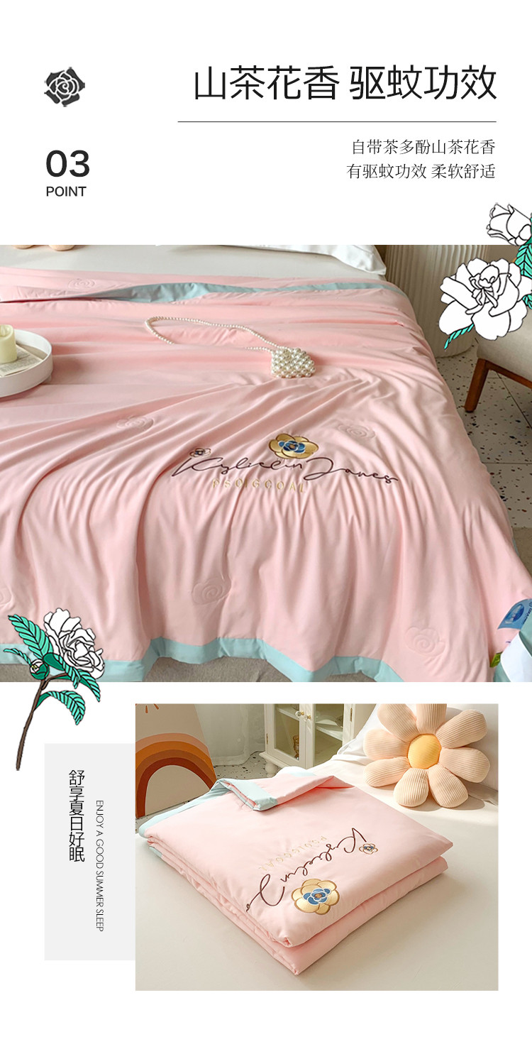 商品名称:澳洲羽 2024新款小清新铂金棉单夏被及四件套 山茶花-粉