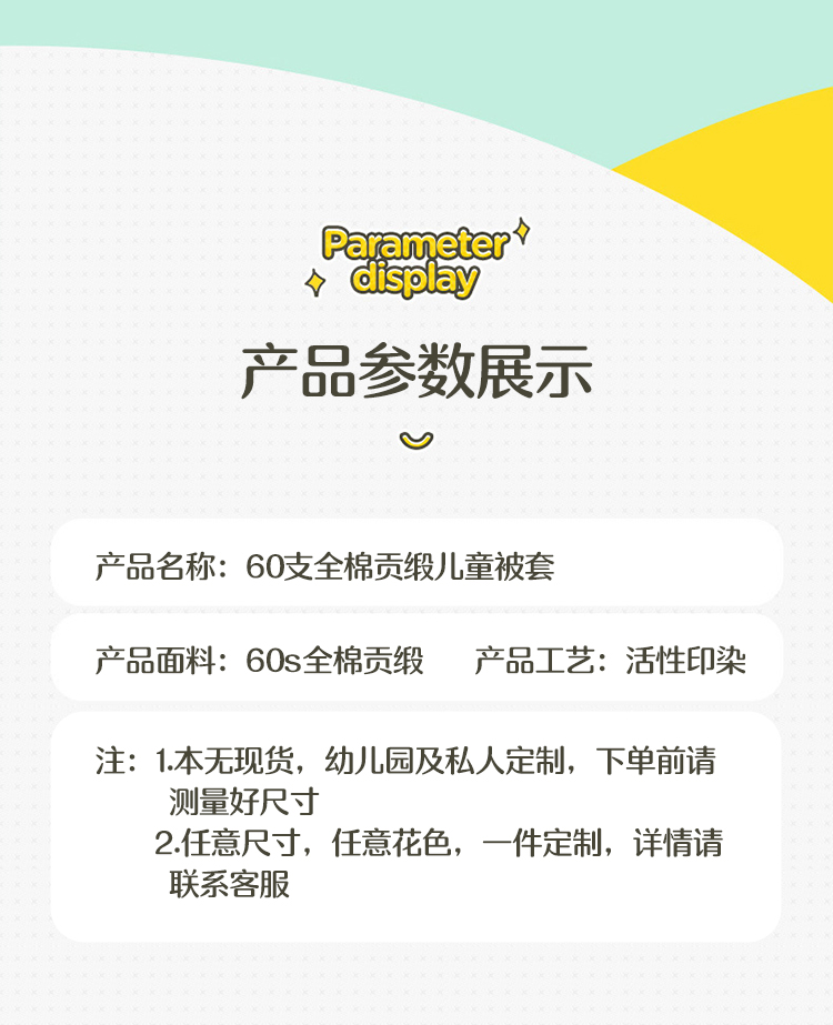 商品名称:(总)定做60支全棉贡缎儿童被套纯棉幼儿园被罩垫套褥子套