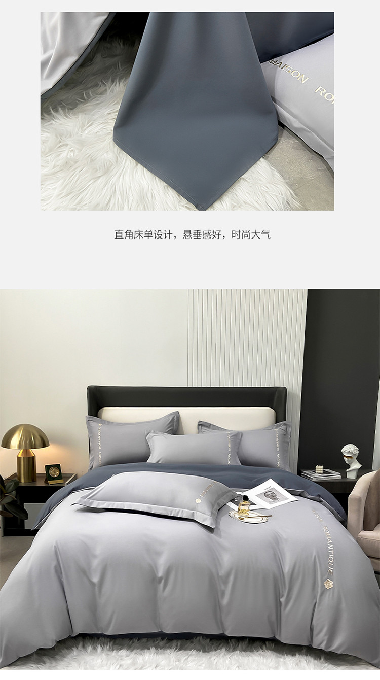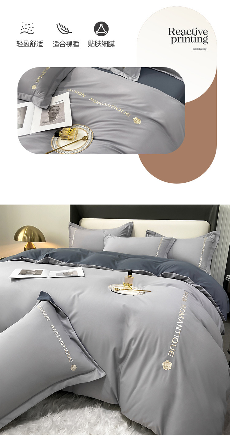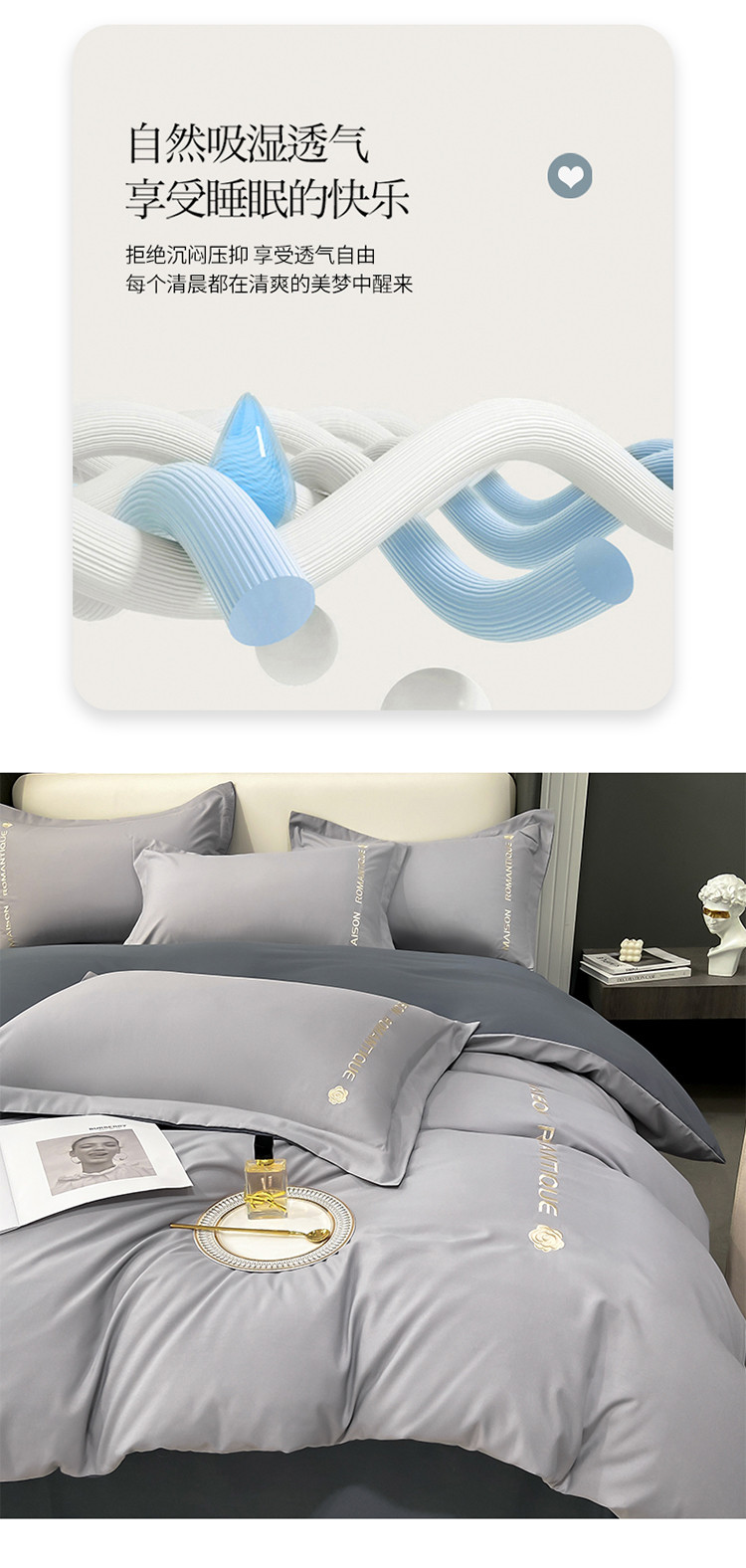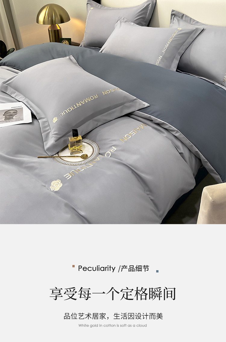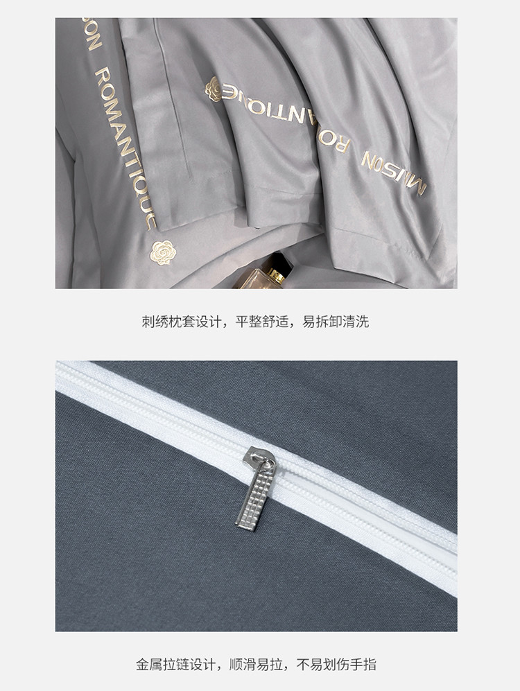 欣晴 2023年新款亲肤水洗棉轻奢刺绣四件套 若梦-浅灰
