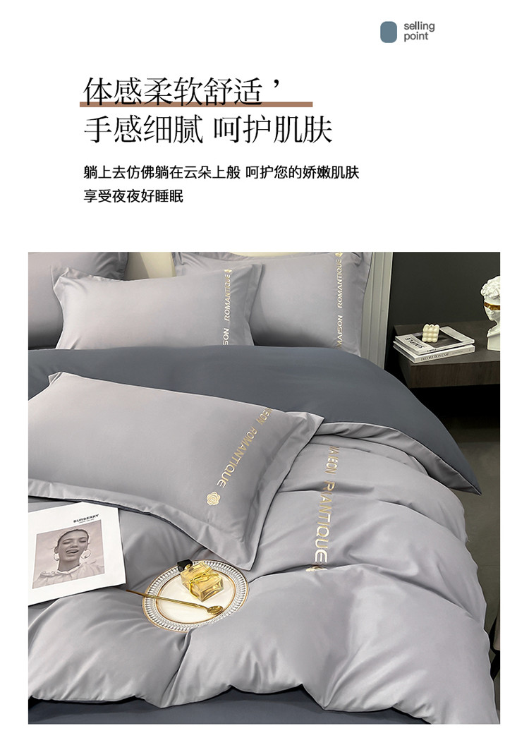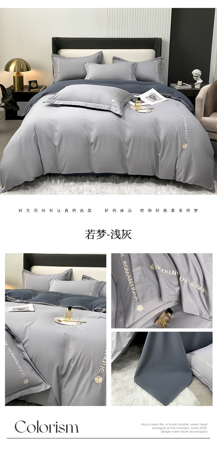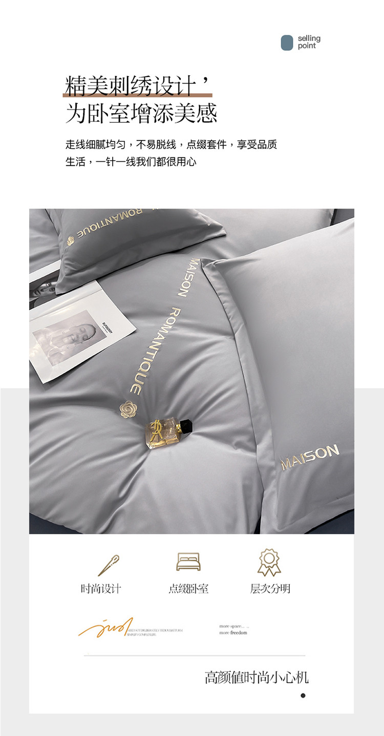 商品名称:欣晴 2023年新款亲肤水洗棉轻奢刺绣四件套 若梦-浅灰