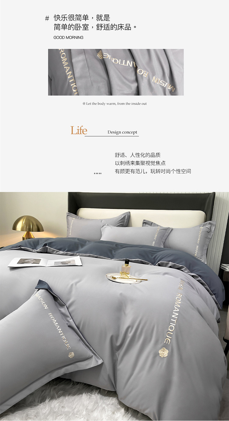 (总)欣晴 2023新款亲肤洛卡棉磨毛简约刺绣四件套,简约-翠绿,简约-豆沙,简约-粉玉,简约-果绿,简约-卡其,简约-米白,简约-米灰,简约-浅灰,简约-浅灰深灰,简约-浅蓝,简约-深灰,简约-深灰浅灰