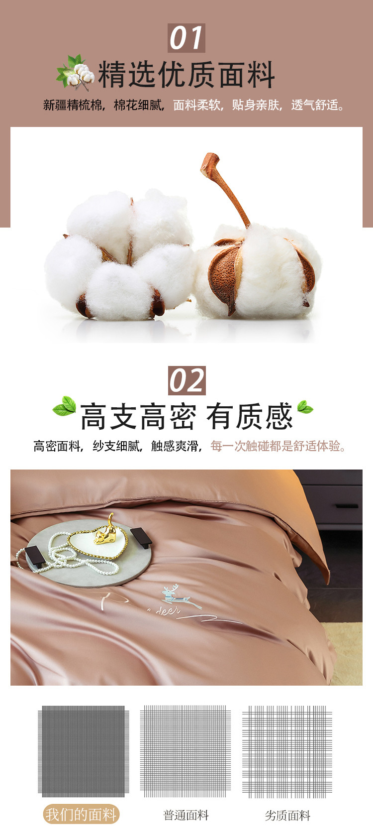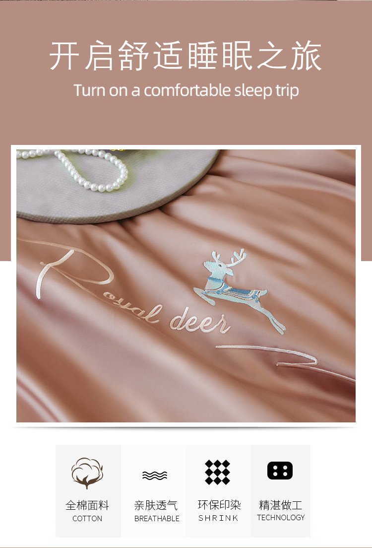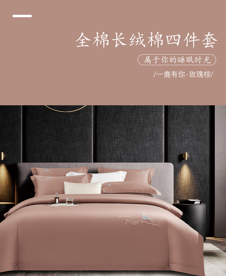 商品名称:芊寻家居 2024新款全棉长绒棉四件套 一鹿有你-玫瑰棕