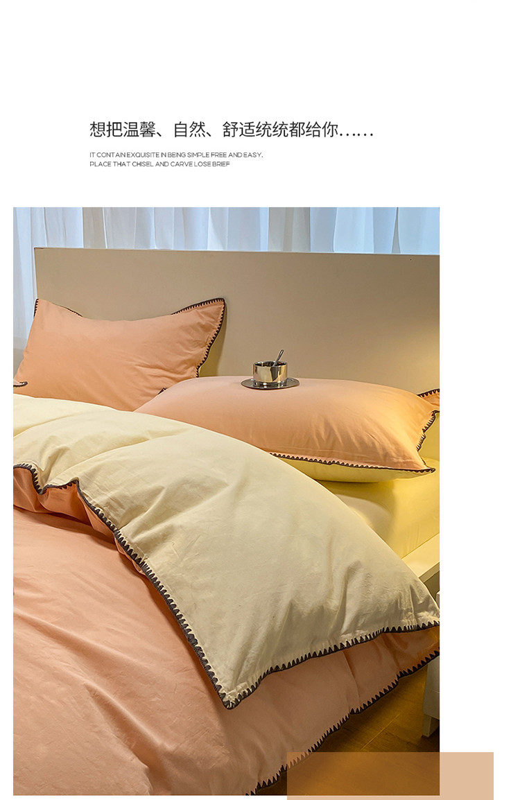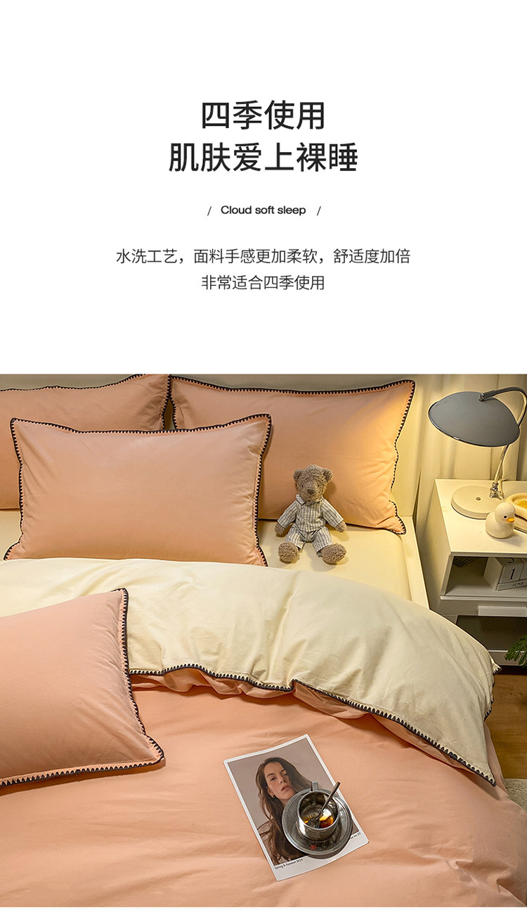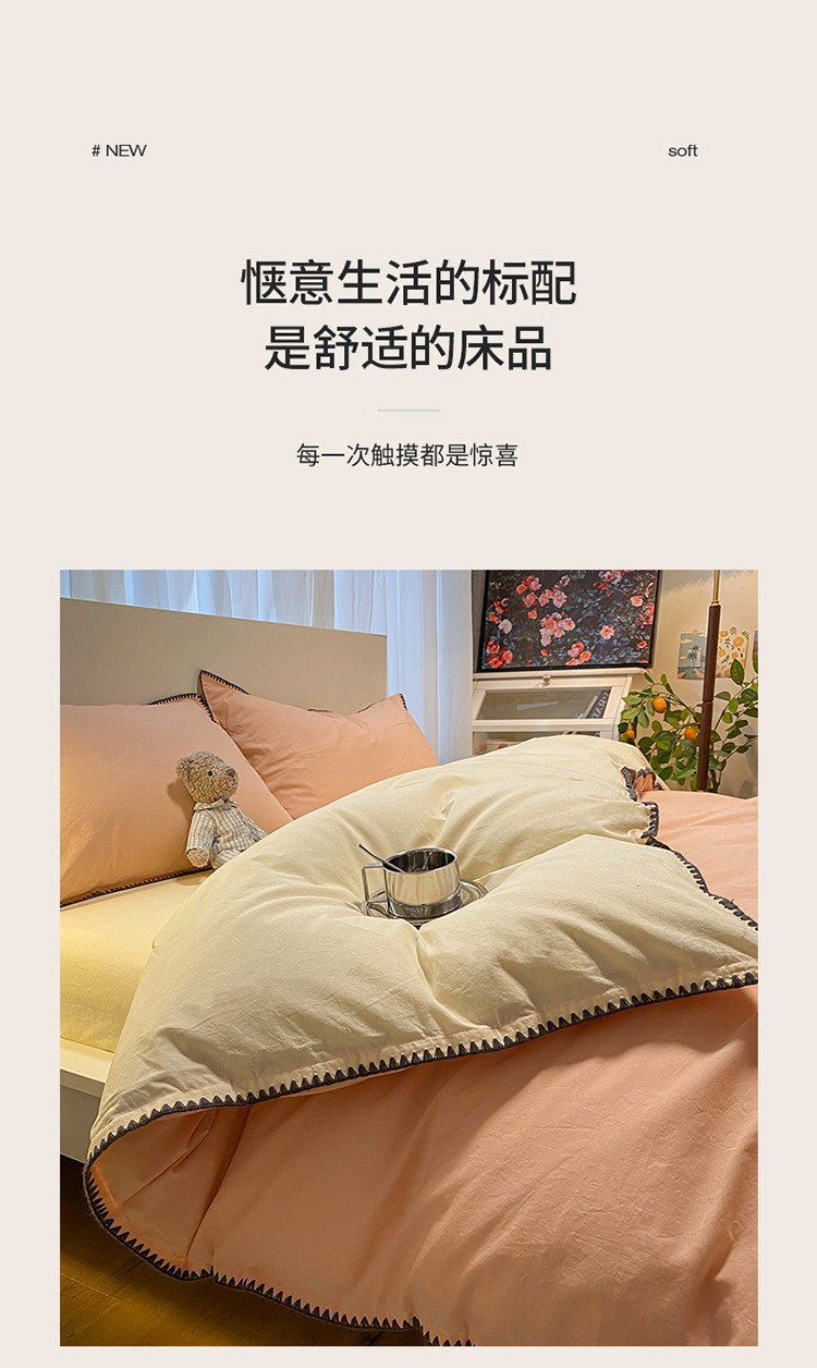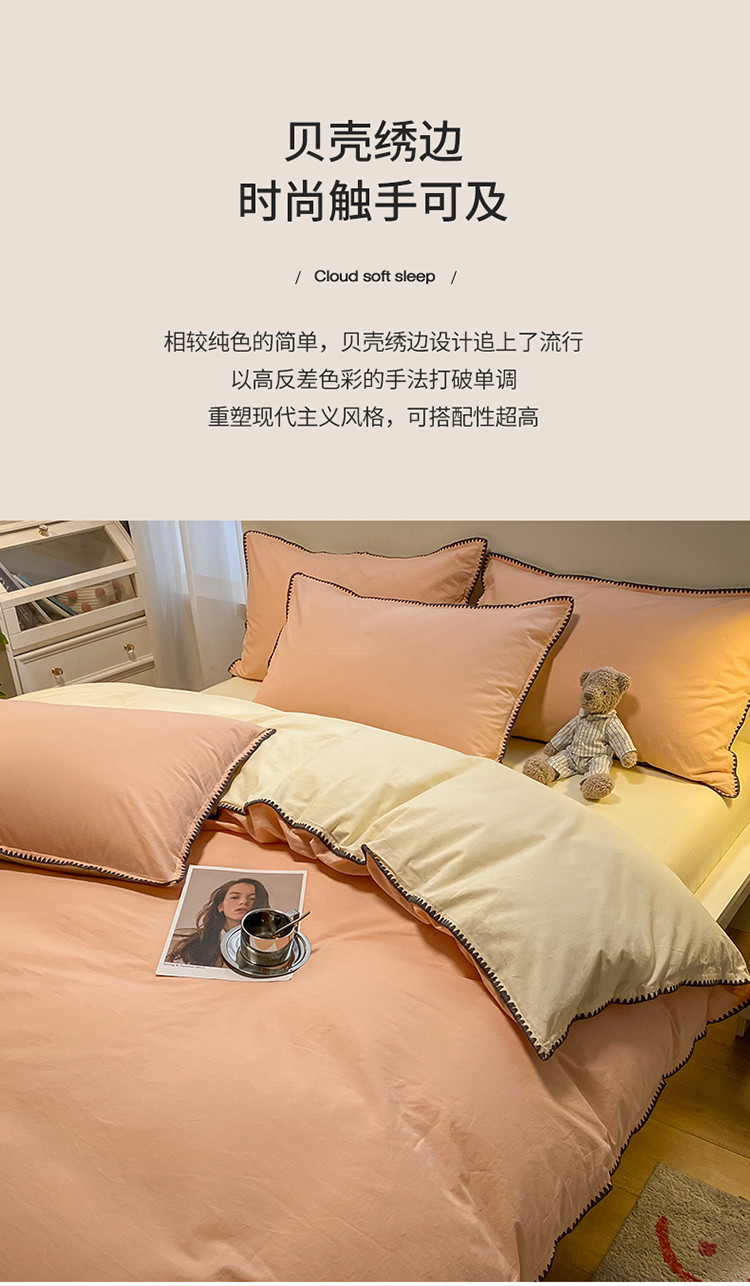 (总)眠帛 2022新款水洗棉贝壳绣边四件套,豆沙-灰,繁星兰-灰,奶黄-焦糖,奶黄-天空蓝,奶油粉-奶黄,浅灰-奶黄,天空蓝-奶黄