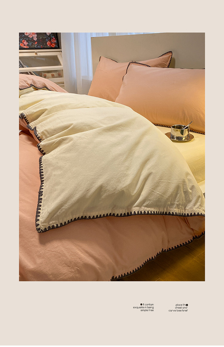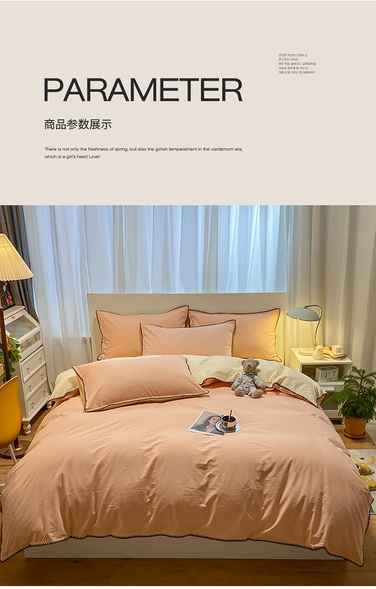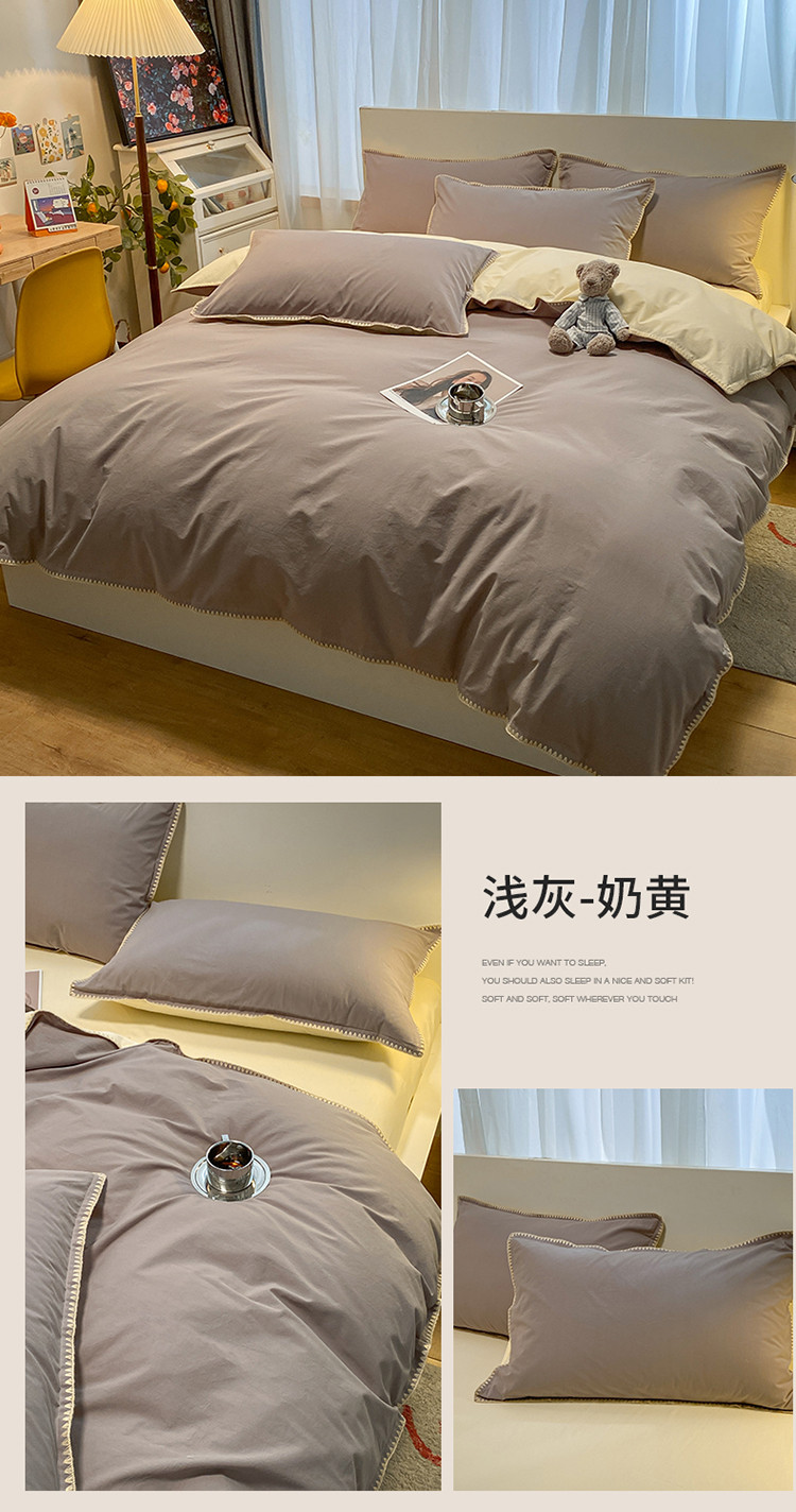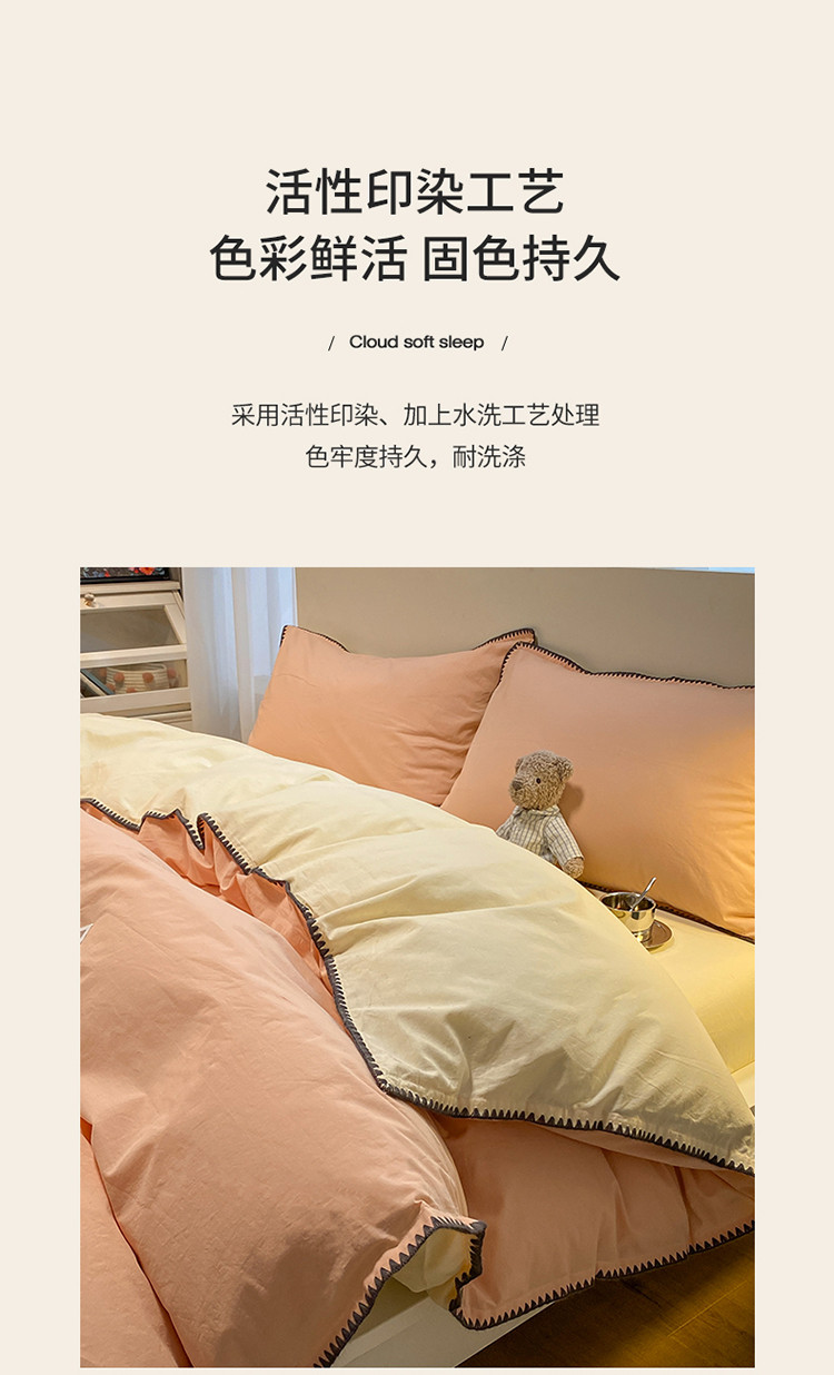 (总)眠帛 2022新款水洗棉贝壳绣边四件套,豆沙-灰,繁星兰-灰,奶黄-焦糖,奶黄-天空蓝,奶油粉-奶黄,浅灰-奶黄,天空蓝-奶黄