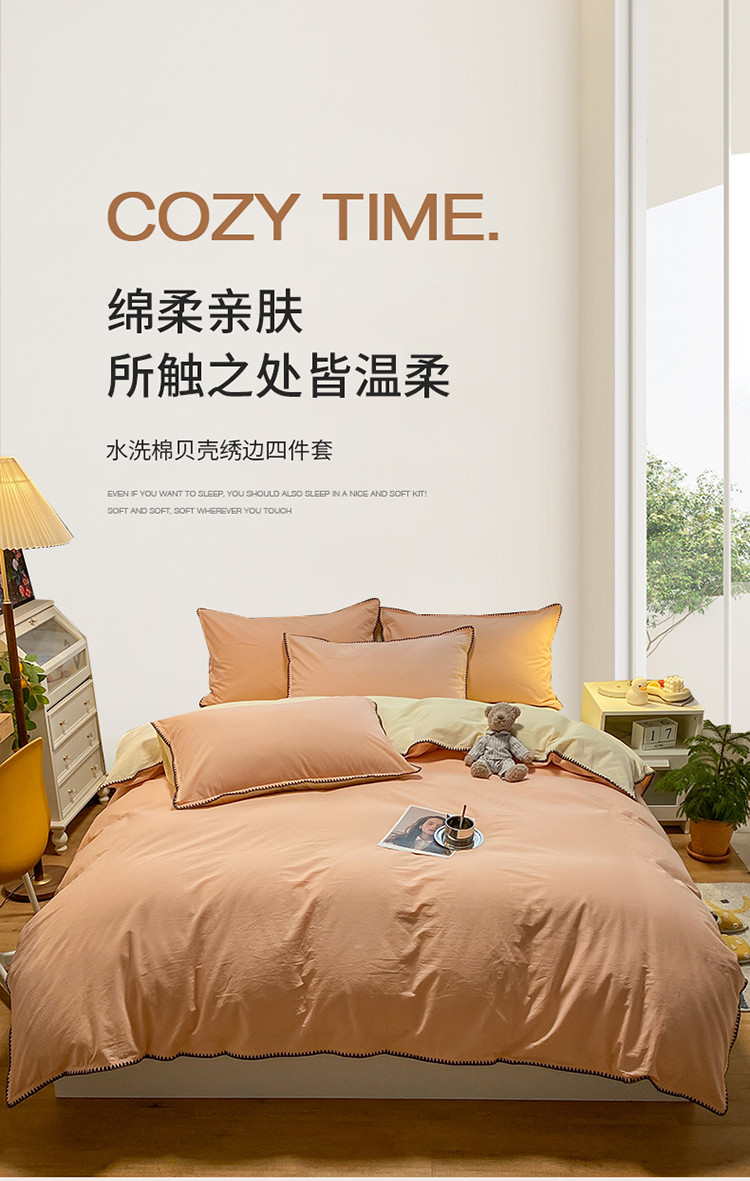 (总)眠帛家居 2022新款水洗棉贝壳绣边四件套