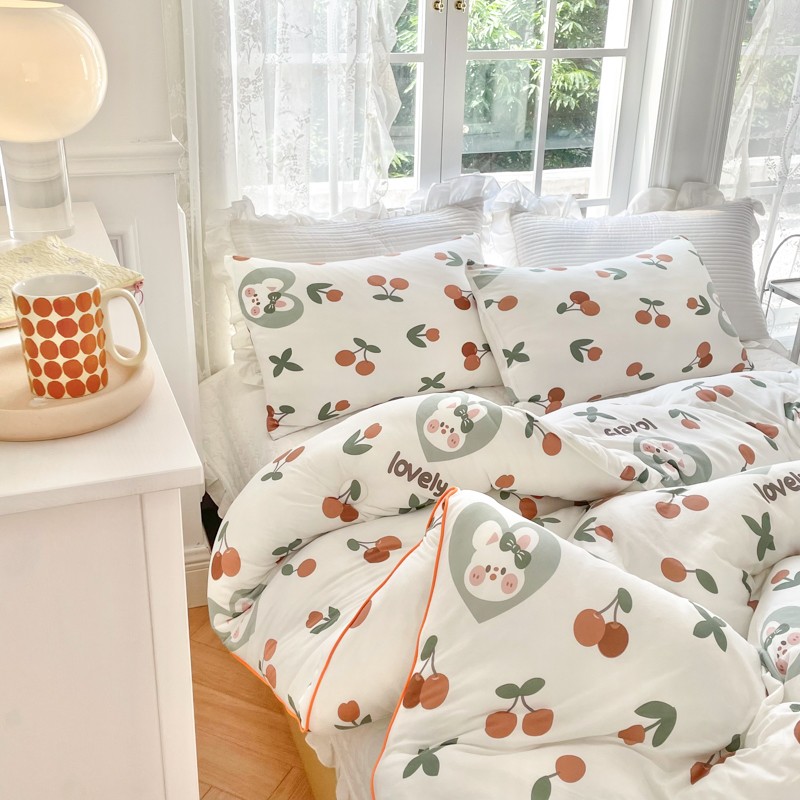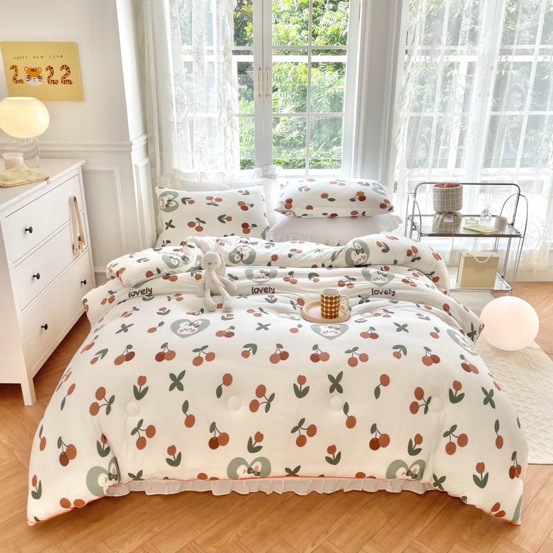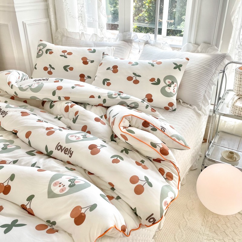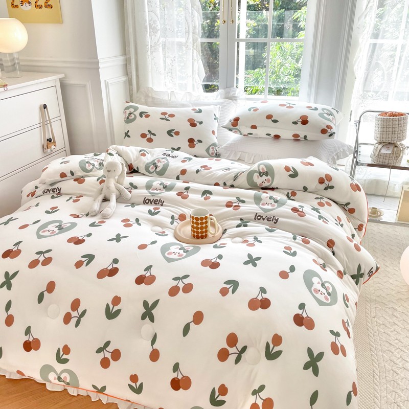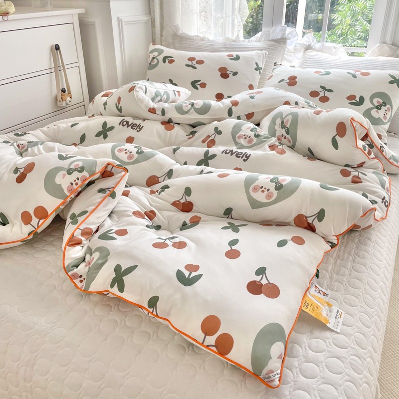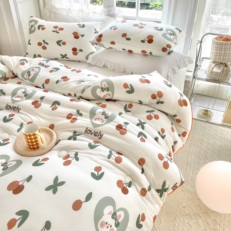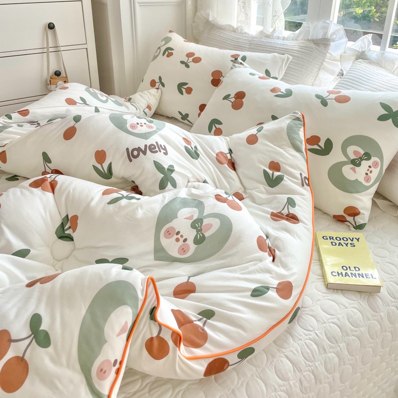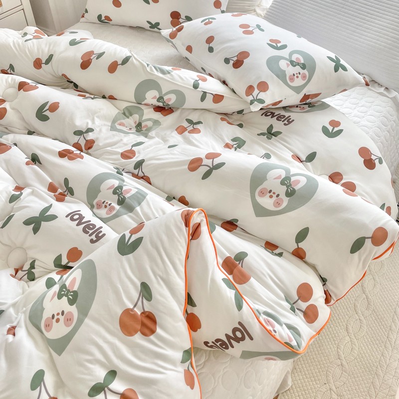 木堇家居 2022新款秋冬ins针织印花A类大豆春秋冬被 樱桃兔