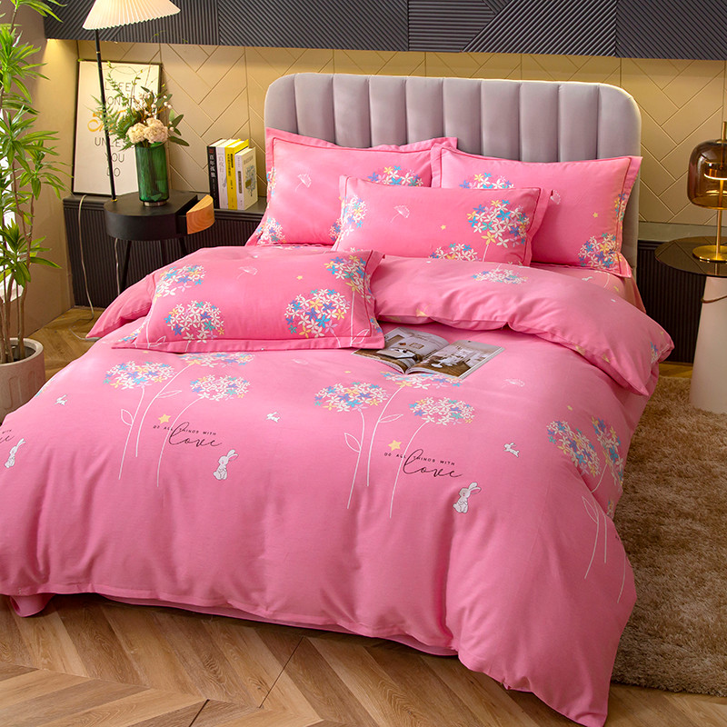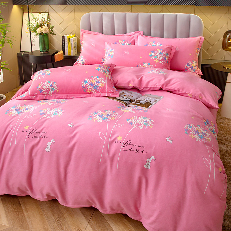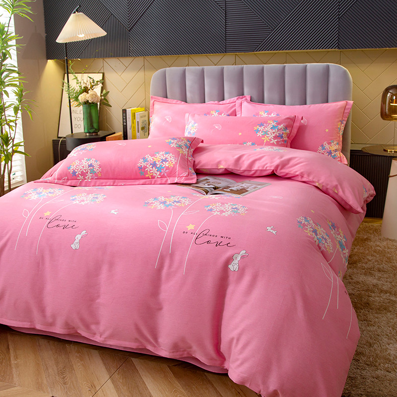 简冠家纺 2022新款全棉加厚生态磨毛系列单被套 花园小兔-粉