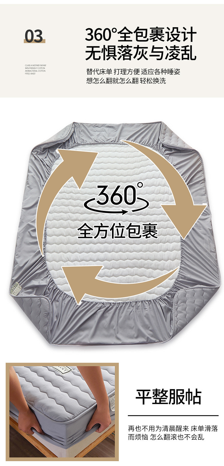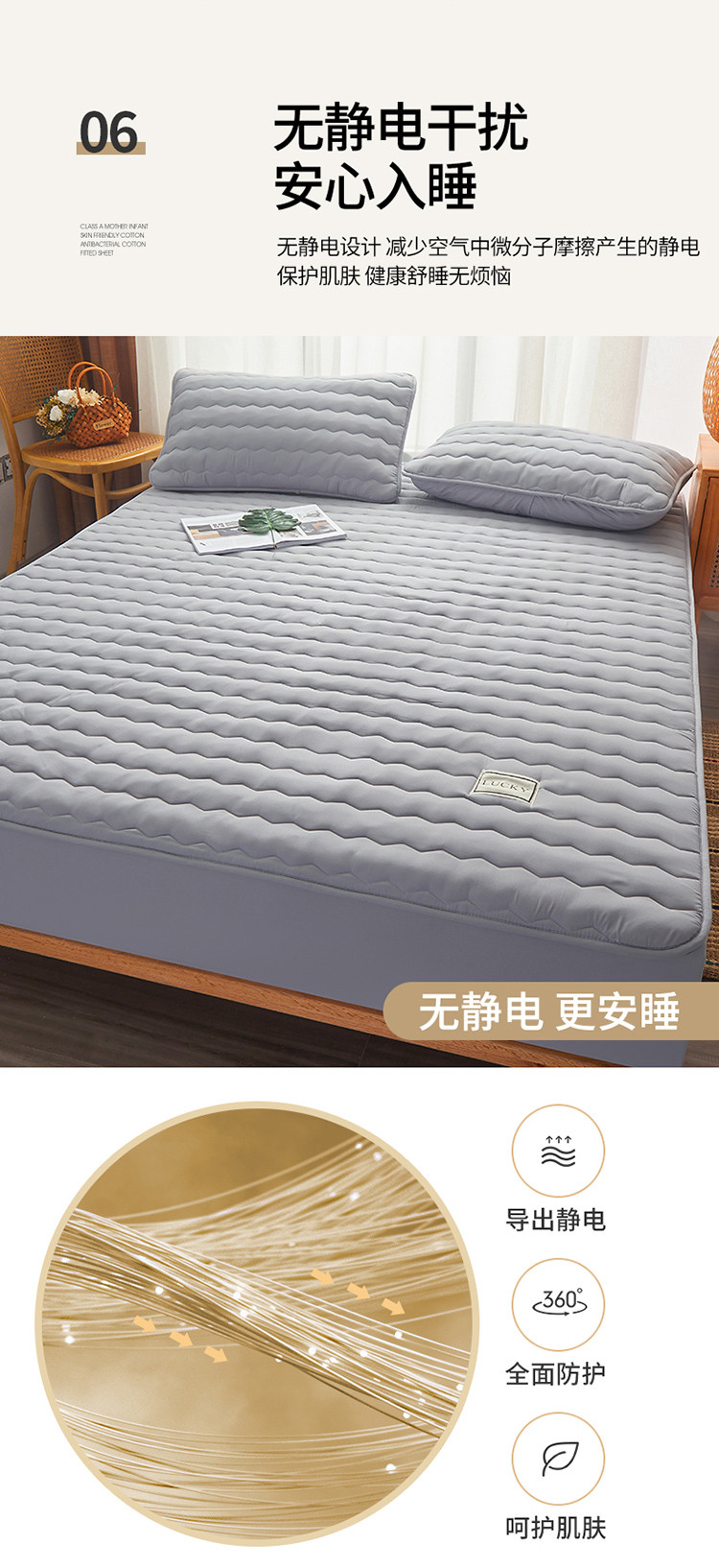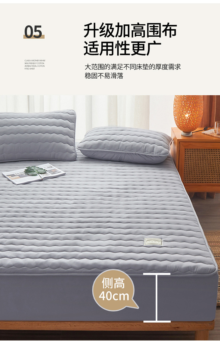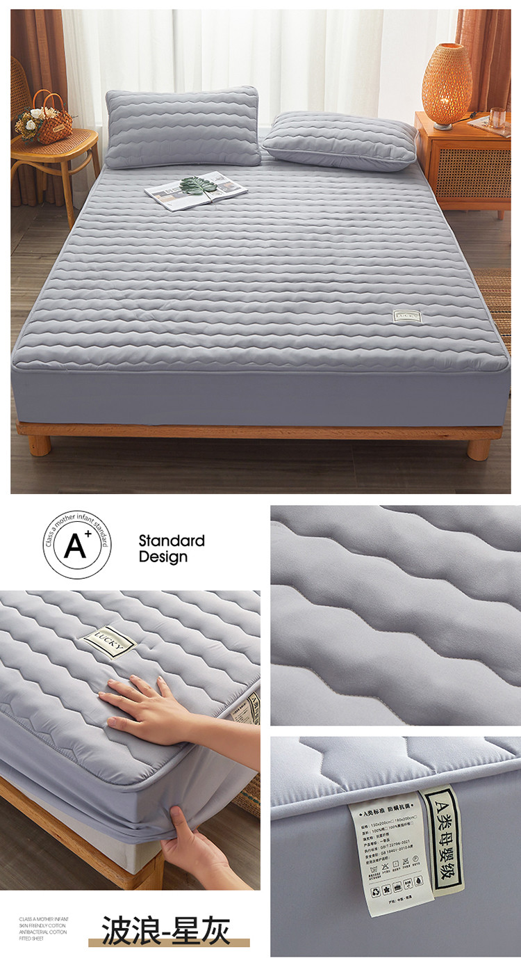 芬晴 2023新款A类全棉母婴级抗菌防螨夹棉床笠 波浪-星灰