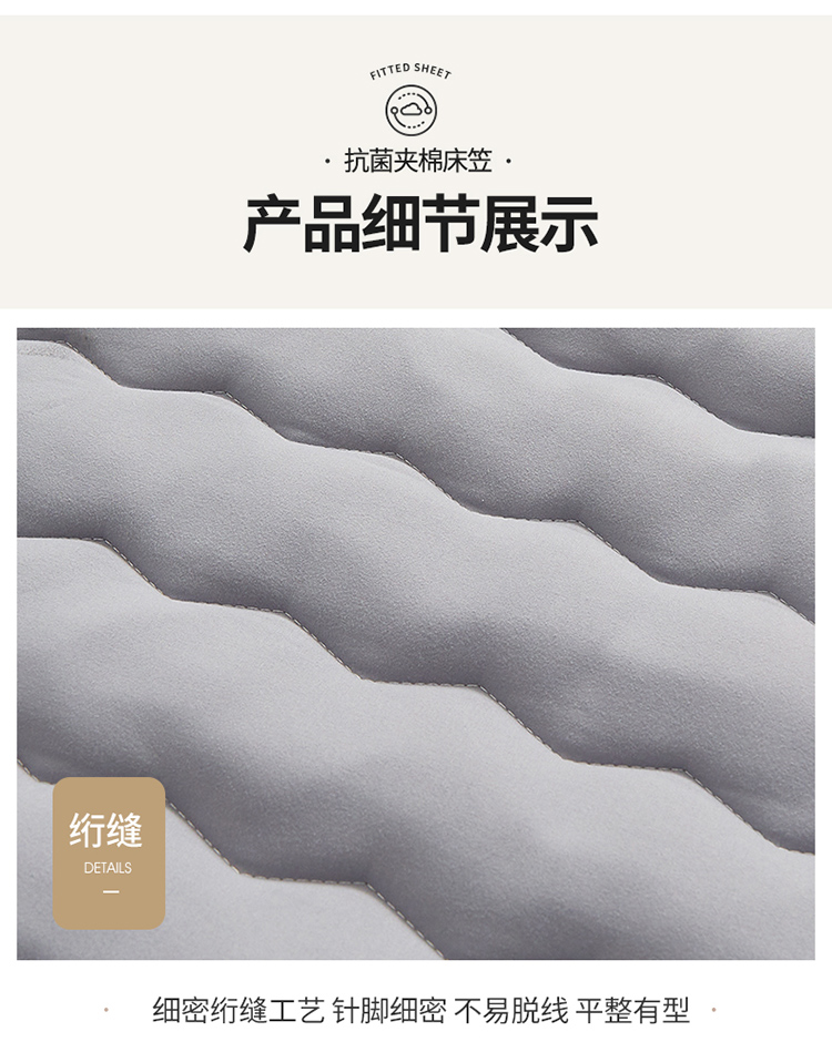 • 91家纺网 家纺一手货源 找家纺 芬晴 2023新款A类全棉母婴级抗菌防螨夹棉床笠 波浪-星灰