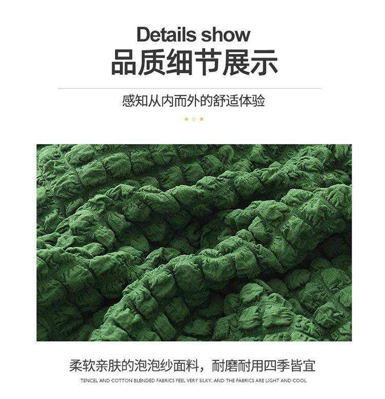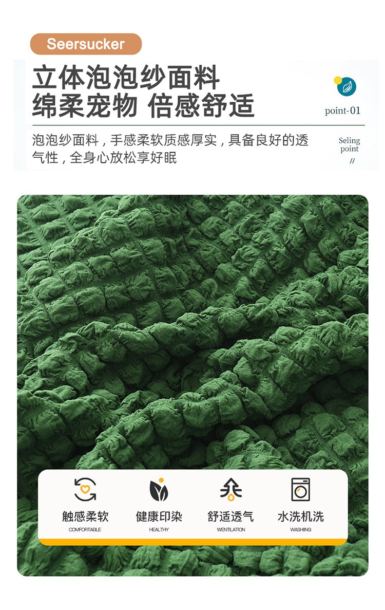 当前位置: 91家纺网 > 商品网购 > 居家布艺 > 坐垫/椅垫/沙发垫 > 沙发垫 > 启博家纺 2022新款泡泡纱弹力坐垫套沙发套头枕套 墨绿