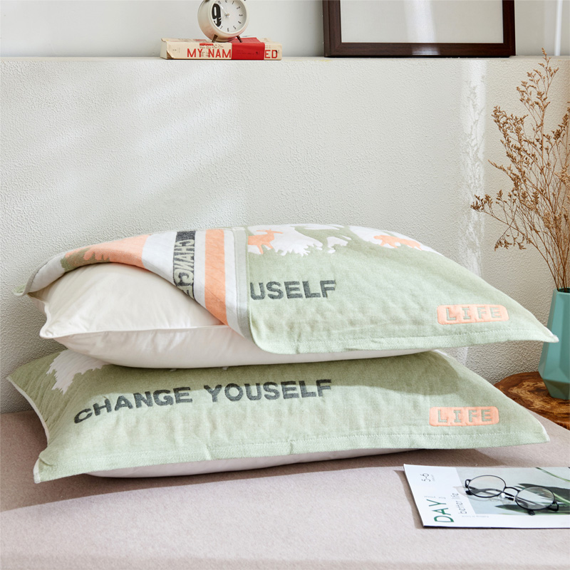 朴尔 2022新款三层纱布枕巾(一对) 仙林小鹿-绿(52*78)