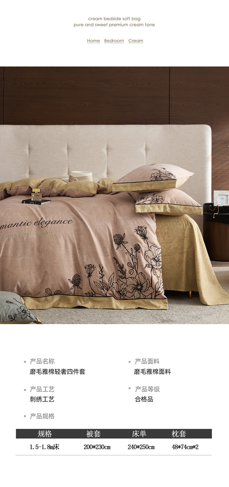 商品名称:(总)凡客家居 2022新款阳绒磨毛刺绣秘密花园系列四件套