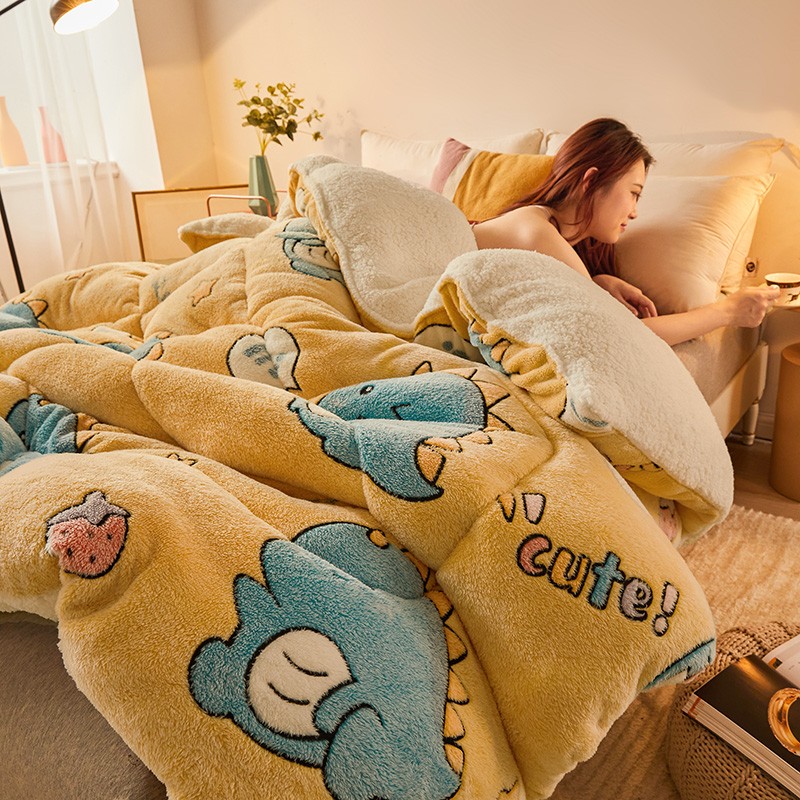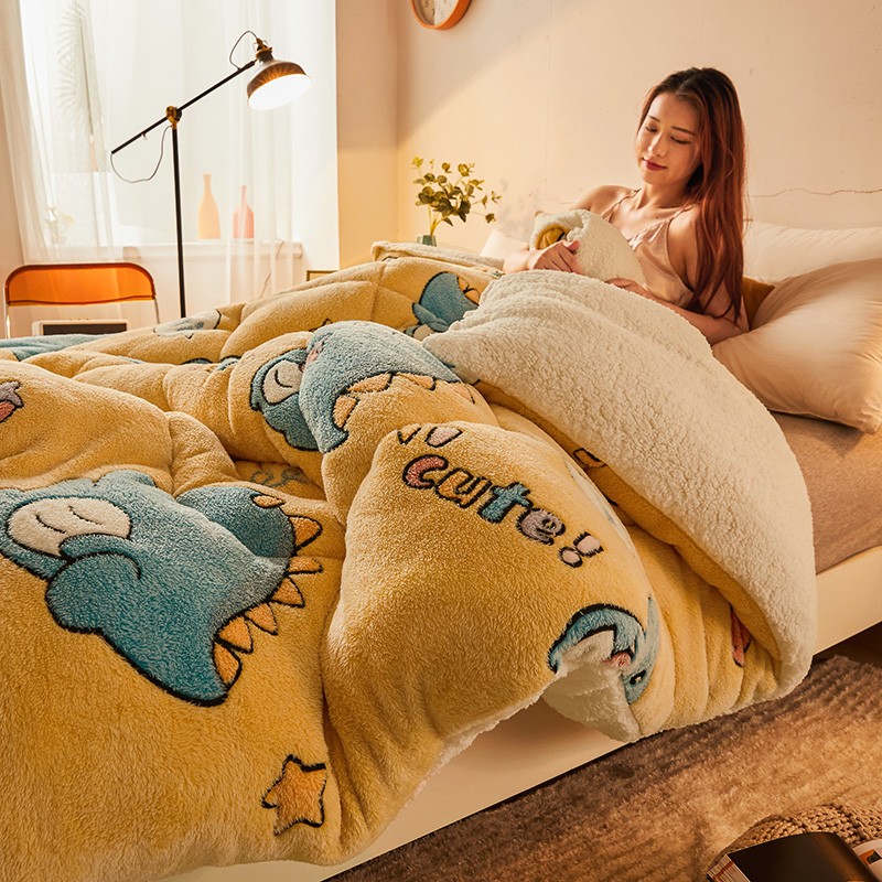 商品名称:梦初语 2022新款加厚保暖雪花绒加羊羔绒冬被 恐龙宝贝