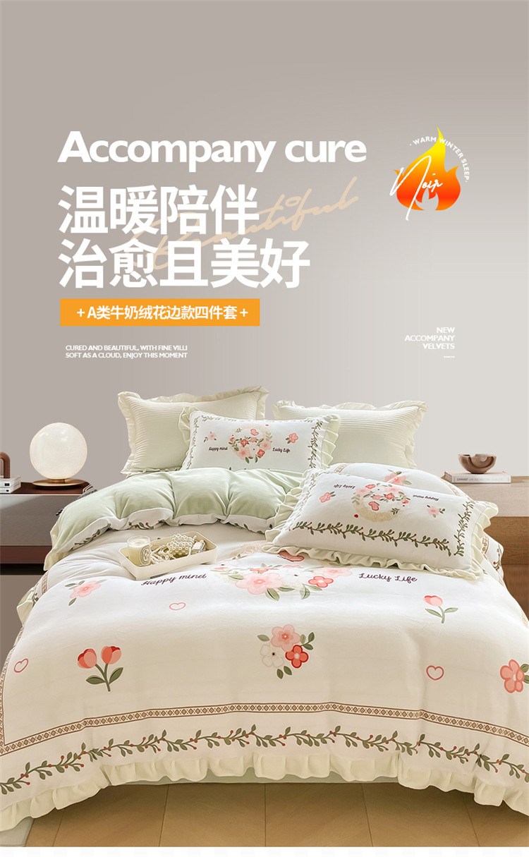(总)懒猫家纺 2025新款亲肤舒适牛奶绒四件套-可可小姐系列,可可小姐-瓷白,可可小姐-水粉