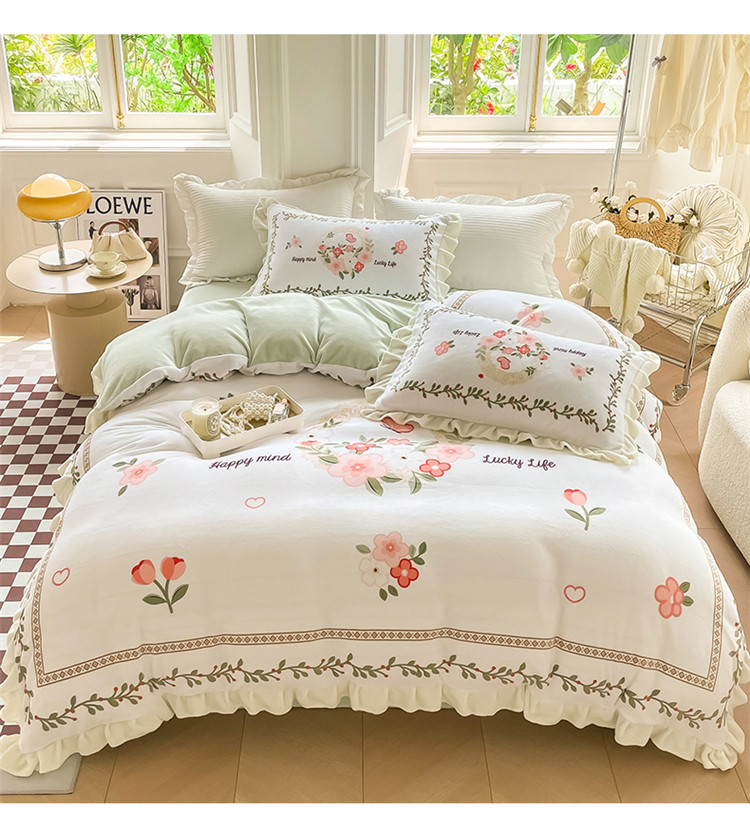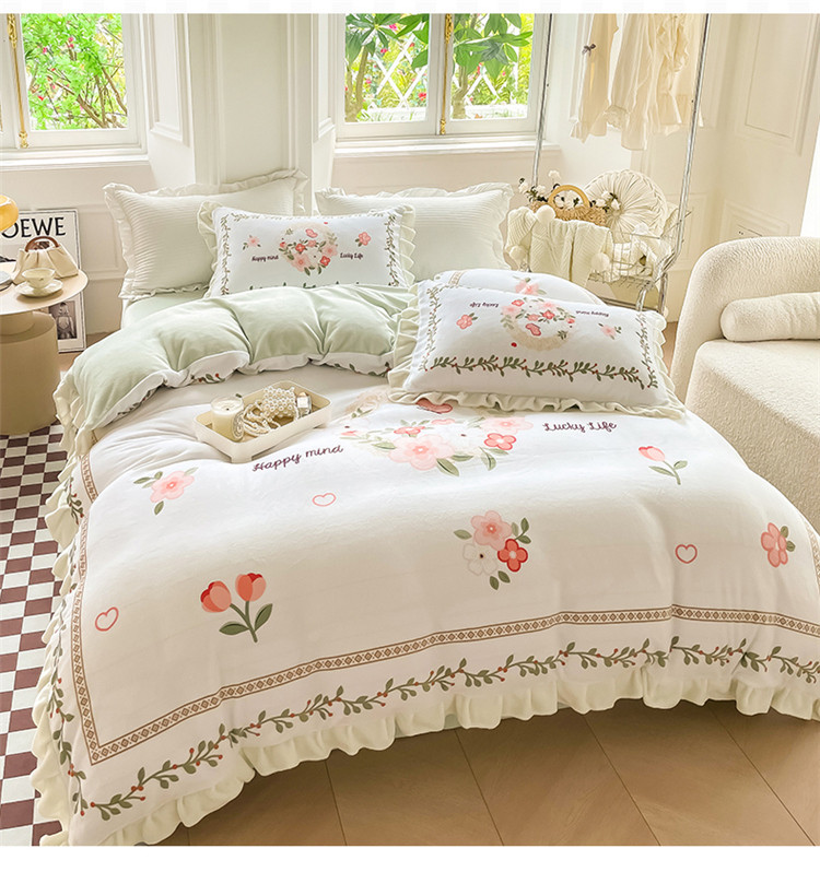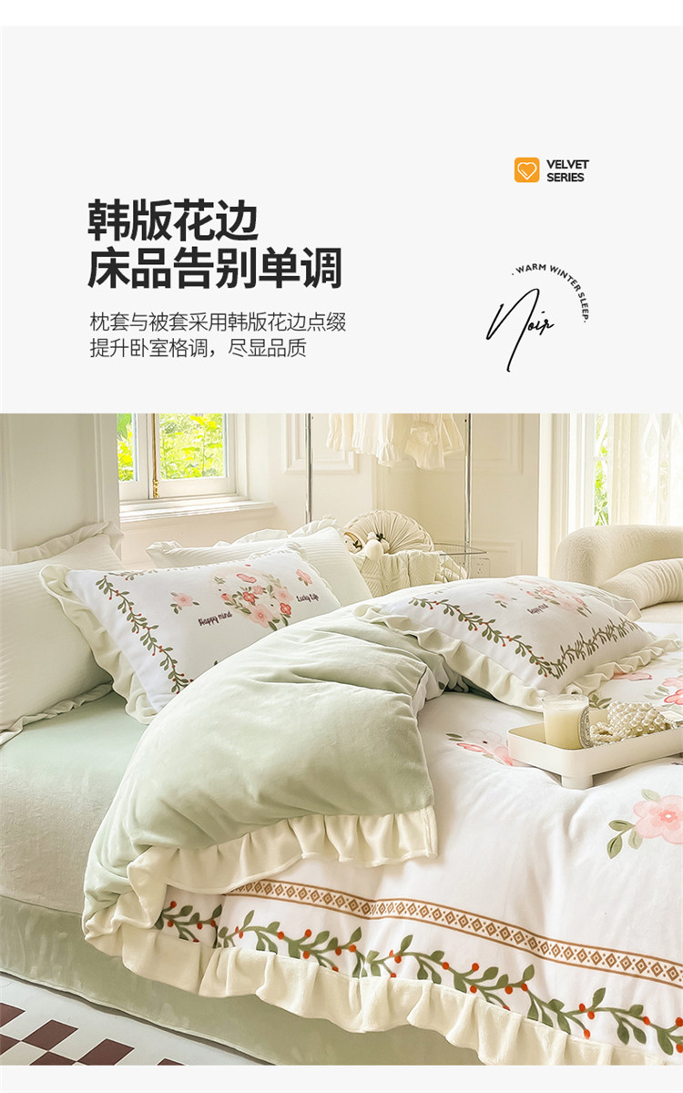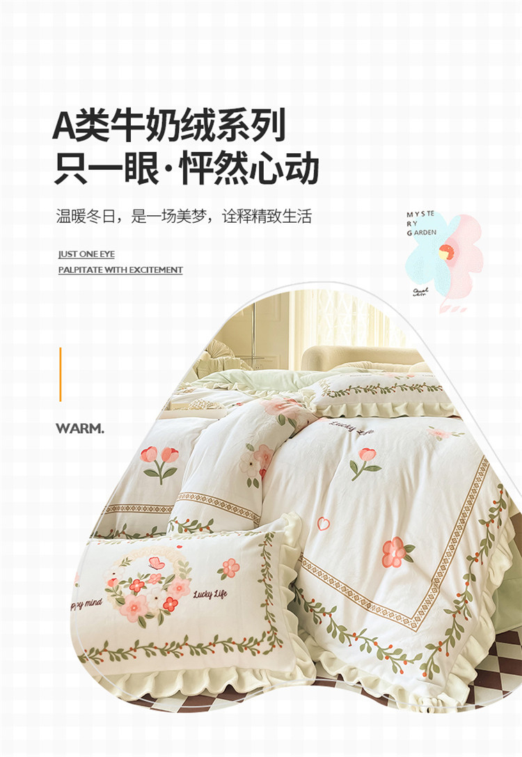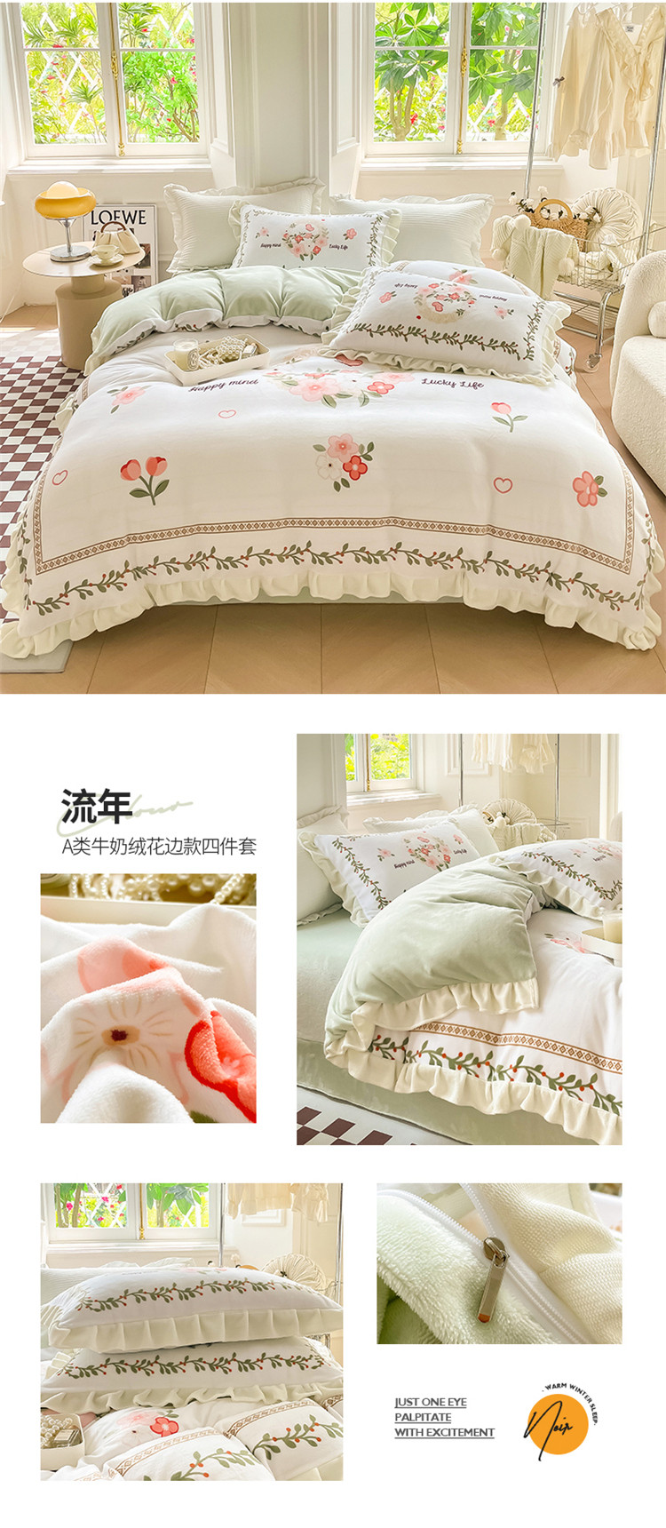 商品名称:懒猫 2022新款大版牛奶绒花边款四件套 流年