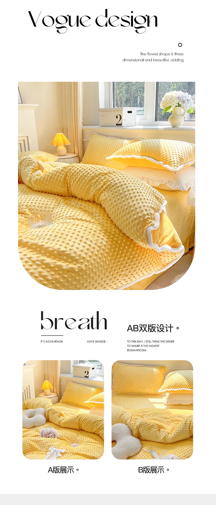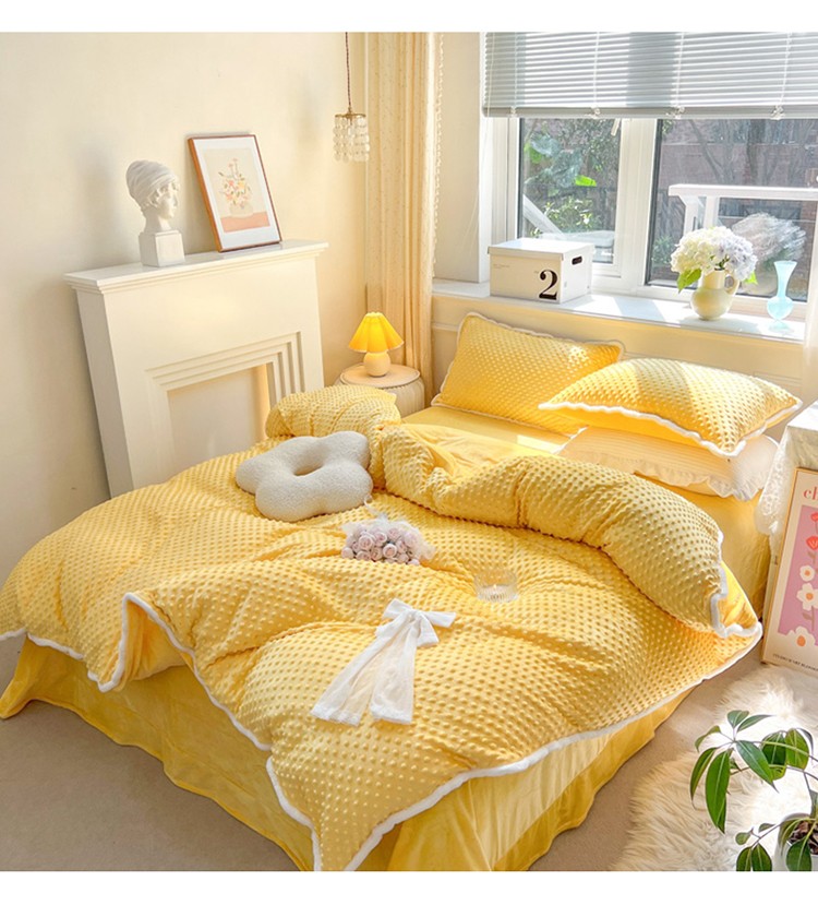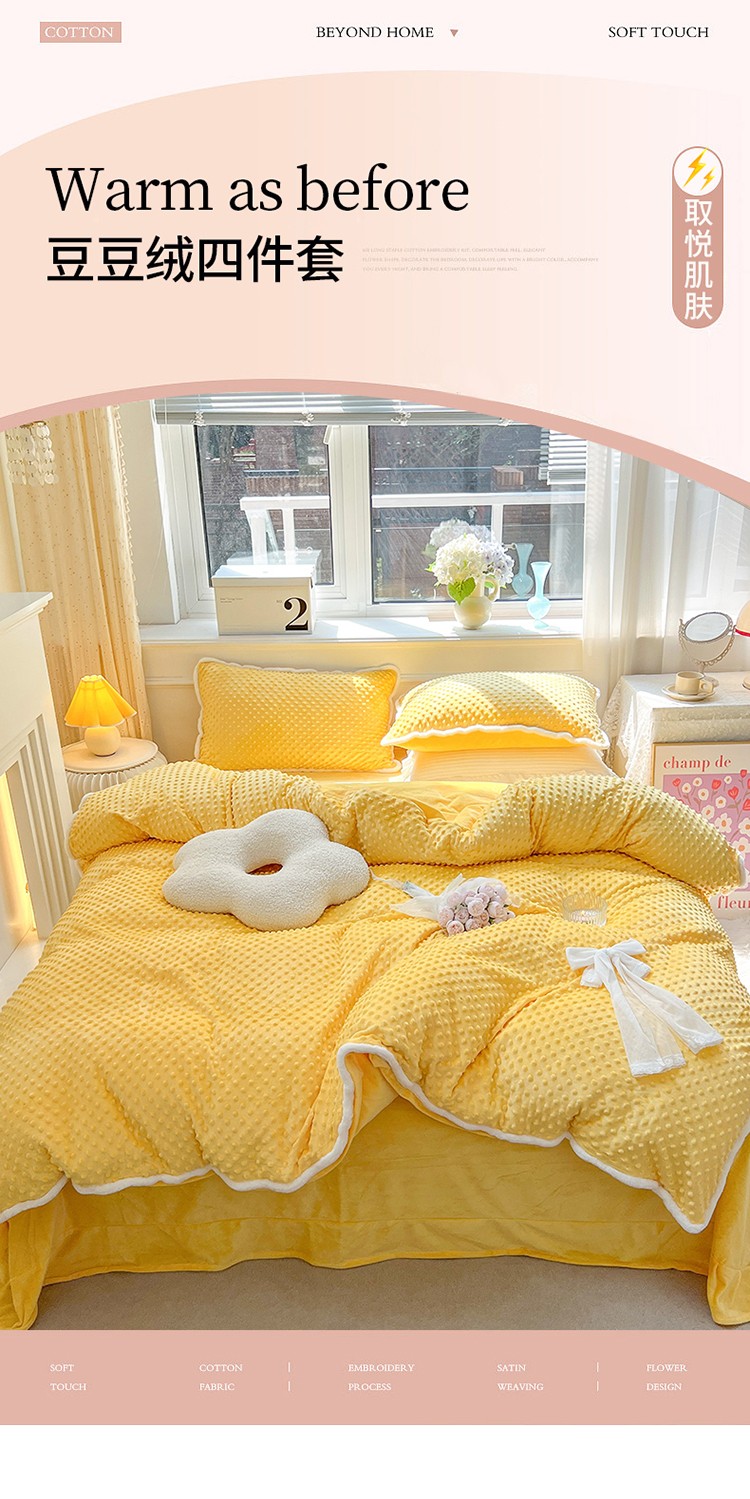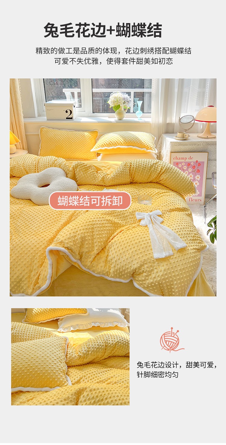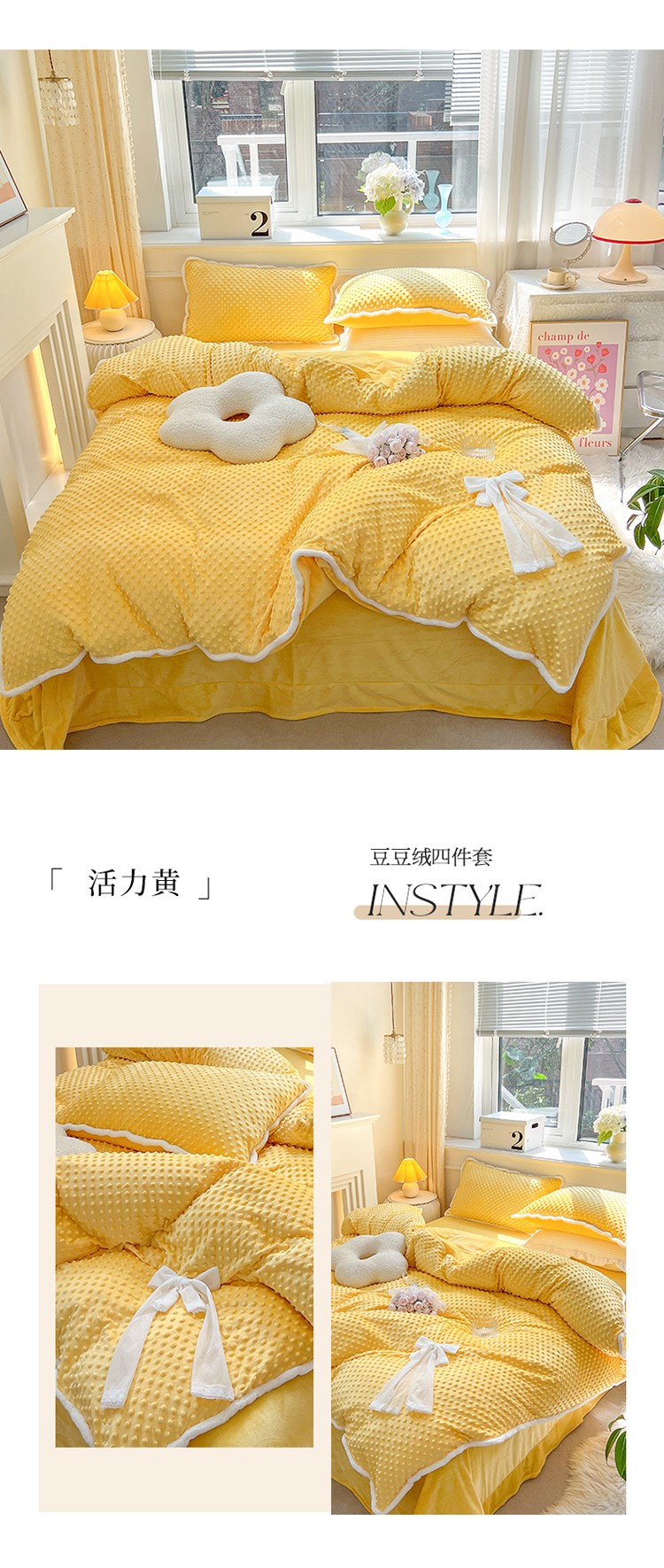 当前位置: 91家纺网 > 商品网购 > 床品套件 > 四件套 > 牛奶绒四件套 > 淑女公社22秋冬新款豆豆绒牛奶绒兔毛花边蝴蝶结款四件套活力黄