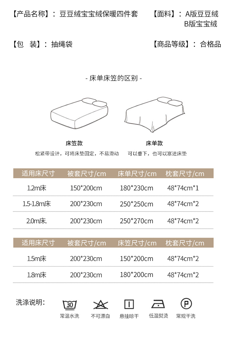 2.0m(6.6英尺)床单款四件套 | ¥200.00 |