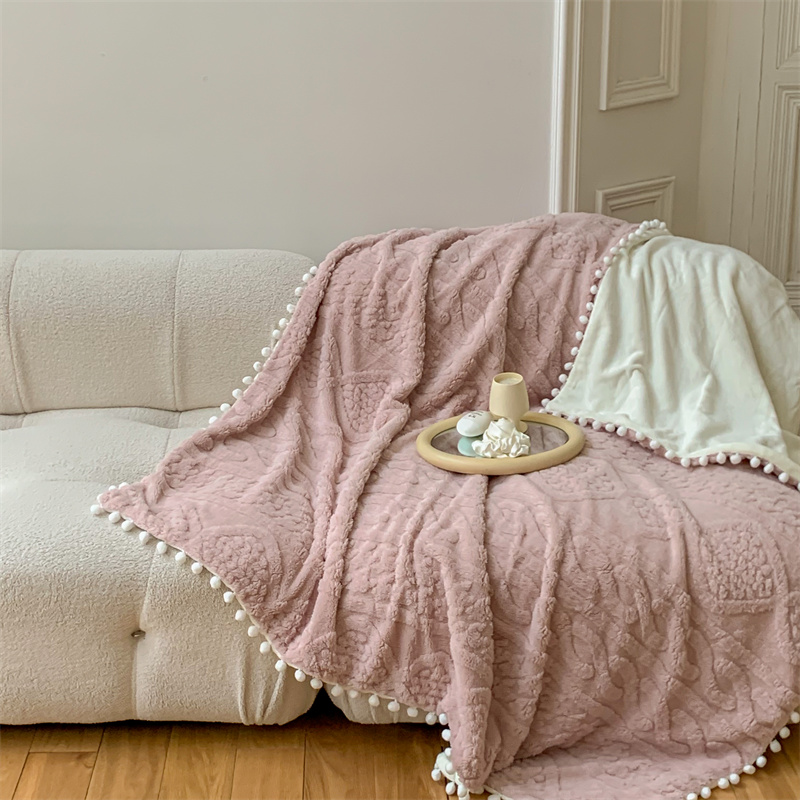 洋铭区 2022新款a版舒棉绒b版牛奶绒毯子-糖豆系列 糖豆浅粉
