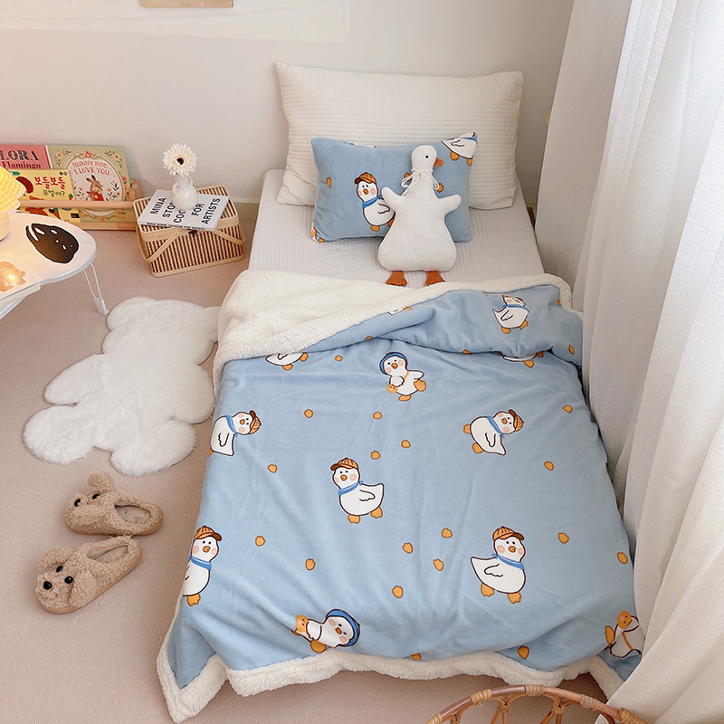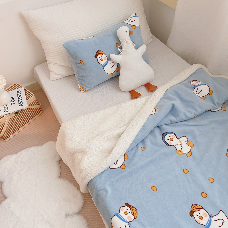 航途席业 2023新款软绵绵牛奶绒羊羔绒毛毯 蓝鸭子