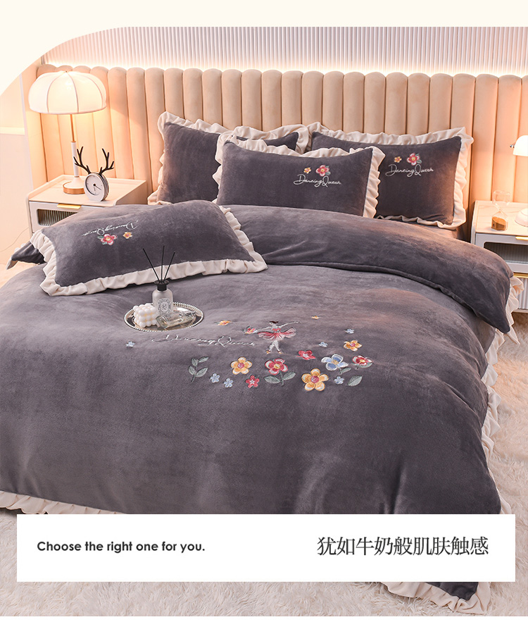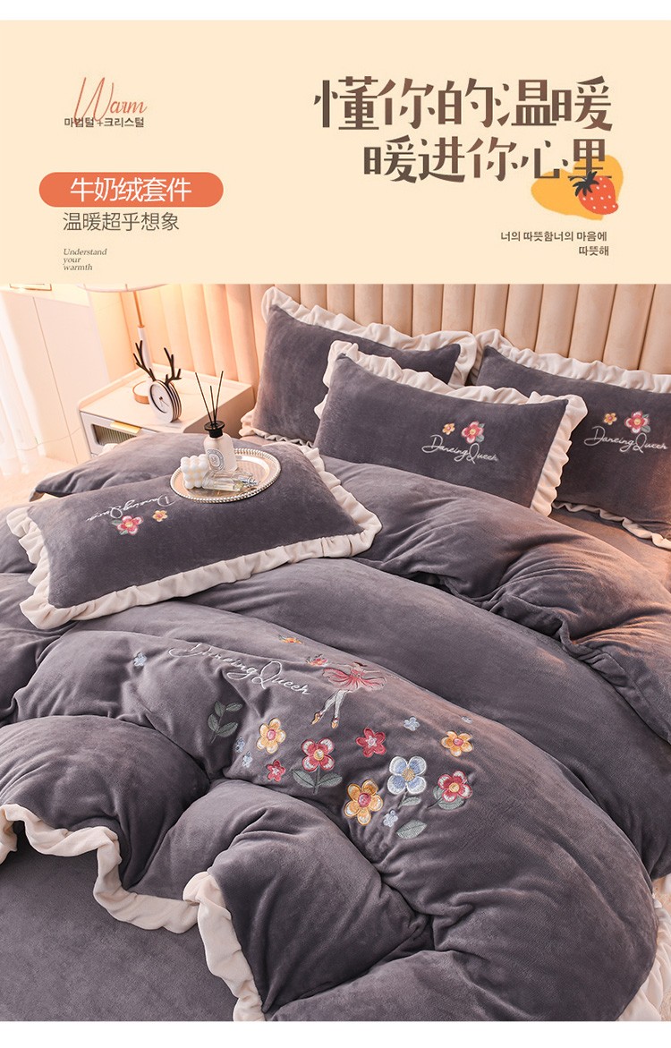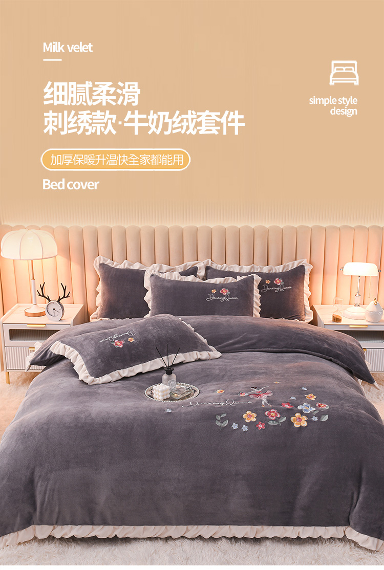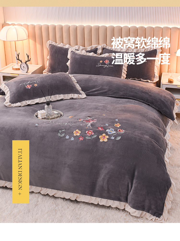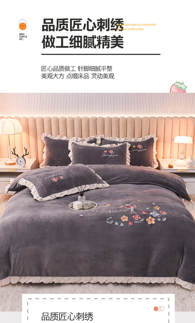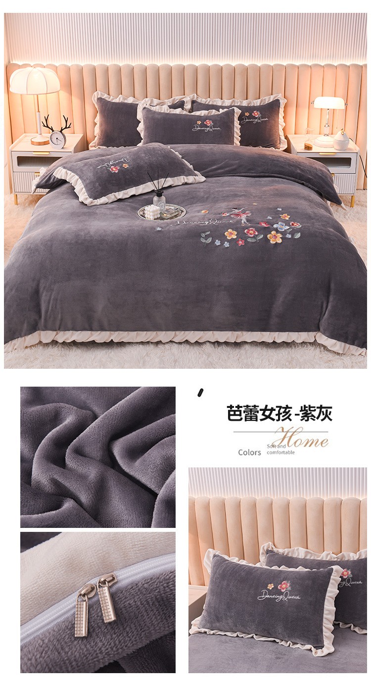 商品名称:芃成 2022新款加厚保暖牛奶绒绣花四件套 芭蕾女孩 紫灰
