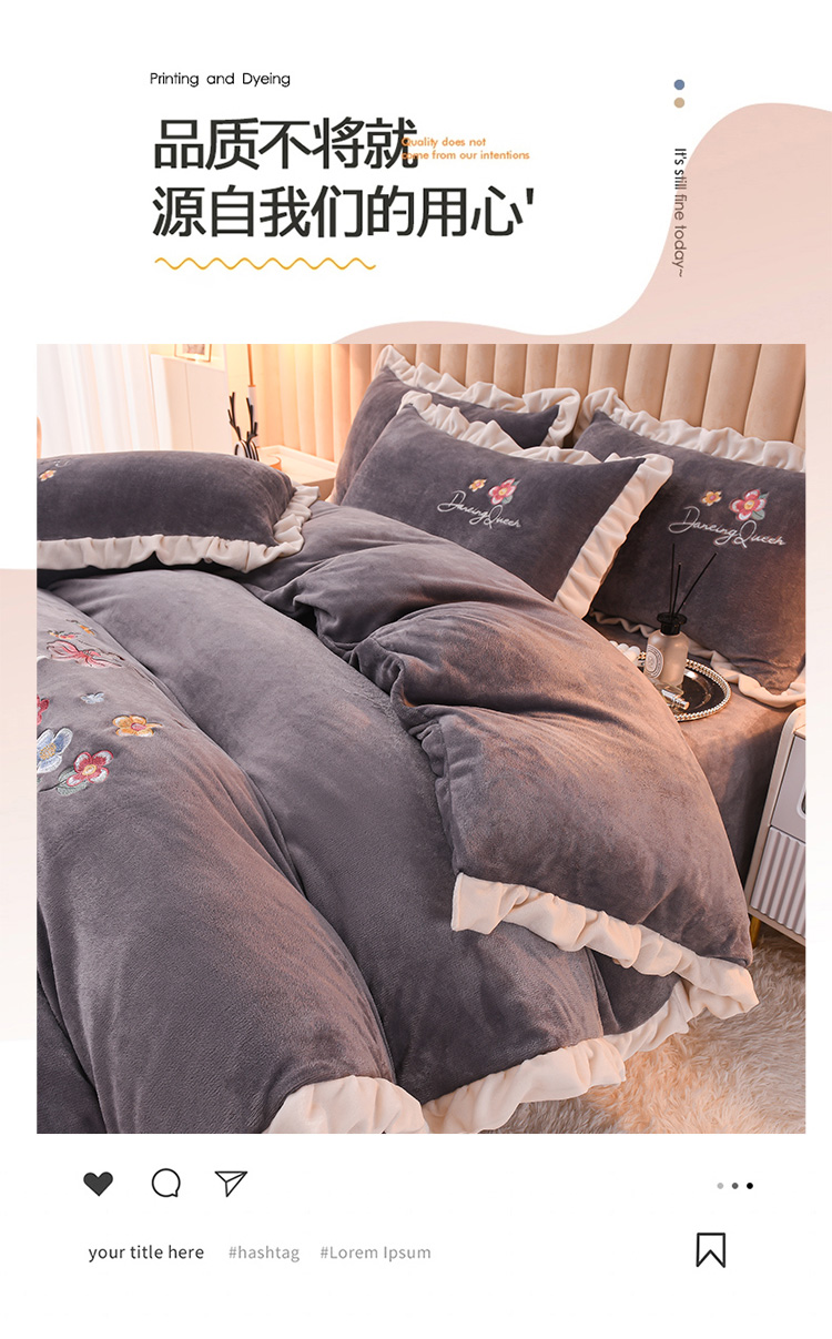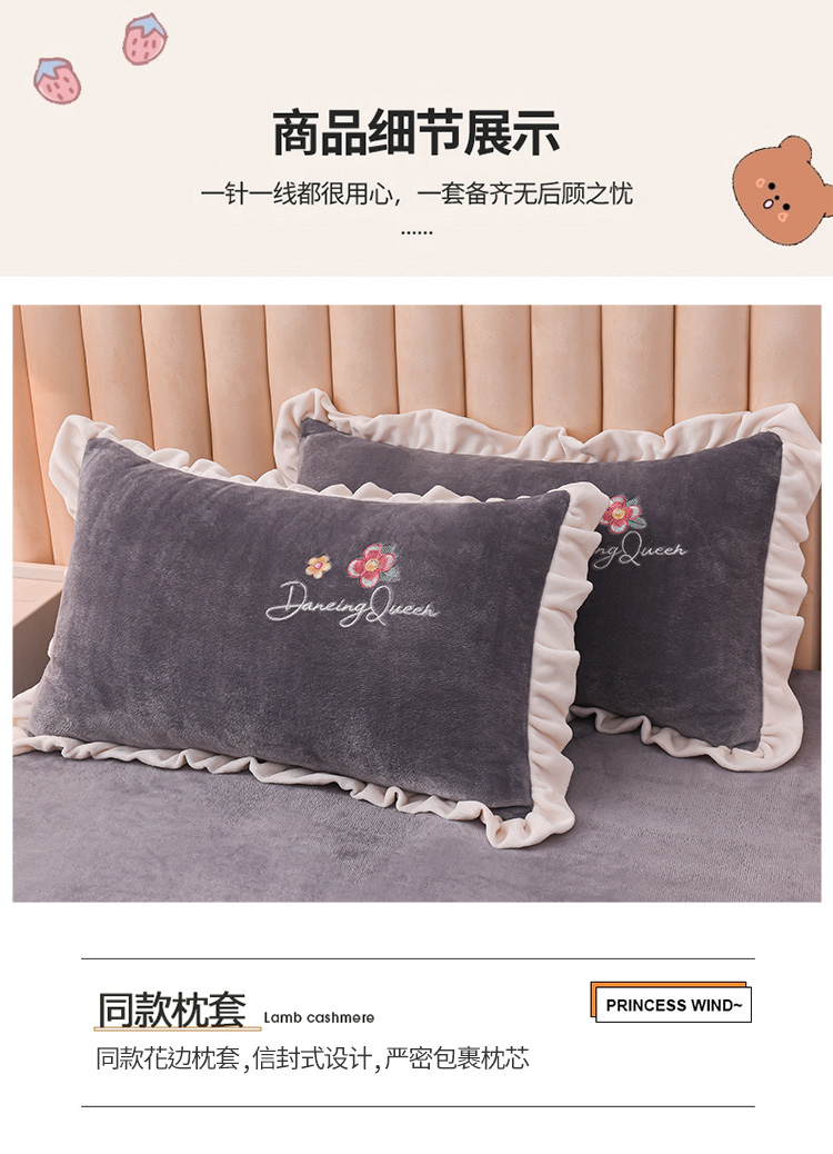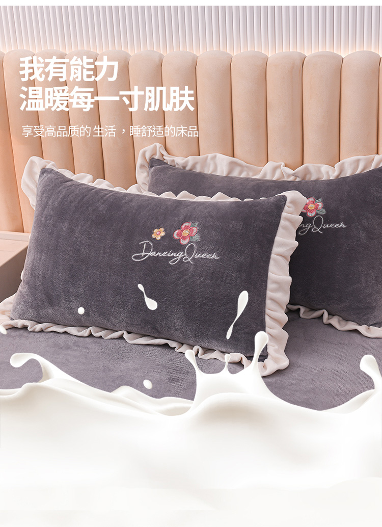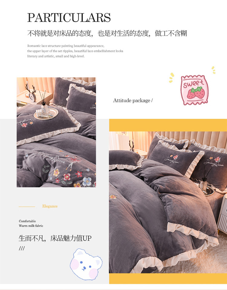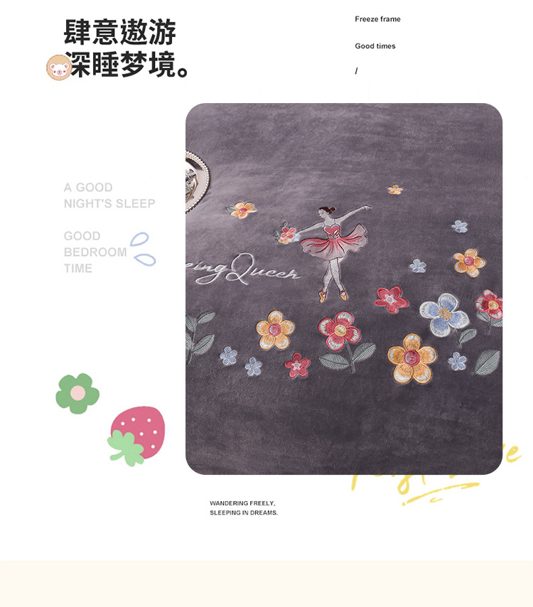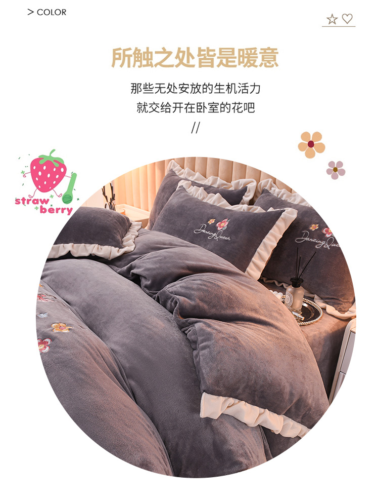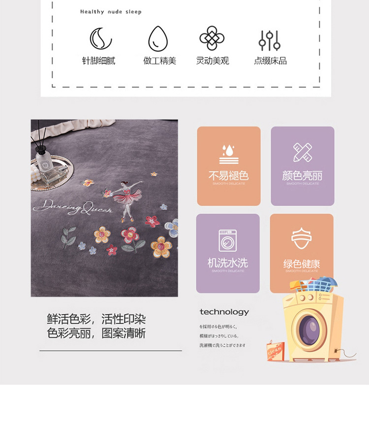 商品名称:芃成 2022新款加厚保暖牛奶绒绣花四件套 芭蕾女孩 紫灰