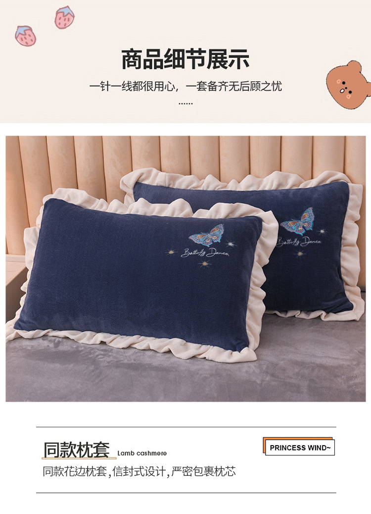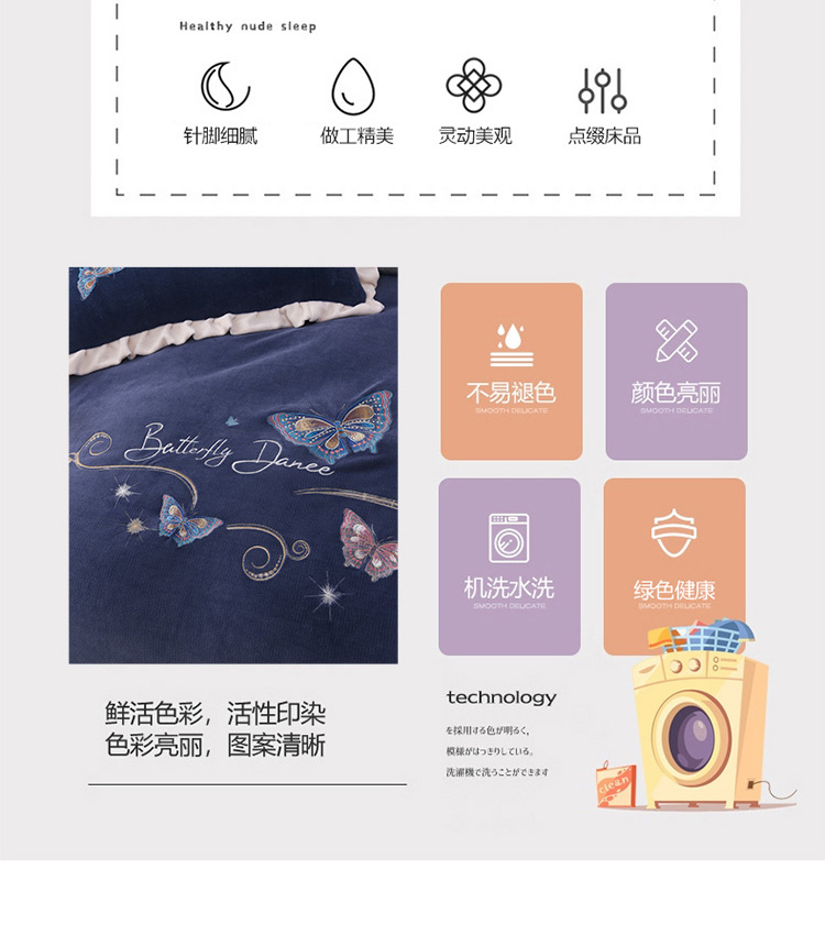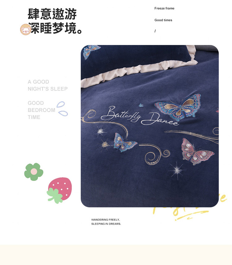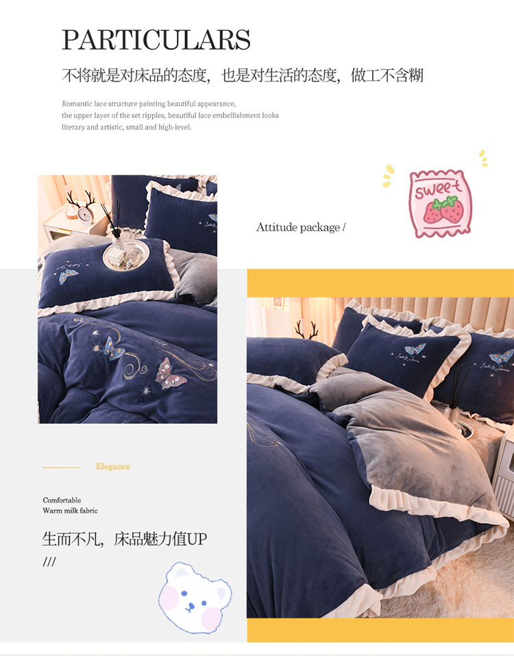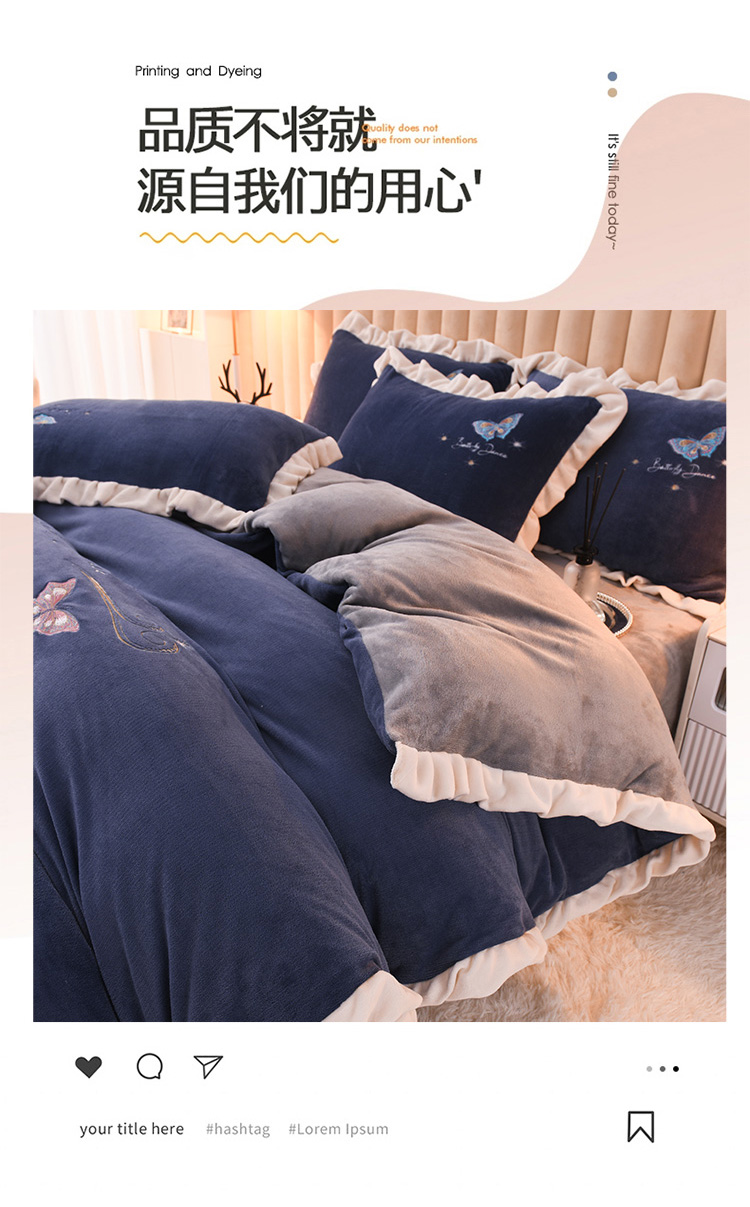 商品名称:芃成 2022新款加厚保暖牛奶绒绣花四件套 蝶舞 宝石蓝