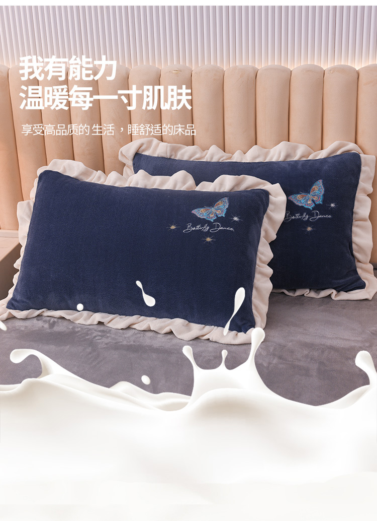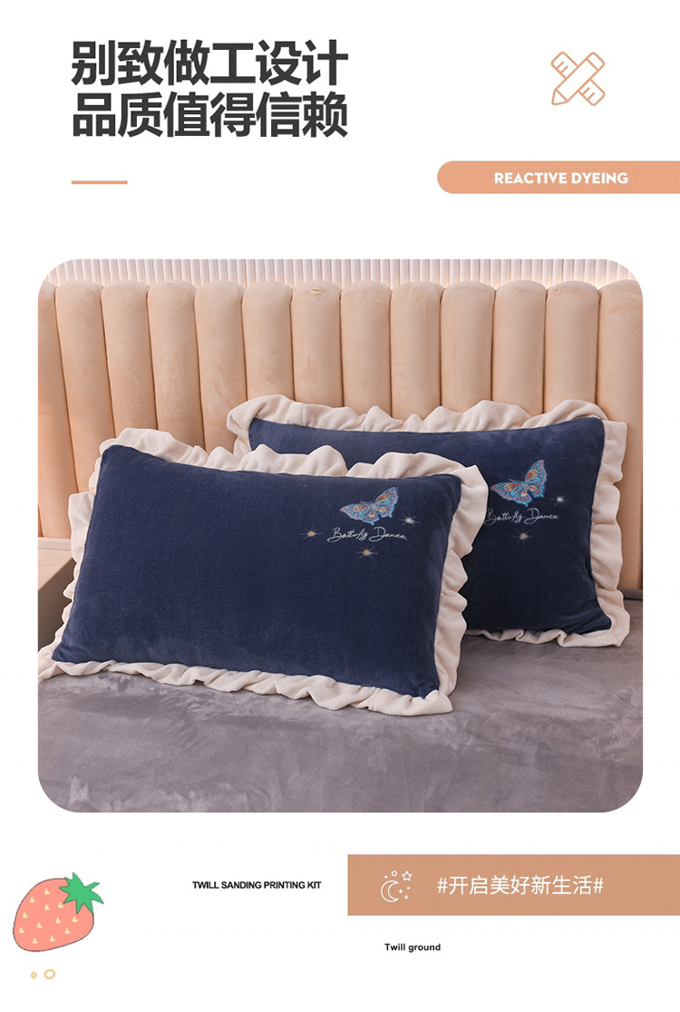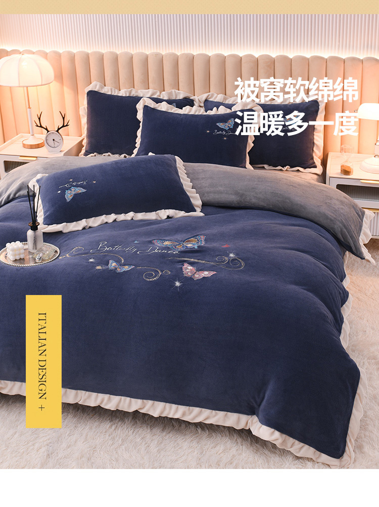 芃成 2022新款加厚保暖牛奶绒绣花四件套 蝶舞 宝石蓝