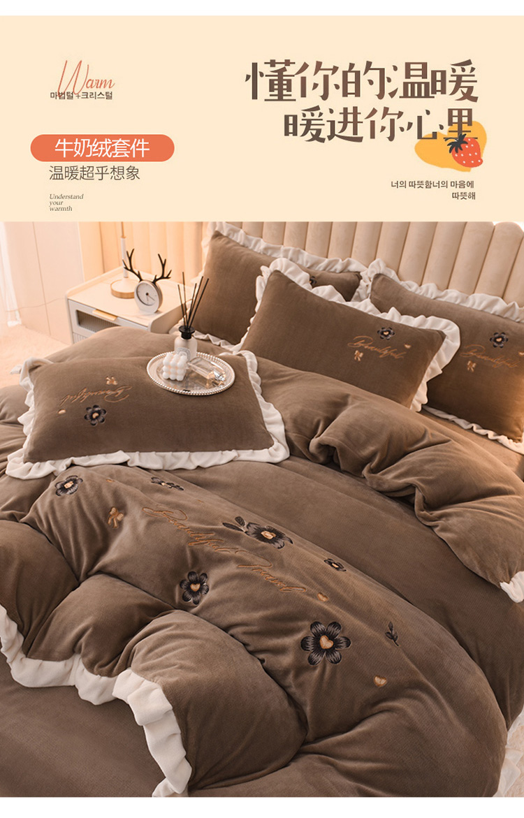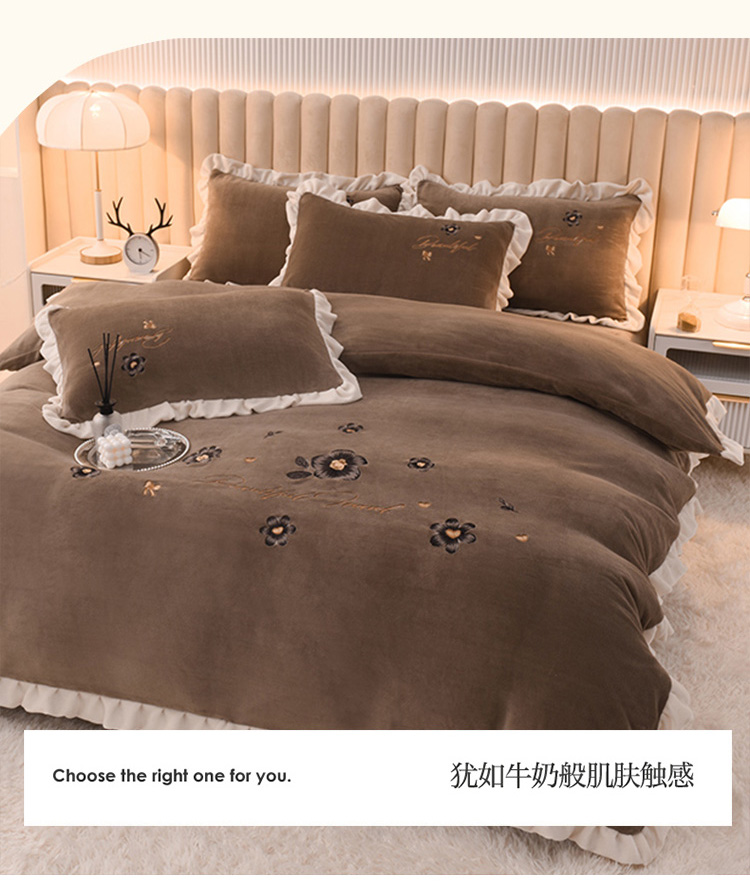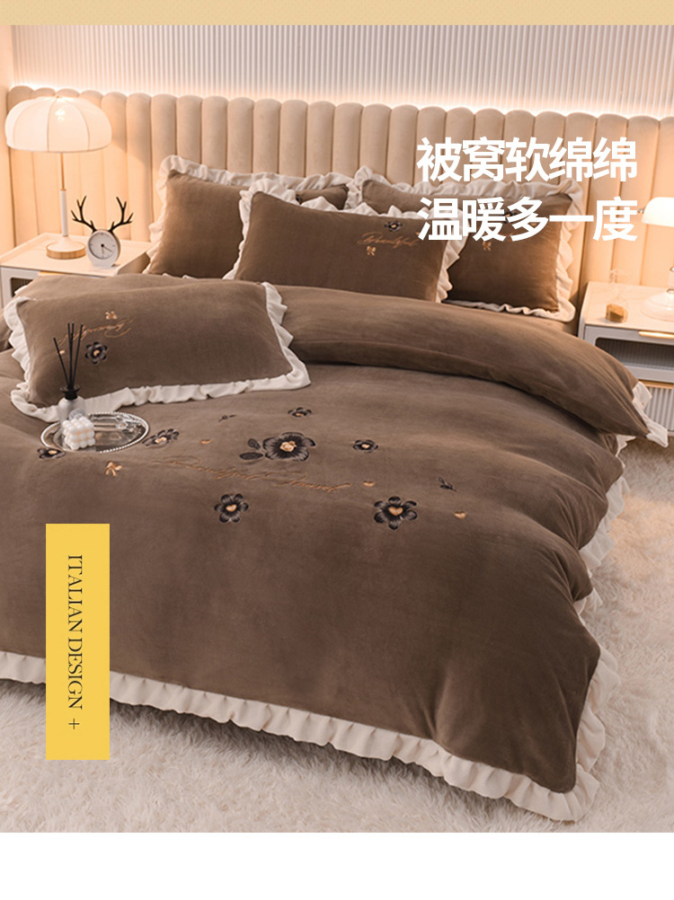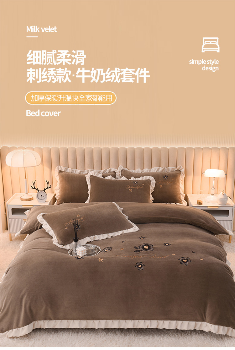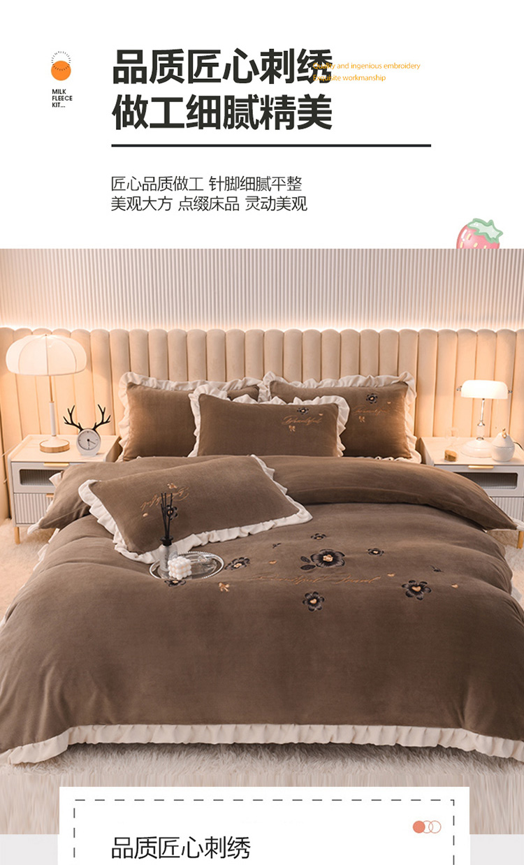 芃成 2022新款加厚保暖牛奶绒绣花四件套 花漾 奶咖