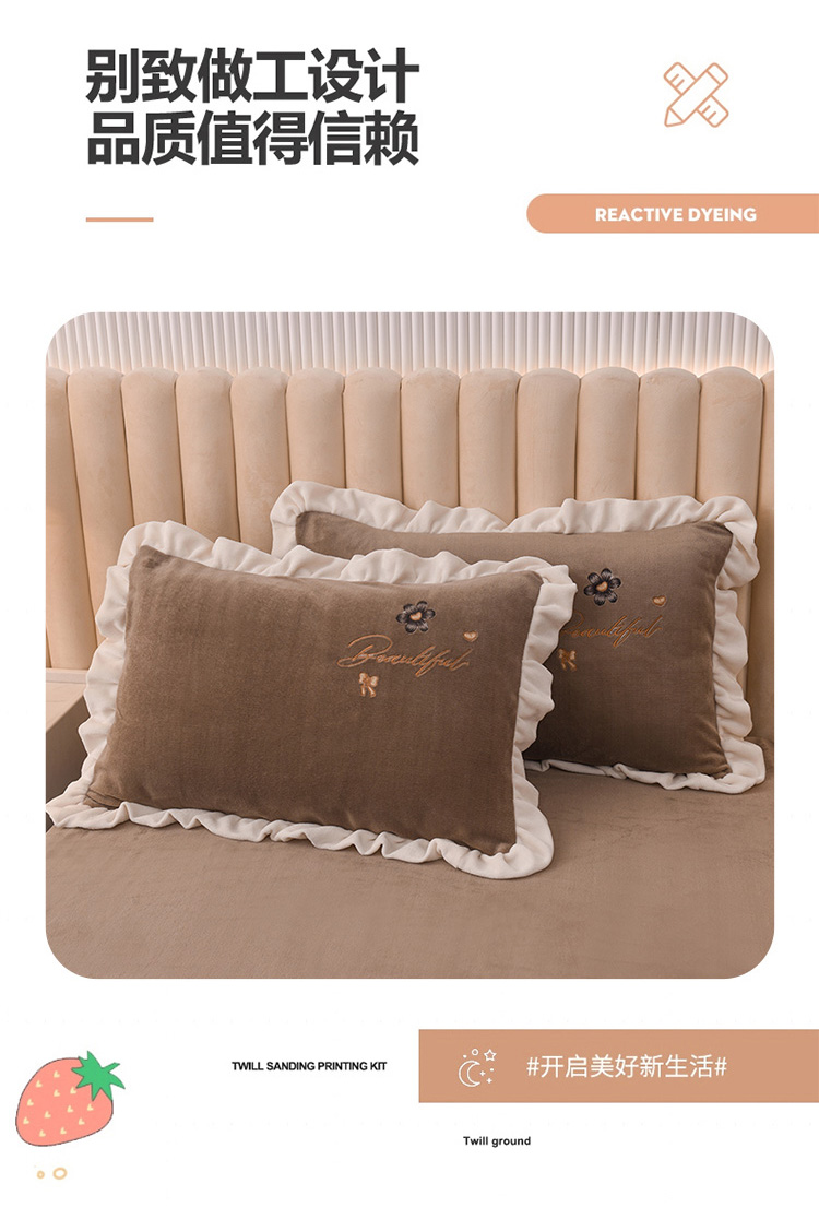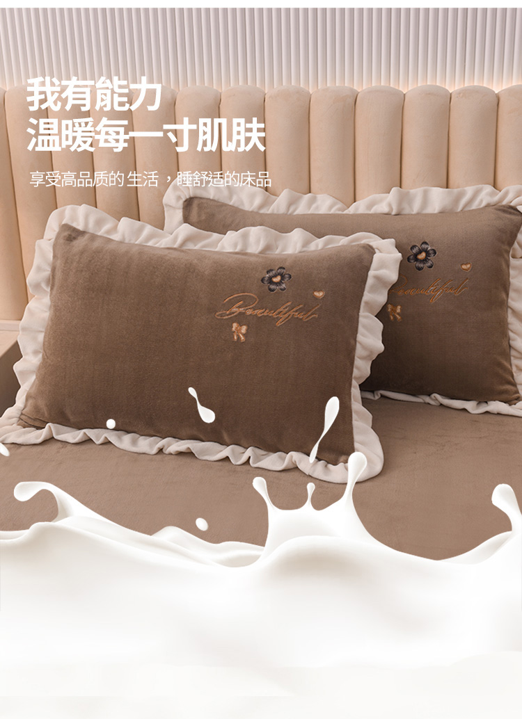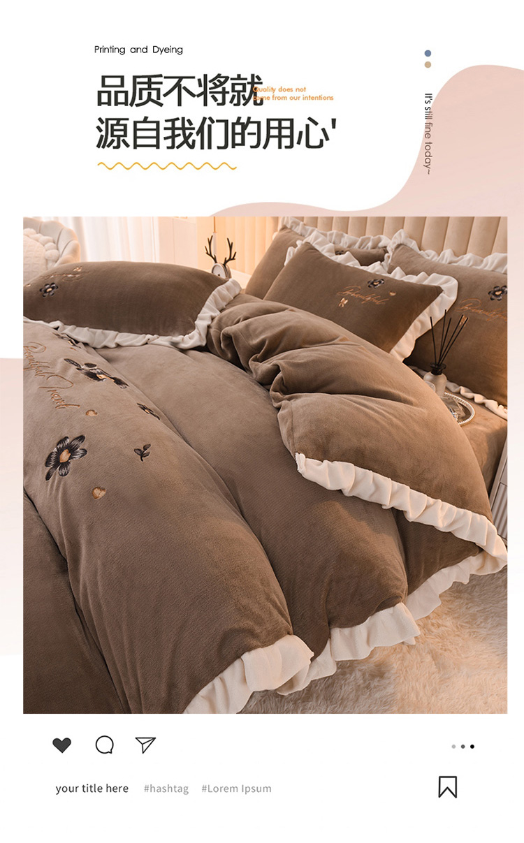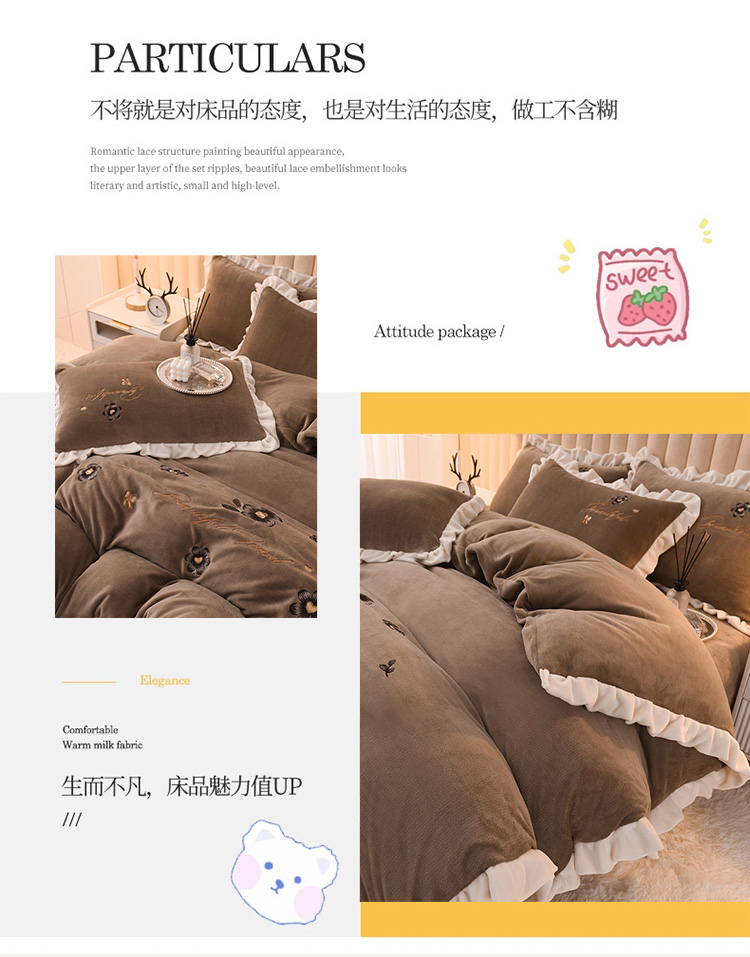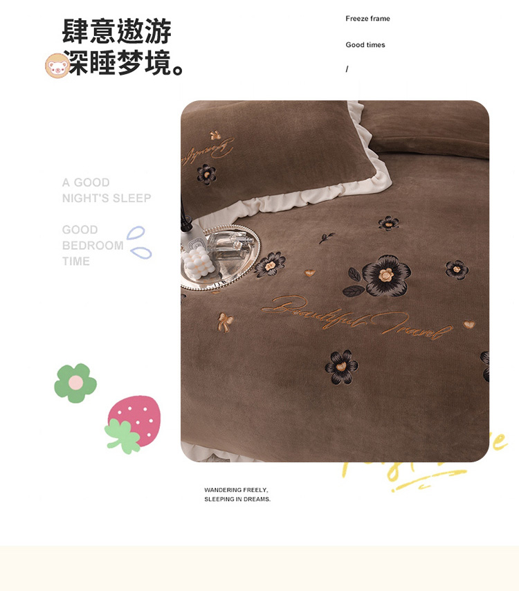 芃成 2022新款加厚保暖牛奶绒绣花四件套 花漾 奶咖