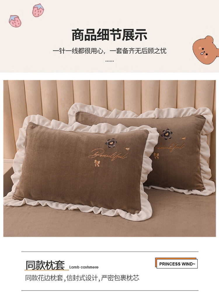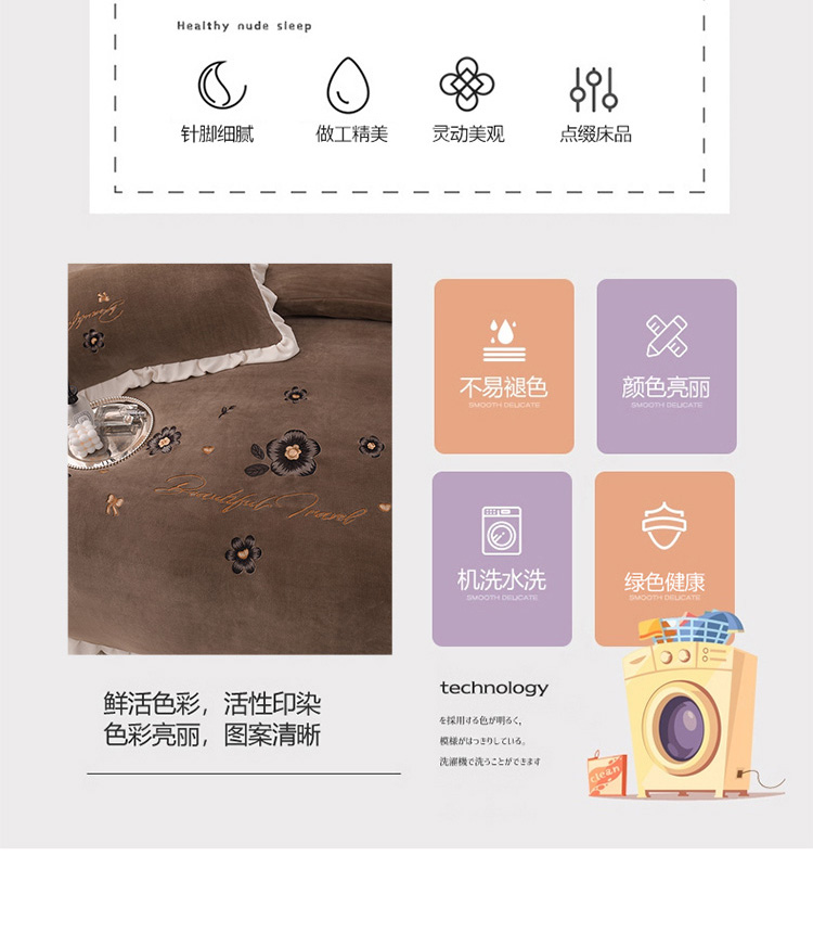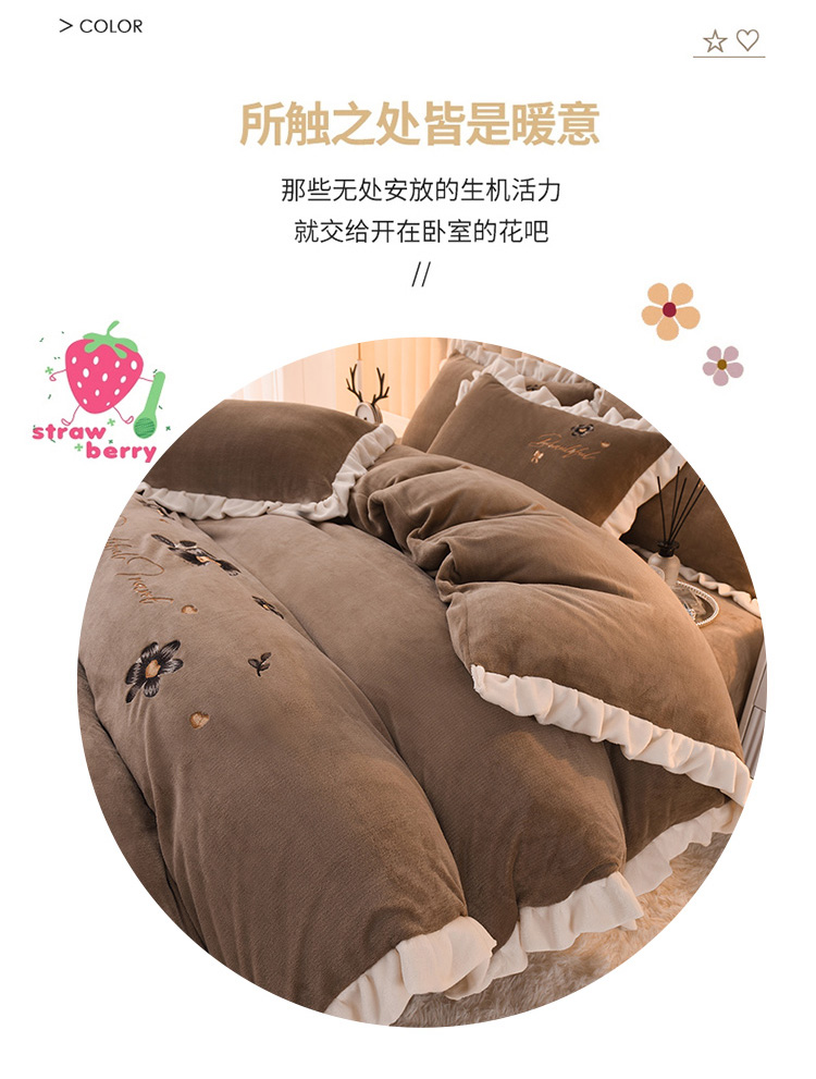 商品名称:芃成 2022新款加厚保暖牛奶绒绣花四件套 花漾 奶咖