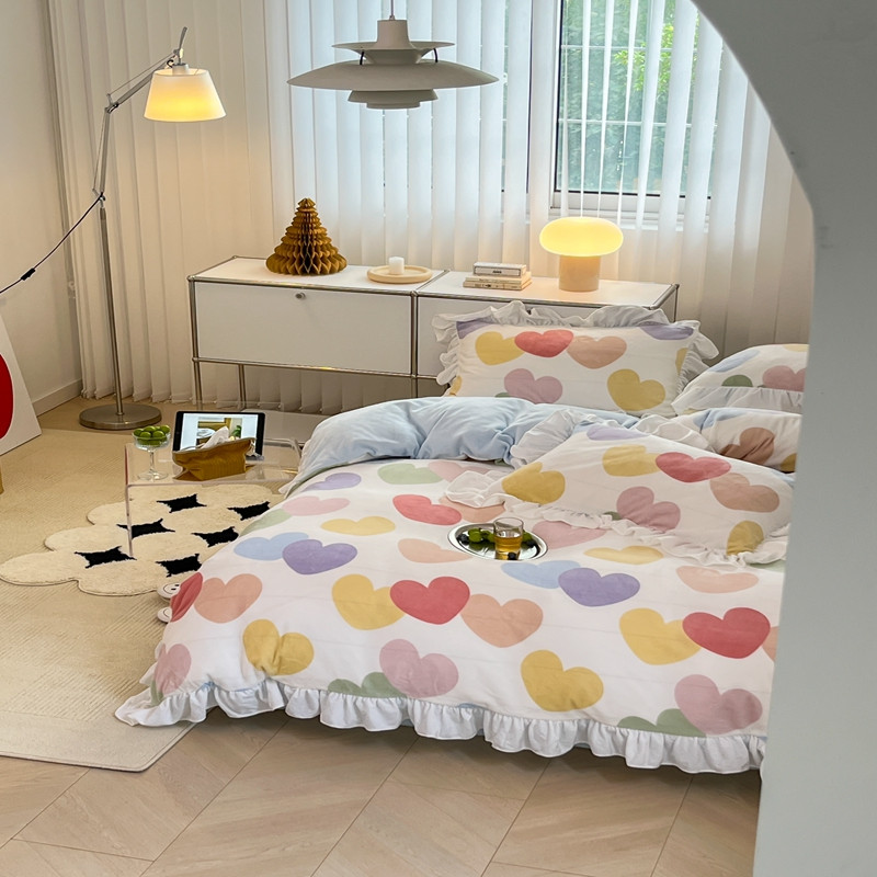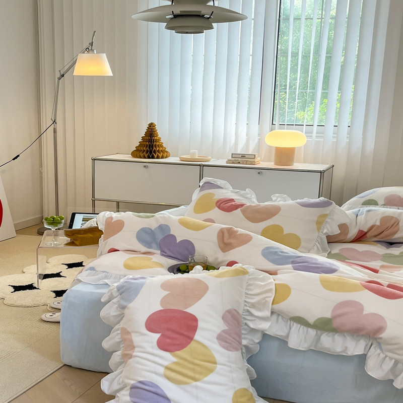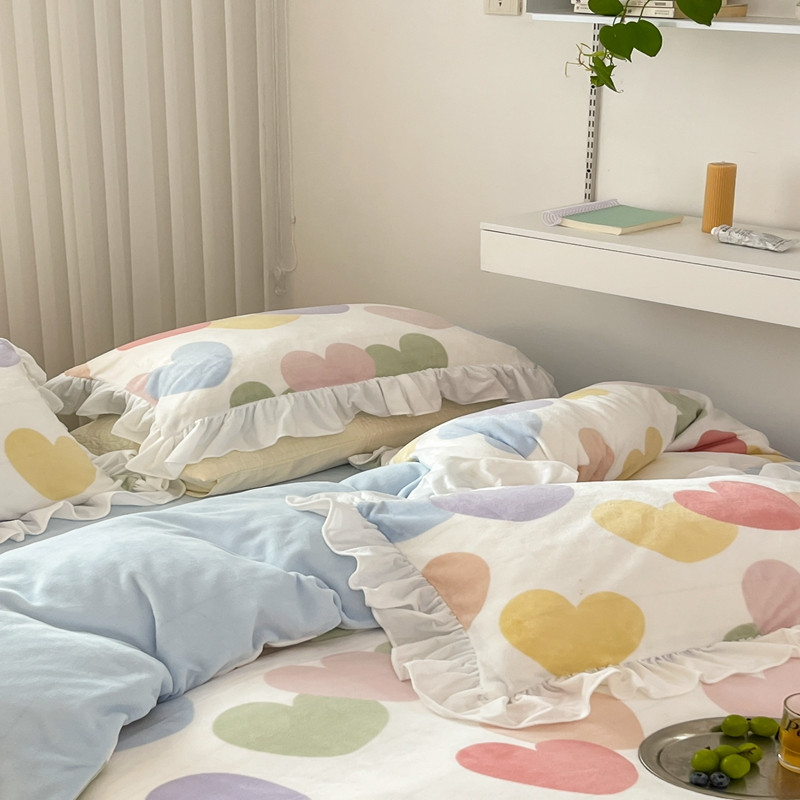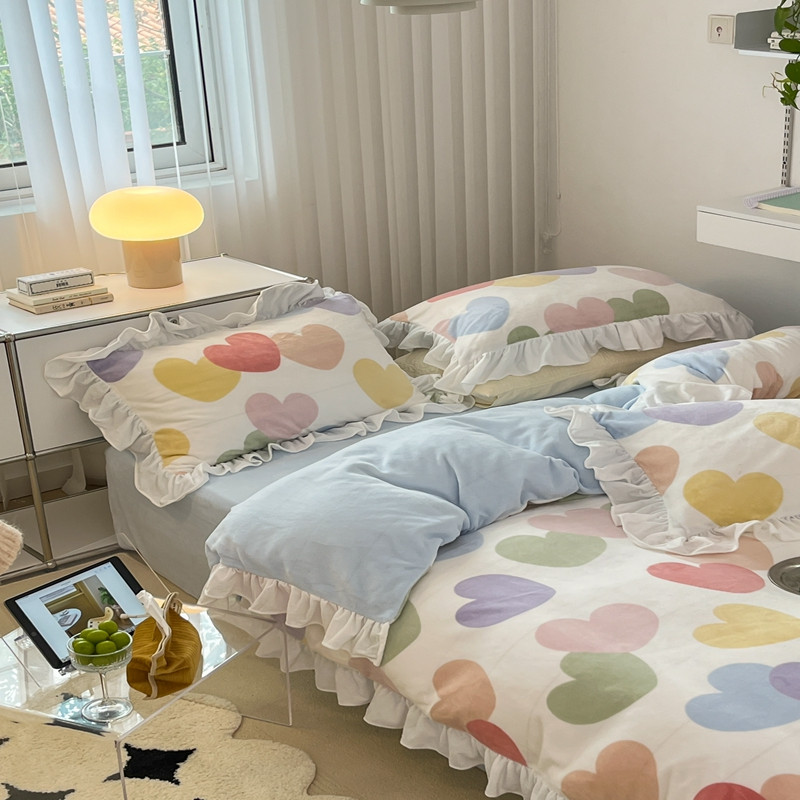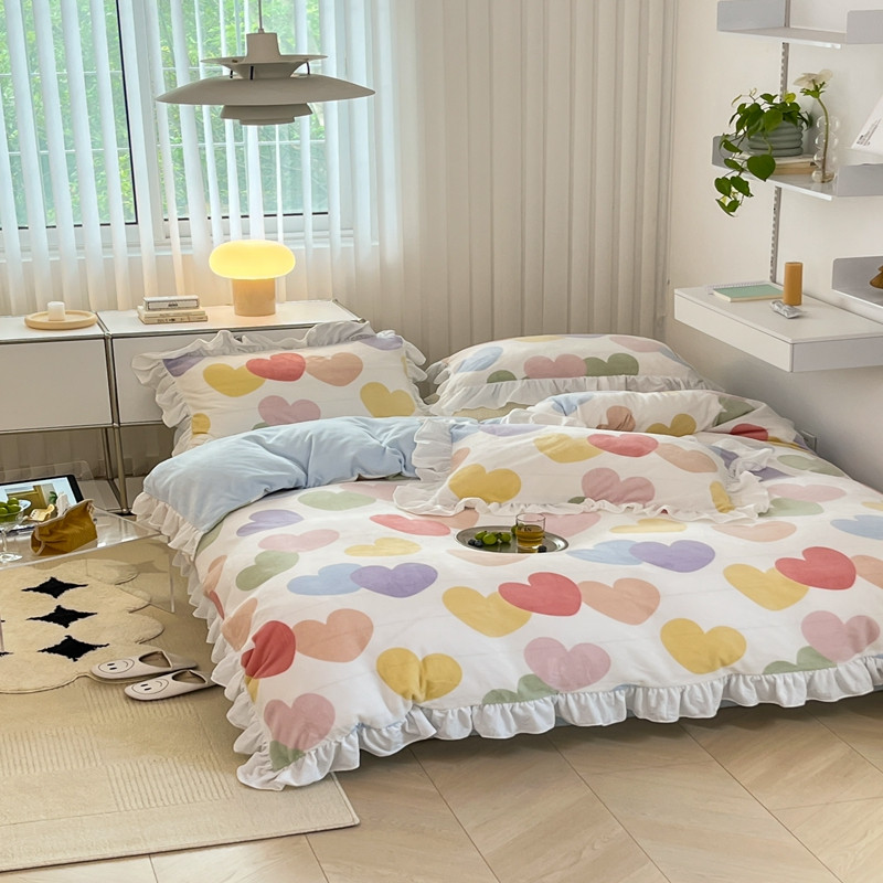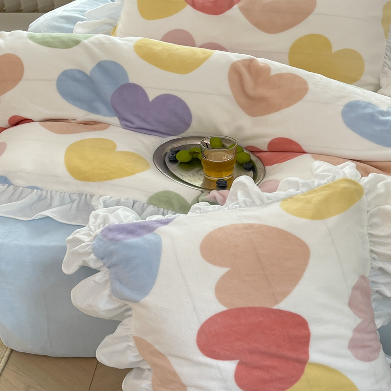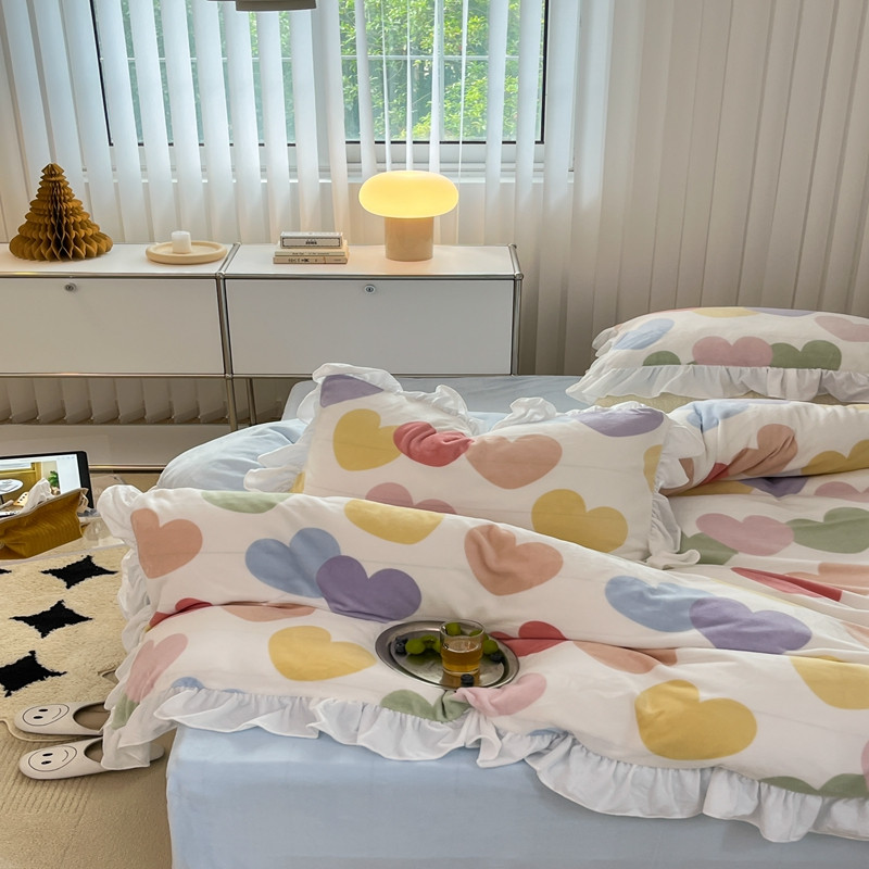 昔可 2022新款花边牛奶绒四件套 七彩爱心